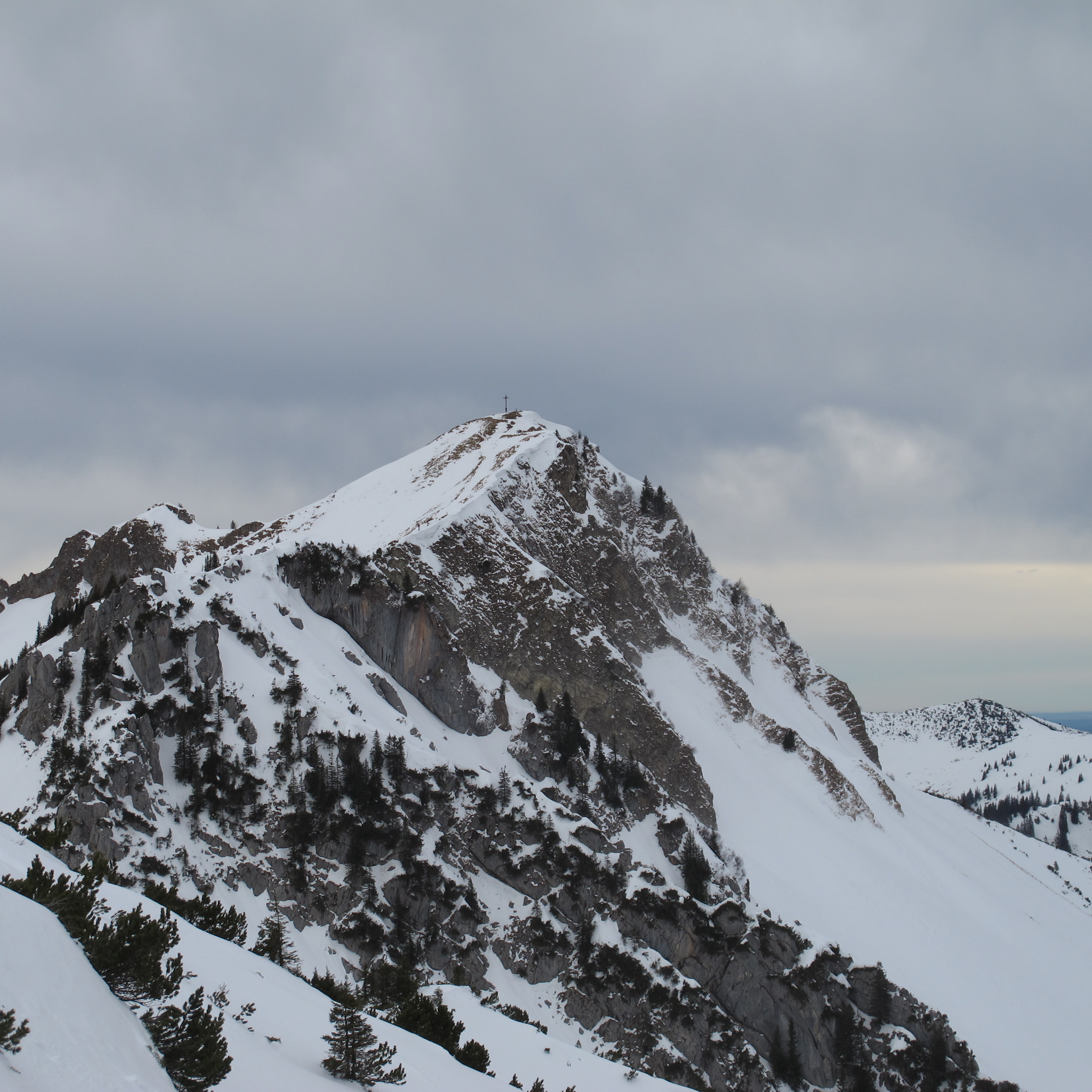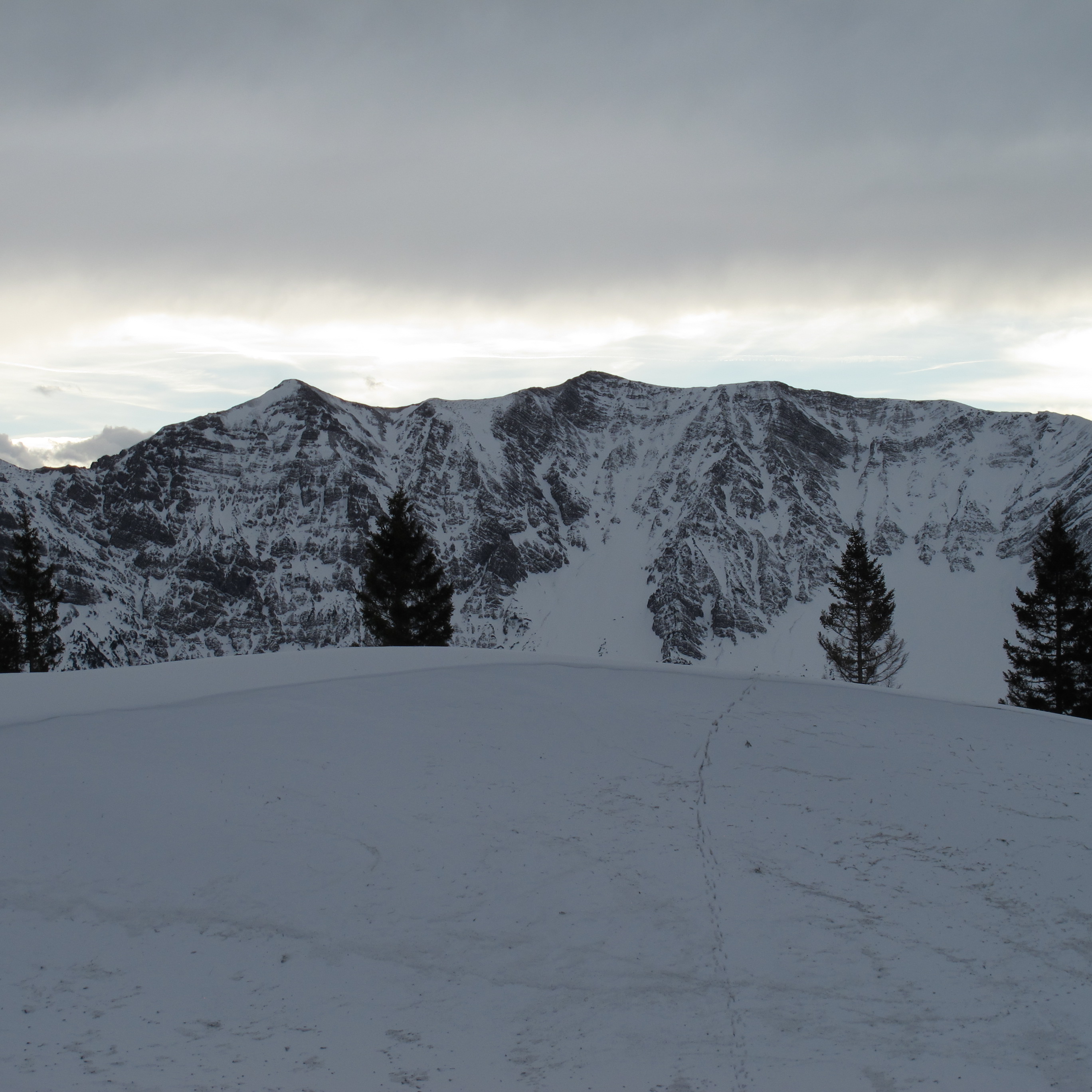 Tourenverhältnisse: Sehr windig, böig, fast Frühjahrsverhältnisse, was den Schnee betrifft. Viel windgepresster Schnee, mit eingewehter Auflage. Aber gut zu fahren.