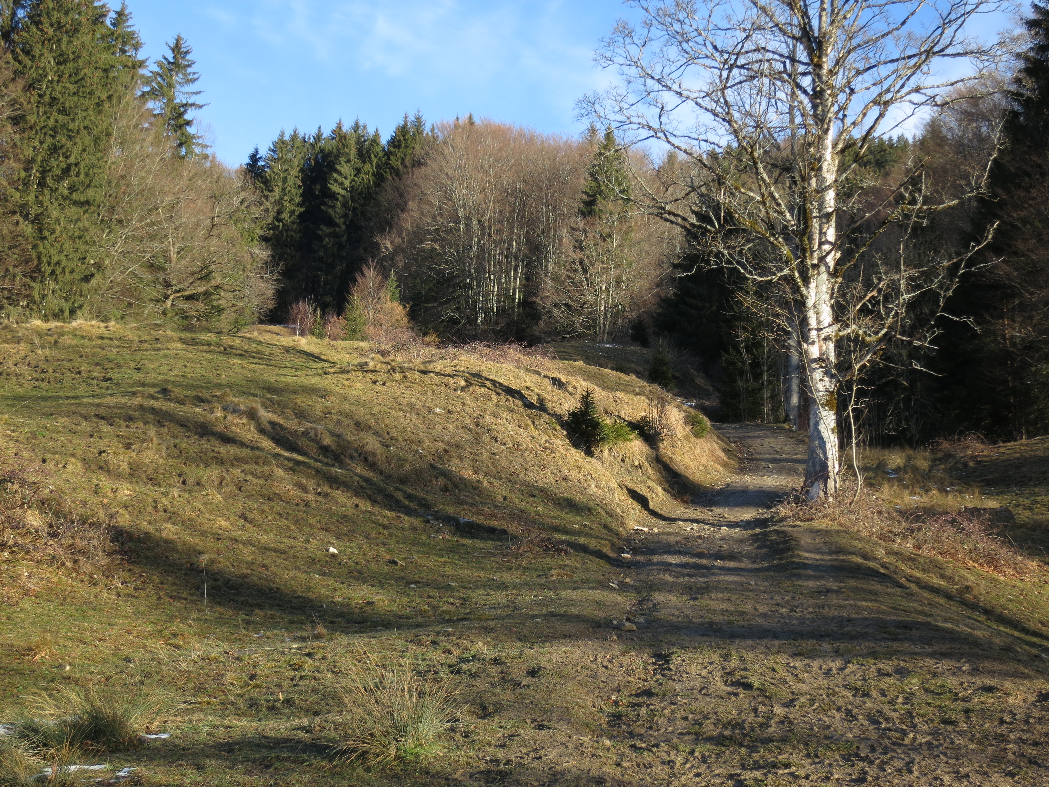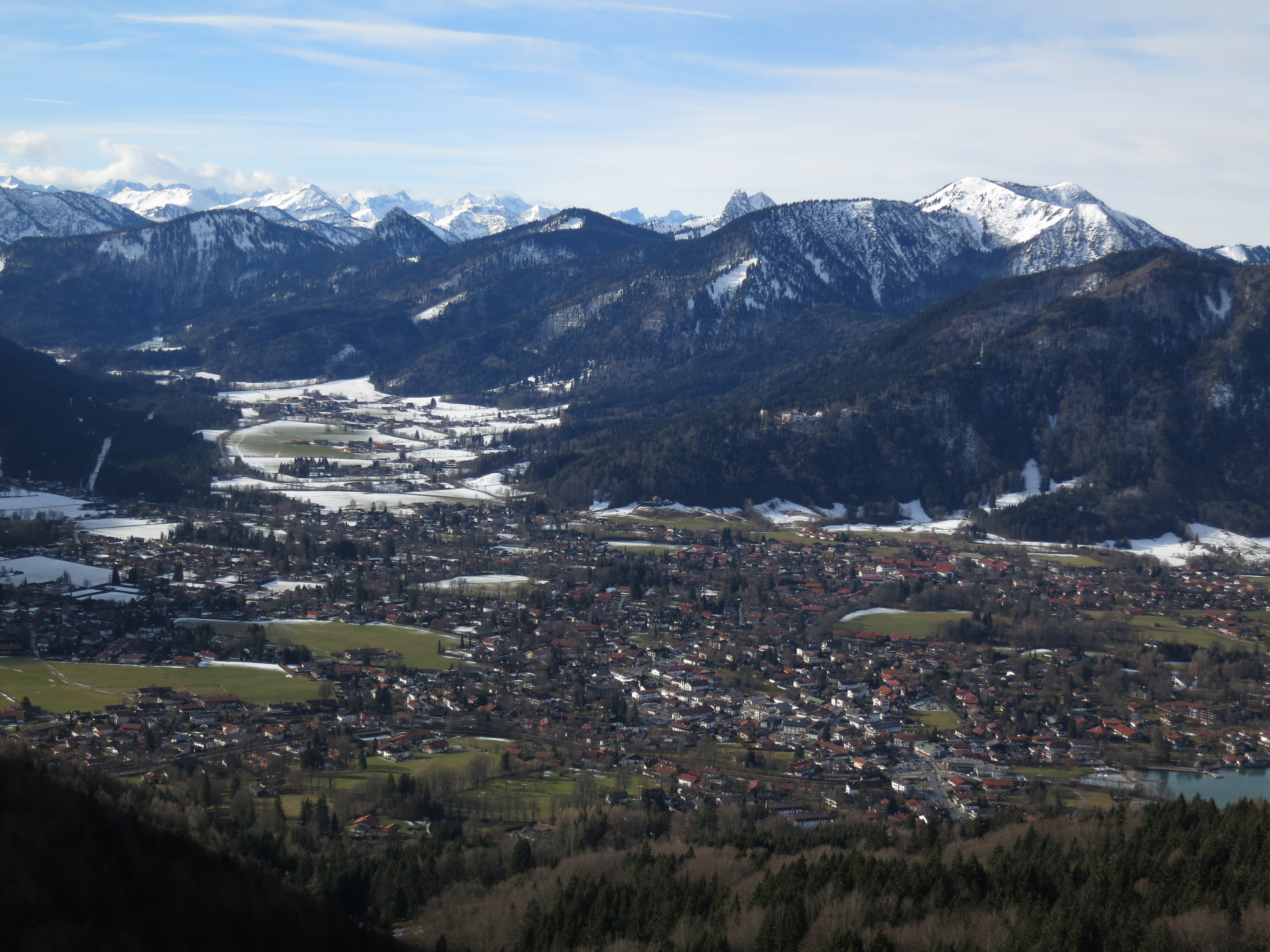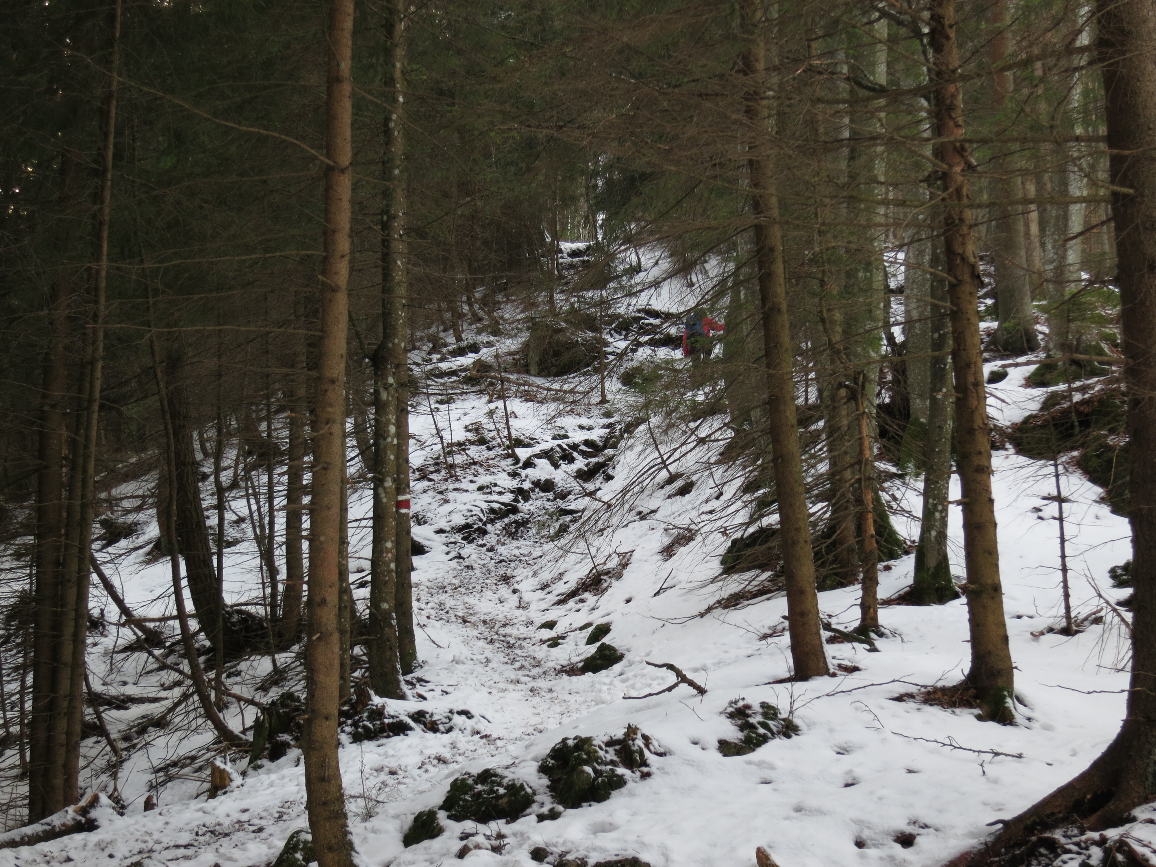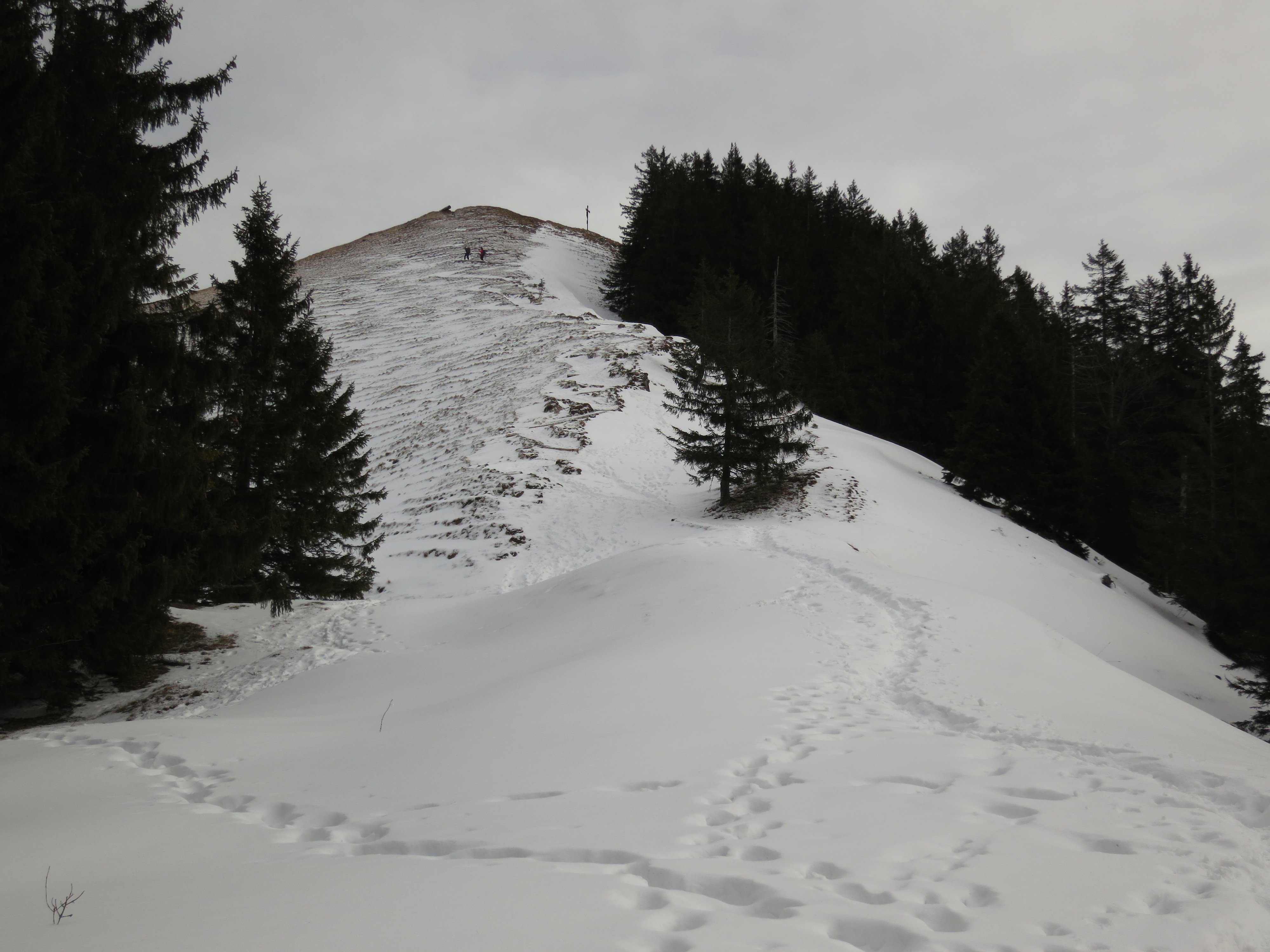 Tourenverhältnisse: Aufstieg über den Waldwirtschaftsweg (Bild 1) zum Gasthof Riederstein, dann weiter über die Riederstein-Kapelle zum Gipfel. Bis zur Kapelle schneefrei, aber im unteren Teil bis zur Berggaststätte etwas batzig (da ist der Fahrweg vom Parkplatz weg besser). Ab Kapelle dann meist eine dünne Schneeauflage (Bild 3), nur gelegentlich etwas mehr Schnee, aber dann mit guter Spur. Gipfelhang abgeblasen (Bild 4). Abstieg bis zu der ebenen Stelle unterhalb des Gipfelhangs, hier dann nach links (Süden) auf unmarkiertem Weg weiter, bis man die Fahrstraße vom Gasthaus zum Parkplatz erreicht. Ab der Abbiegung nach Süden anfangs durchfeuchteter Schnee, später dann so quasi schneefrei, aber dafür unangenehm batzig: diese Abstiegsvariante ist derzeit nicht wirklich zu empfehlen.