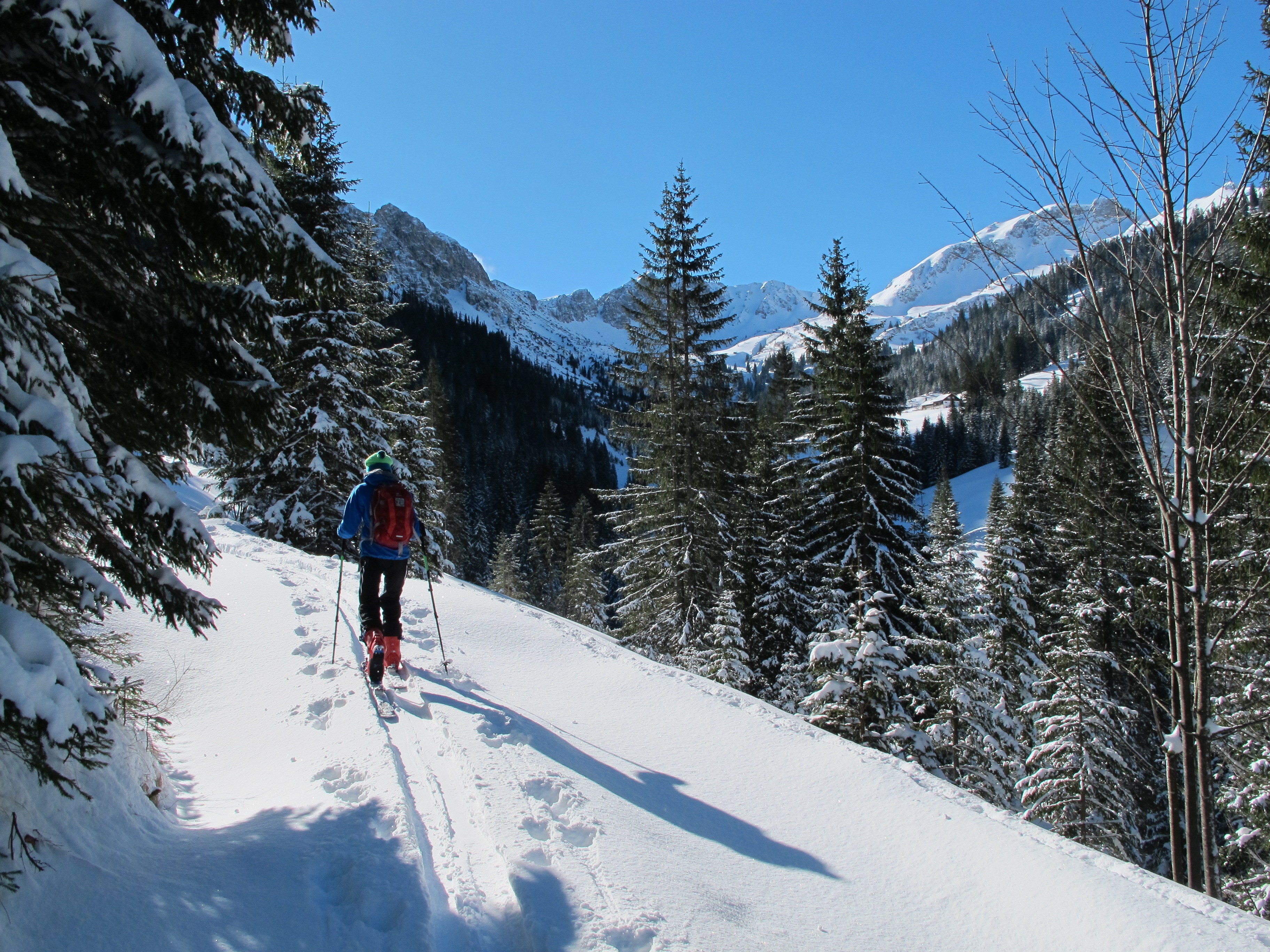 Tourenverhältnisse: Sehr schöne Verhältnisse. Unten etwa 10 cm Neuschnee, oben 20 cm auf harschiger, gut tragendener Unterlage.