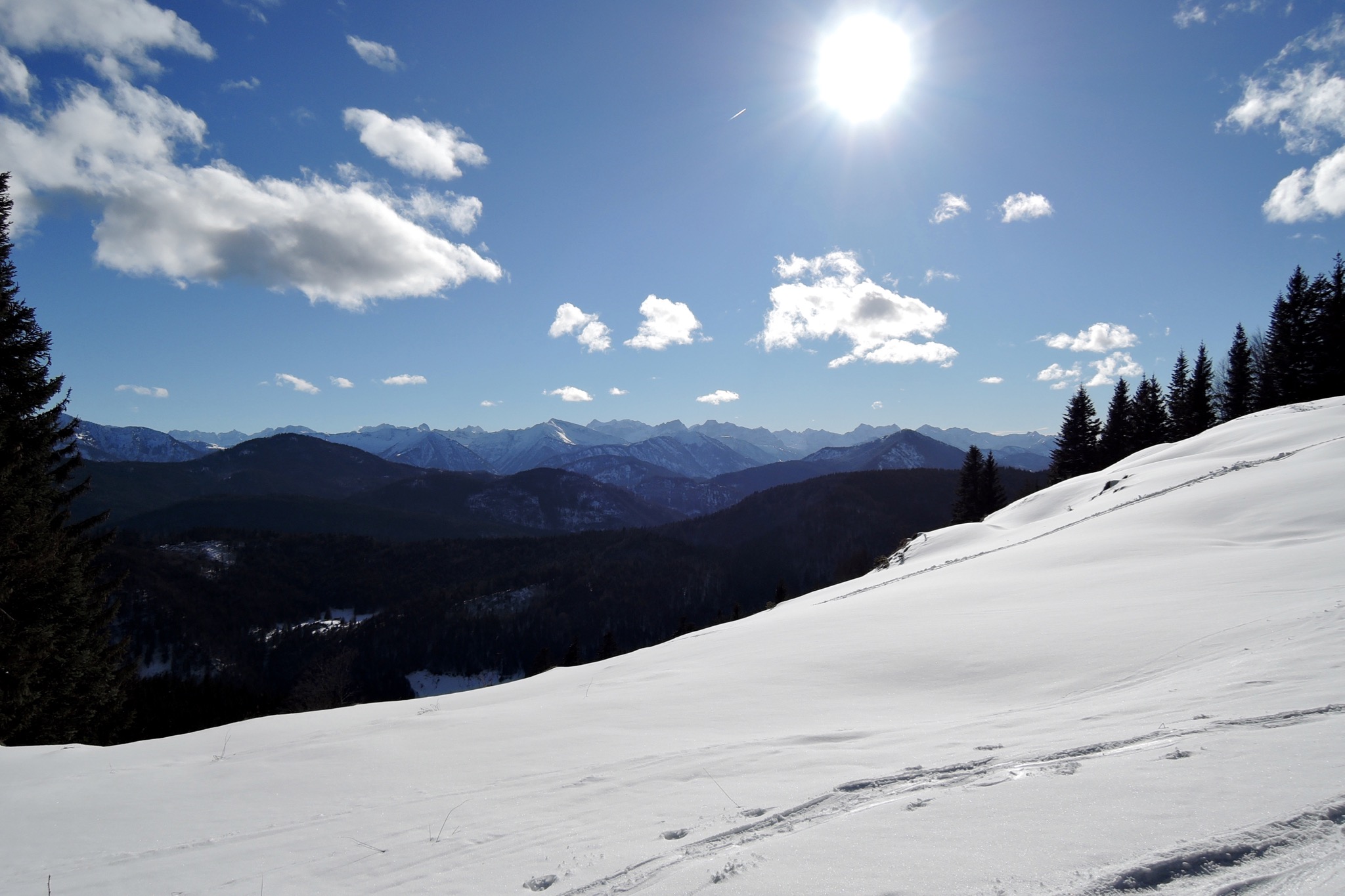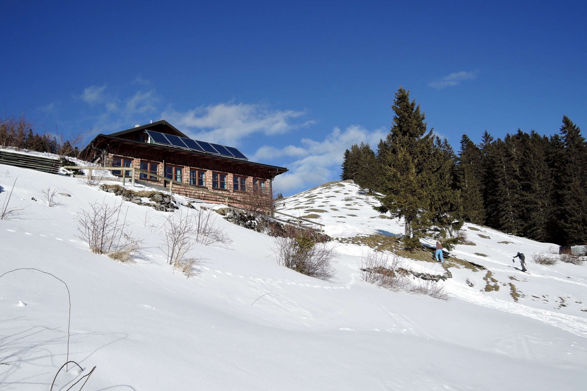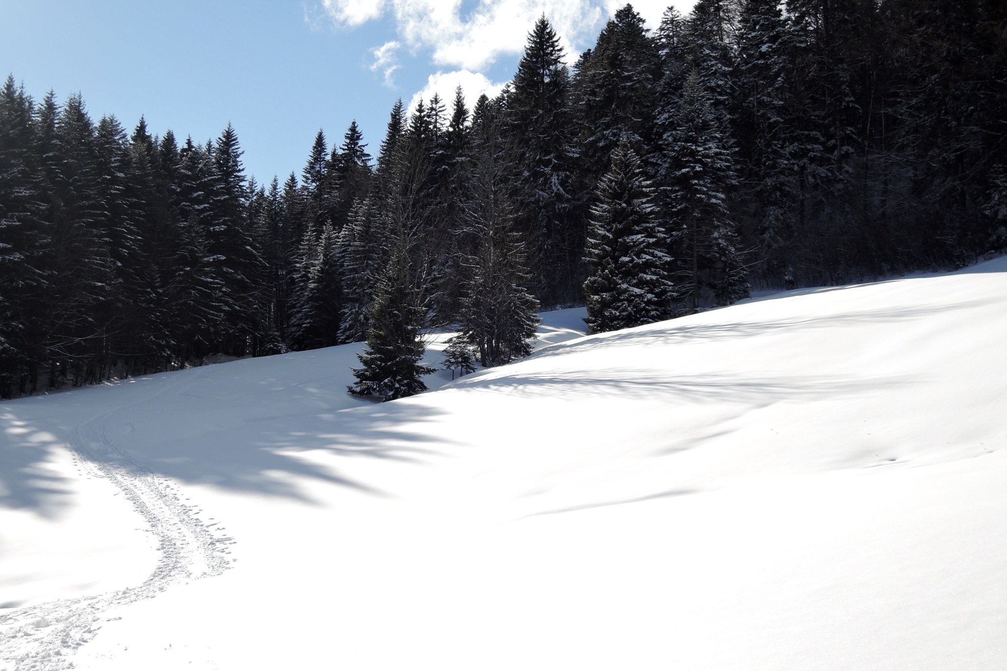 Tourenverhältnisse: Insgesamt schon wieder recht wenig Schnee: Die ersten 100Hm im Wald Schlamm, unten naß bis pappig, oben schwer, Piste eisig.