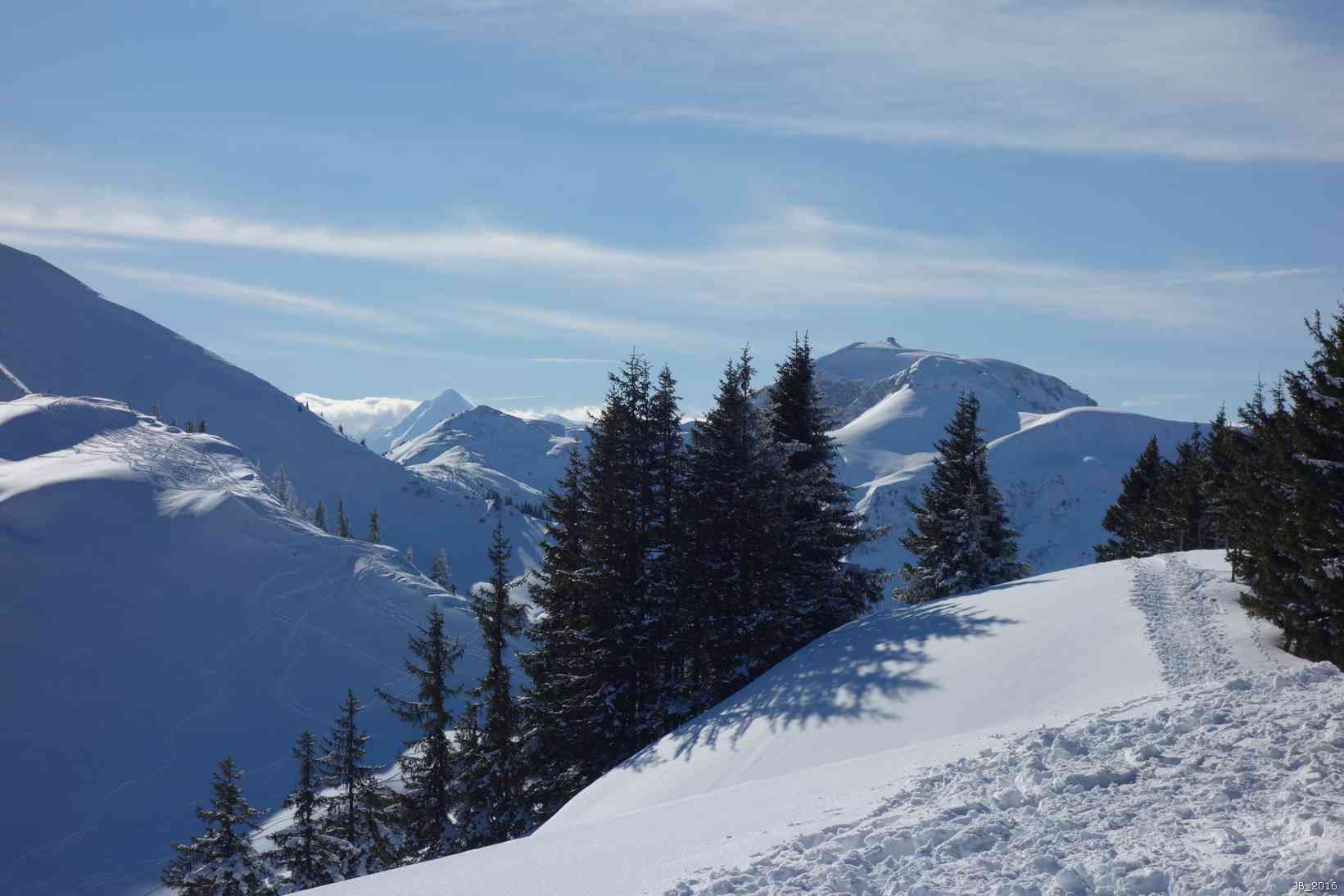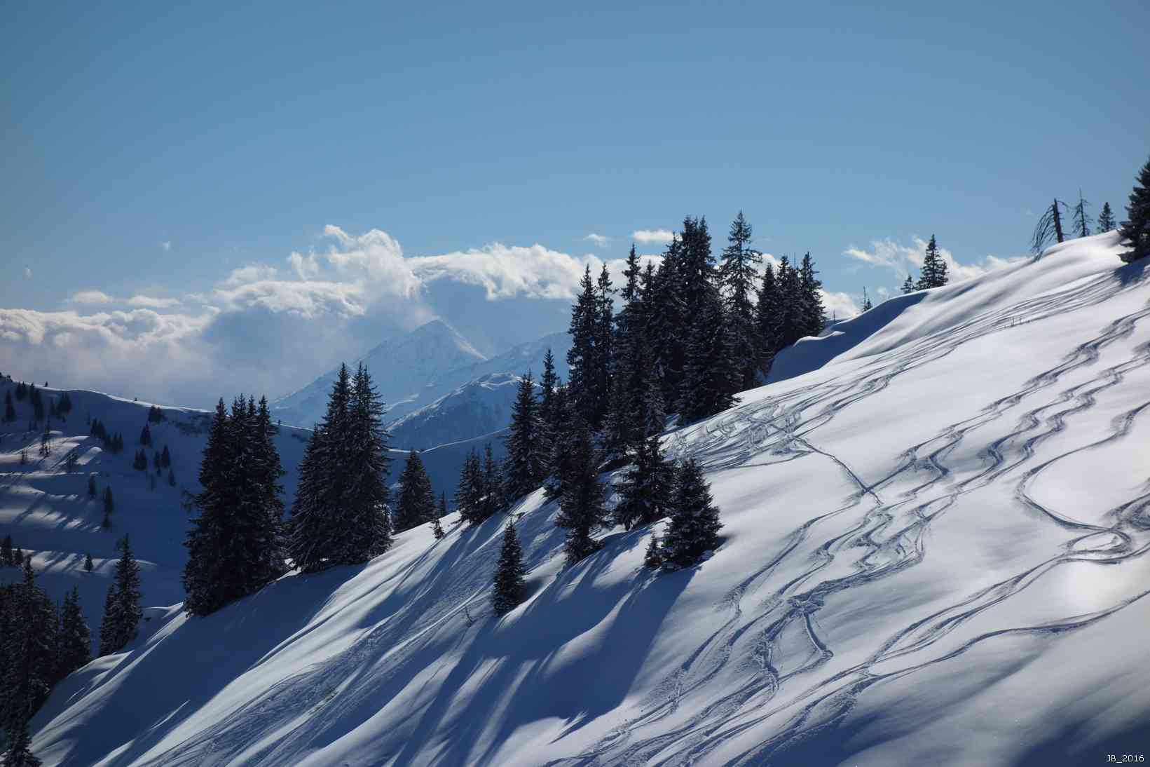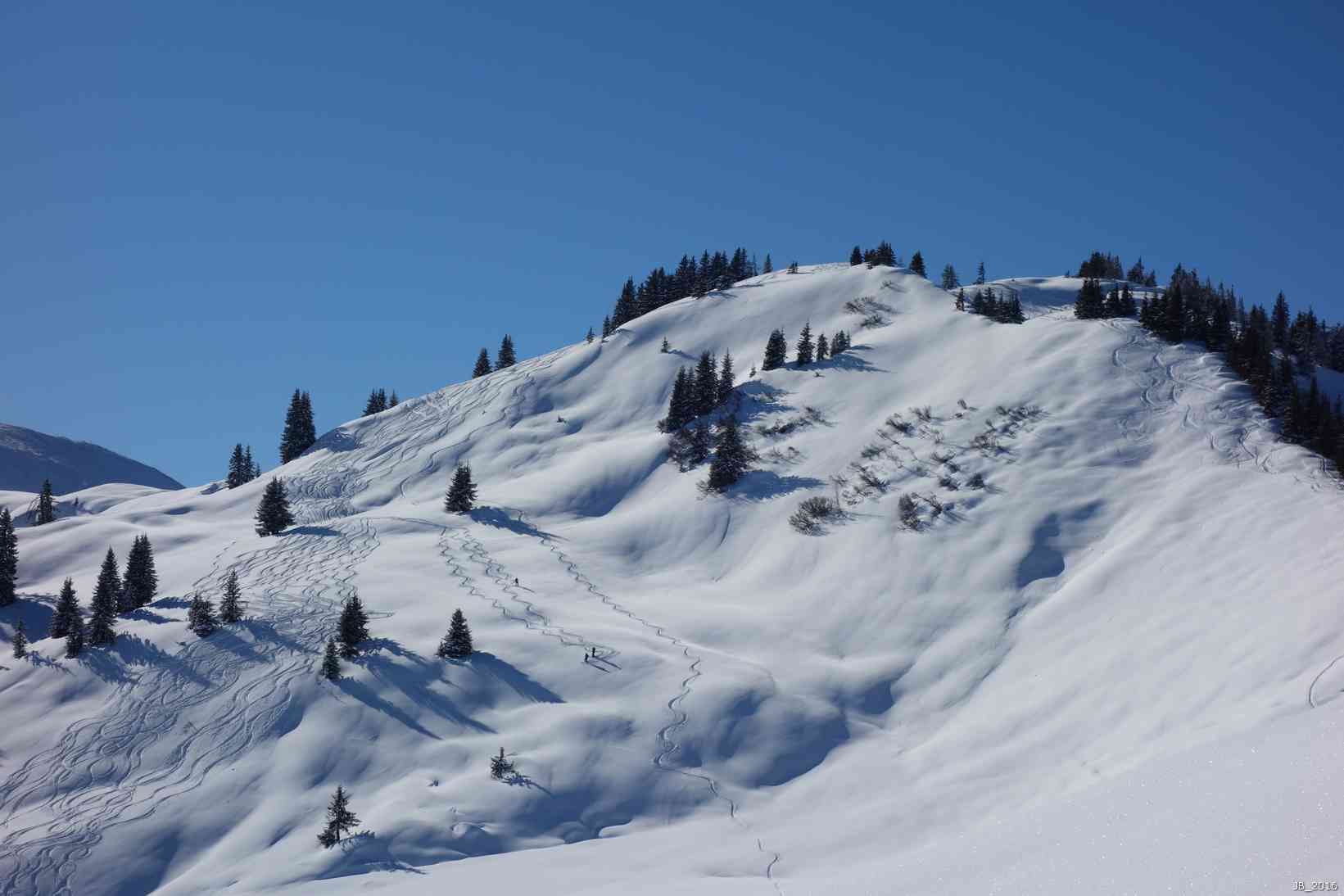 Wegen der NO-seitigen Ausrichtung hält sich der Pulverschnee gut.