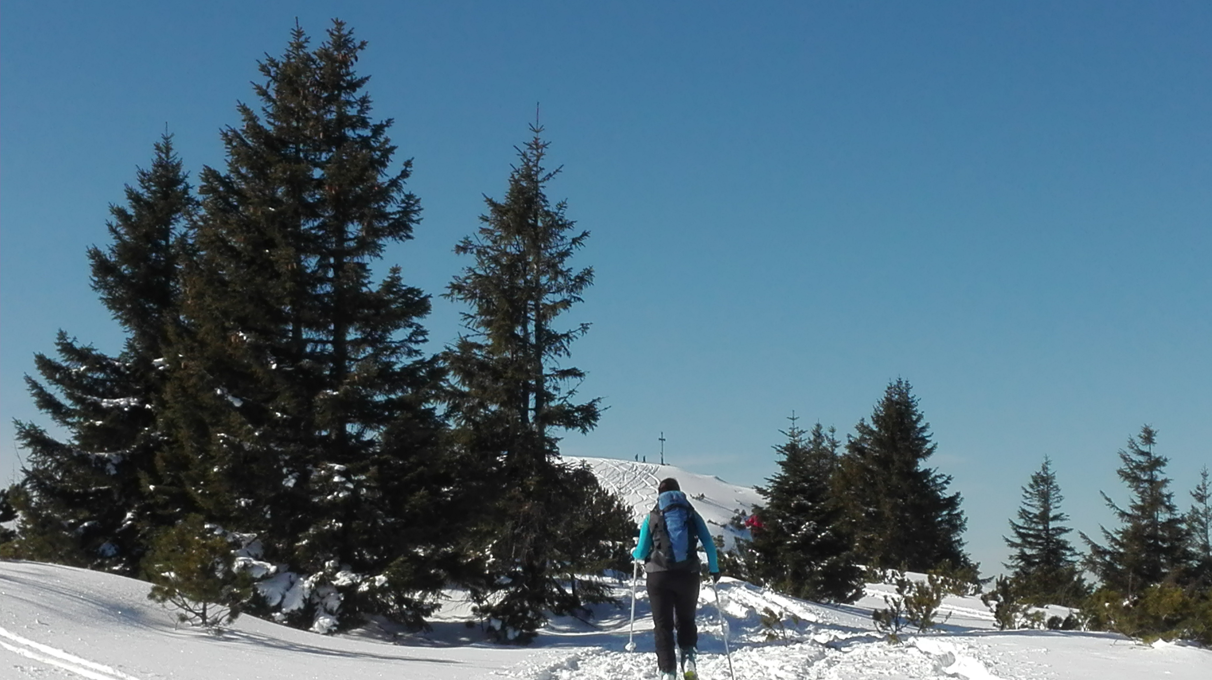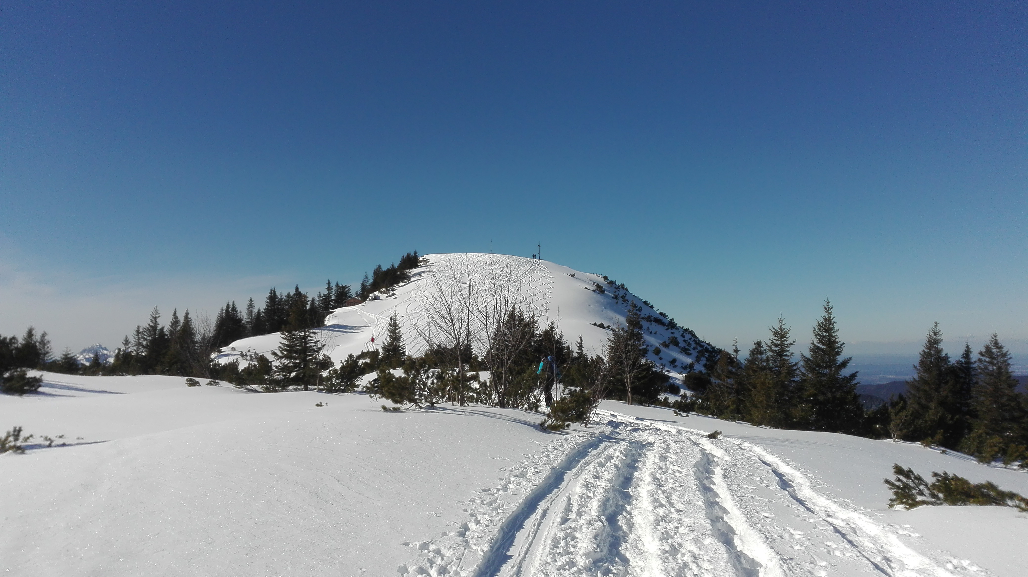 Tourenverhältnisse: gut; ca. 10-20 cm Pulverschnee in den Osthängen; hier sehr gut zu fahren; der Südhang unterhalb der Rauheckalm wies am Nachmittag schweren Schnee auf; der obere Teil der Skipiste hat einige braune Stellen