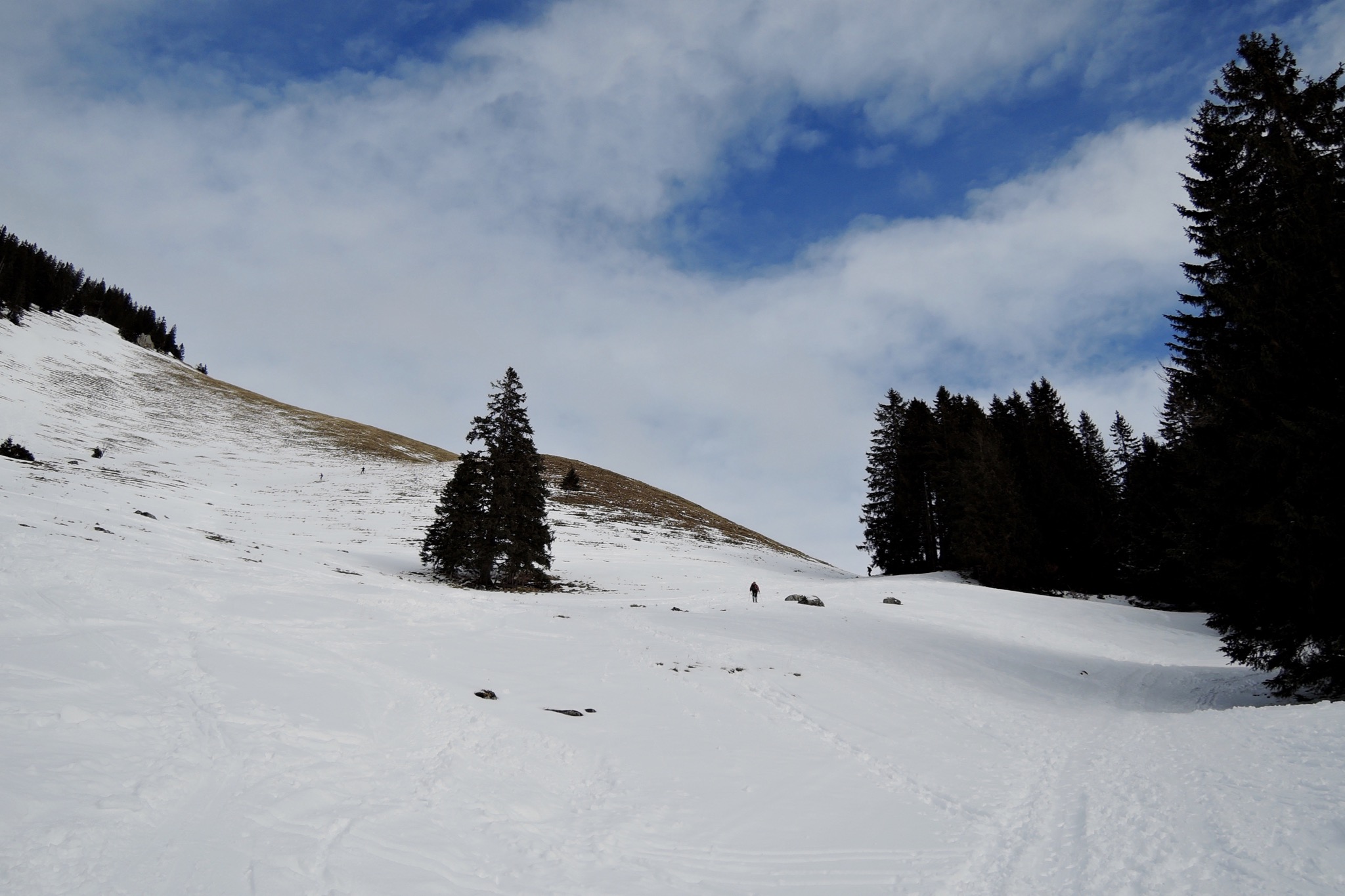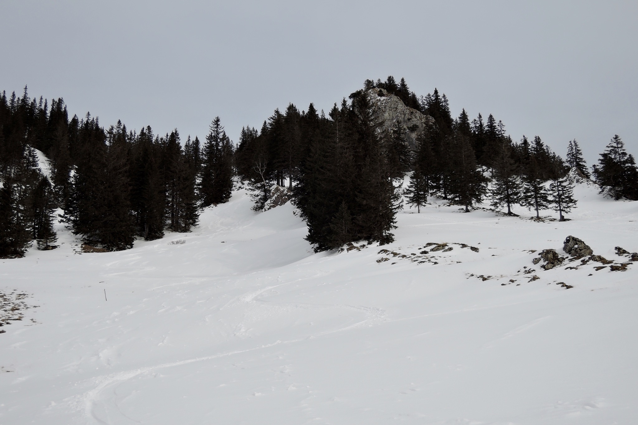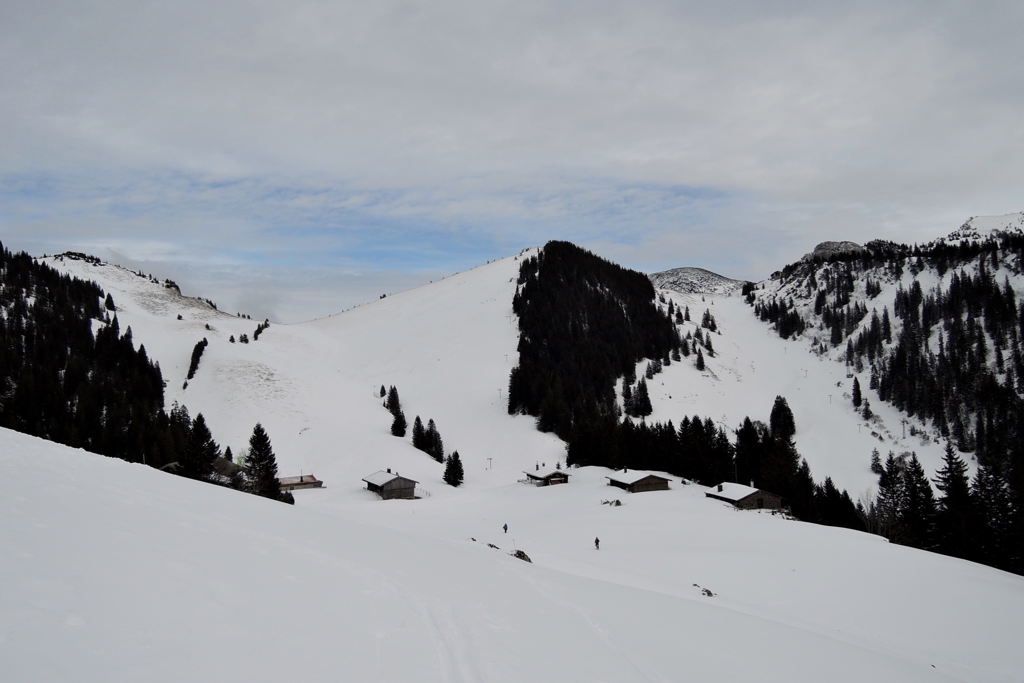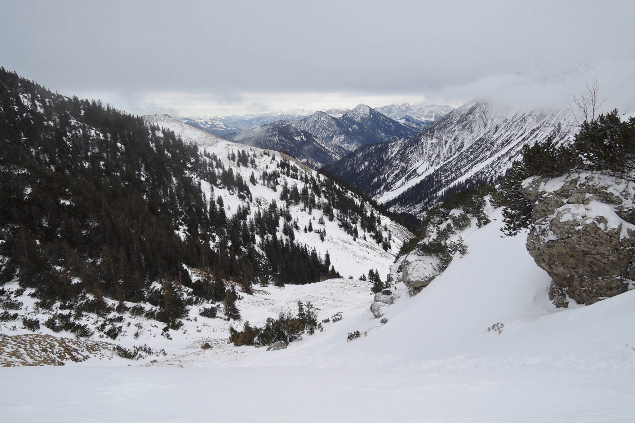Von dort erst zur Schnittlauchmoosalm, dann Richtung SW auf die Rauhalm zuhaltend abgefahren. Bei guter Schneelage eigentlich eine bessere Abfahrt als die vom Jägerkamp.
