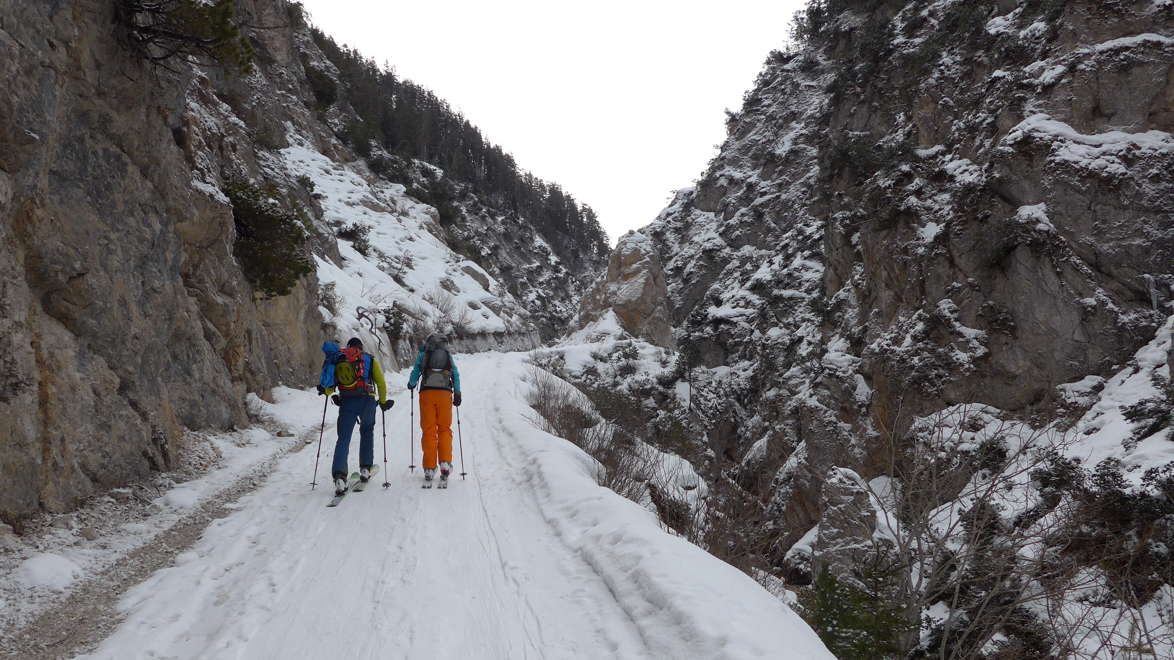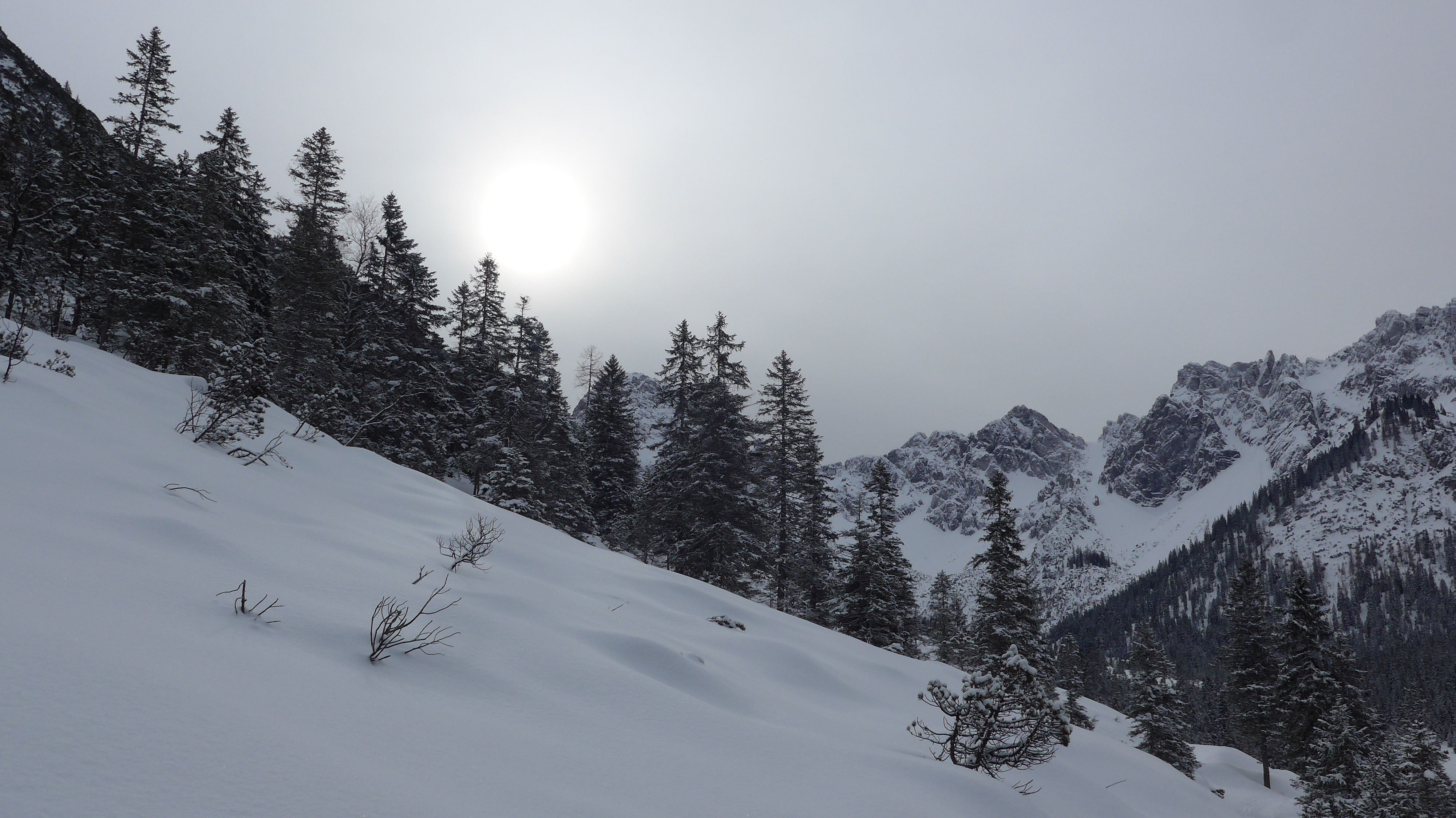 Tourenverhältnisse: gute Schneeauflage von unten weg dem Gießenbach entlang.