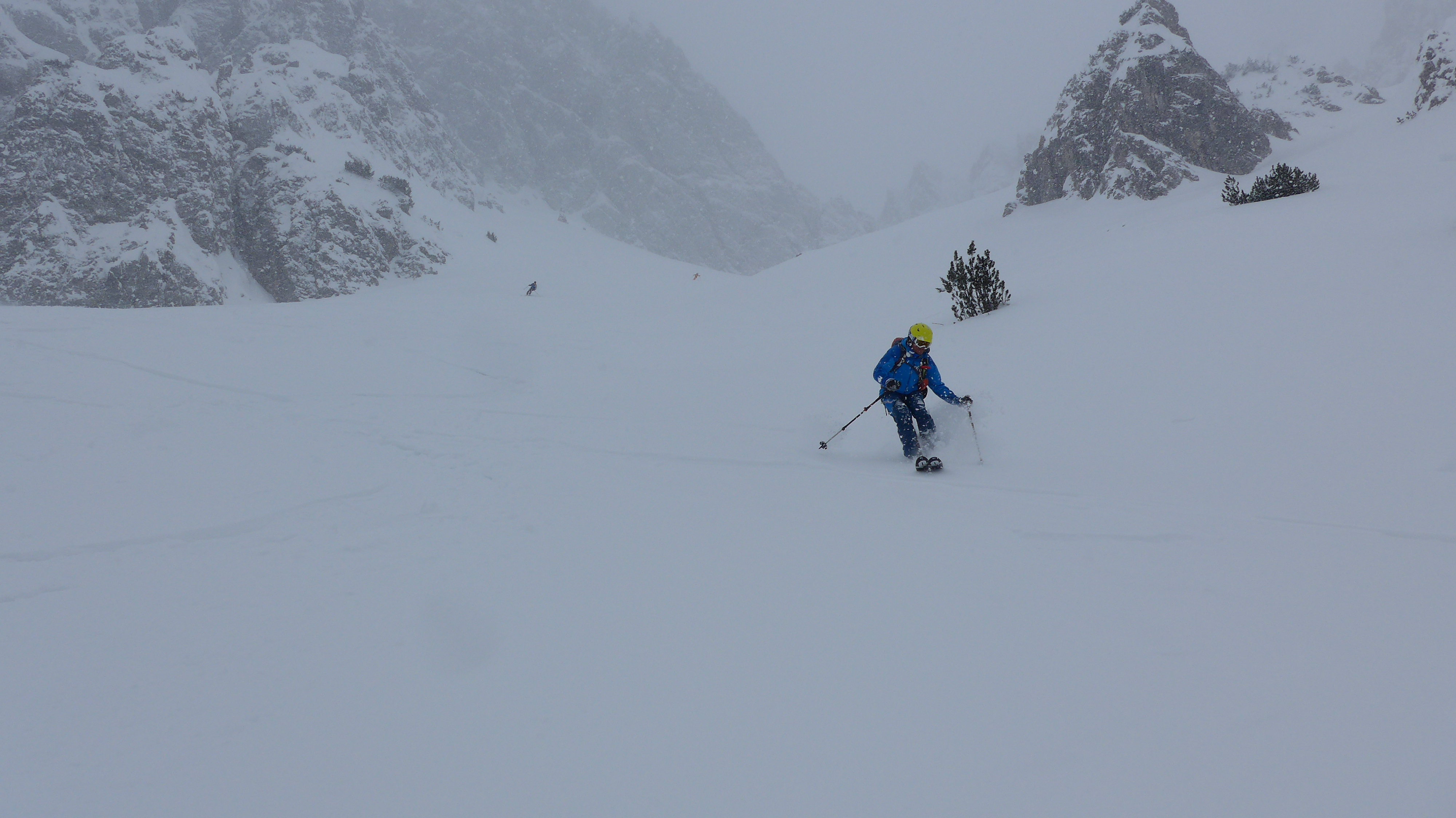 Ab Eppzirler Alm unangenehm windig. Im Kuhljochkar windstill. Am Kuhljoch wieder windig. Den Gipfelaufstieg (ohne Ski) von ca. 100 Hm haben wir uns bei einsetzendem Nebel und Schneefall erspart, ebenso die geplante "Fleißaufgabe" der Samstagskarscharte.