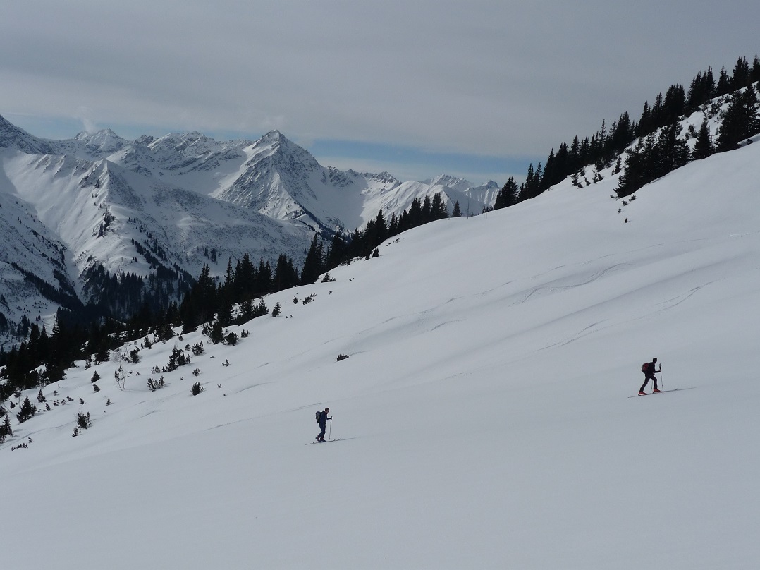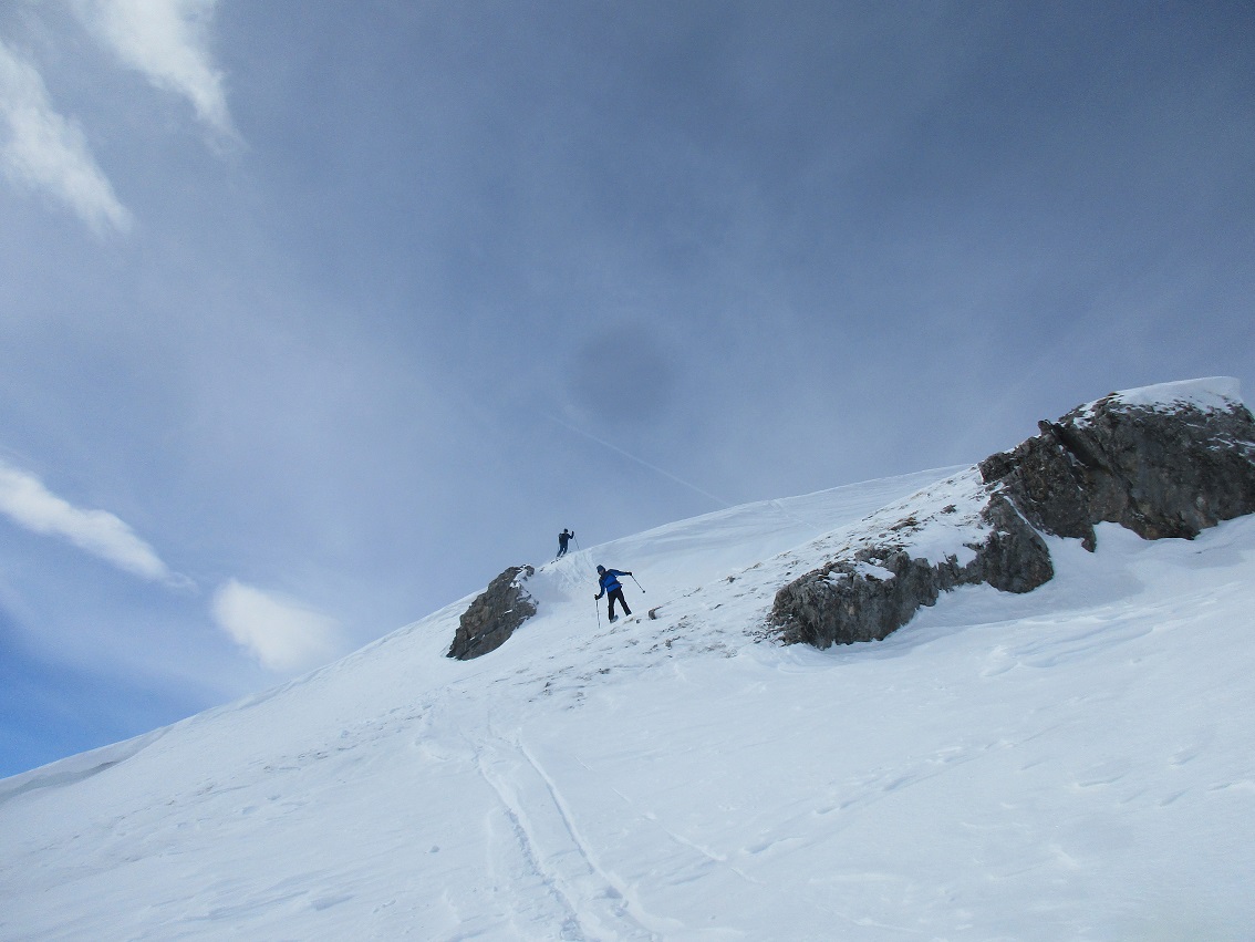 Tourenverhältnisse: Unten wenig Schnee / oben genügend / Firnschnee