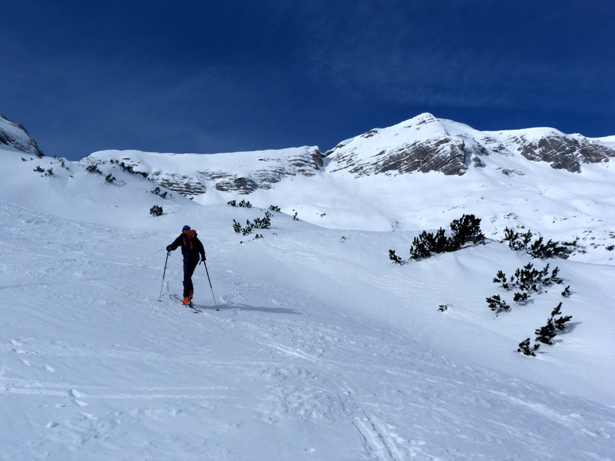 Prognose: Geht weiterhin und wird mit Neuschnee noch besser; diese rassige Direktvariante ist sowieso viel besser als das Latschen-Gehatsche von Steinberg aus.