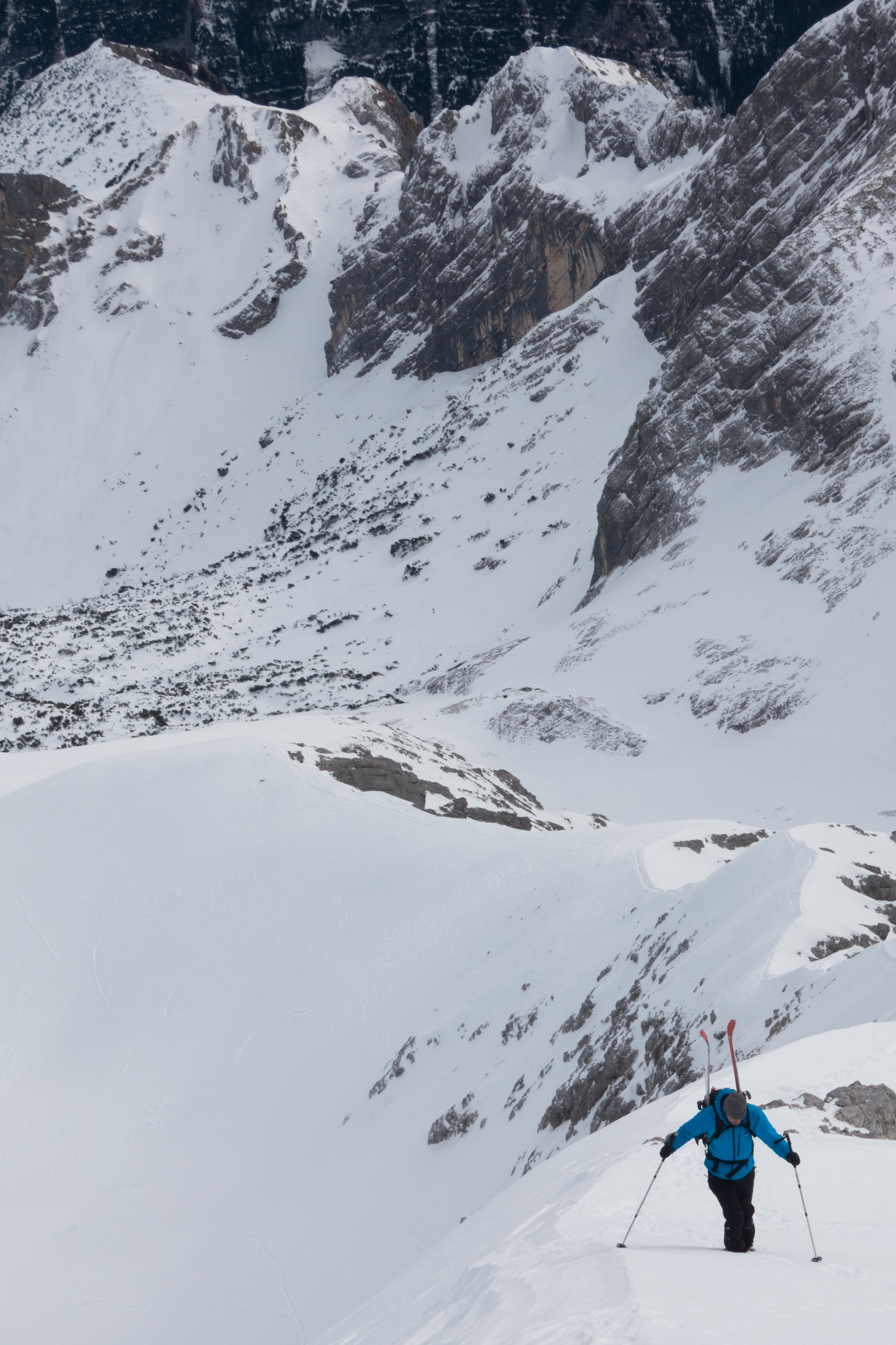 Etwas heikle Abfahrt wegen Schneeverhältnissen (Sturz, Abrutschen) vor allem an der Steilstelle im Osthang.