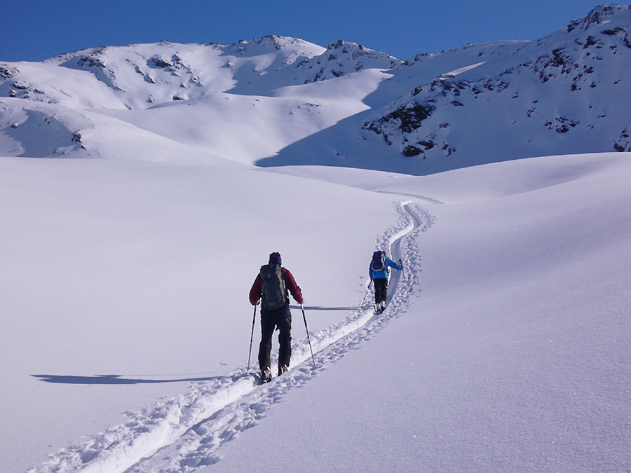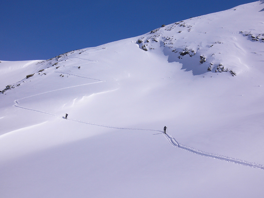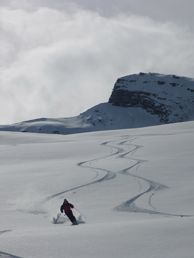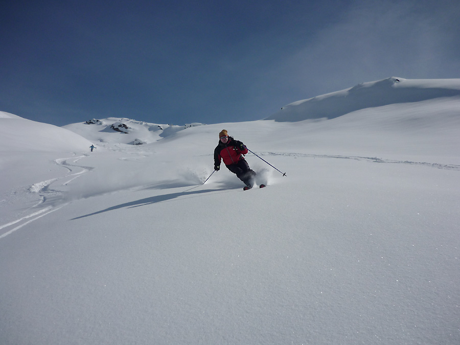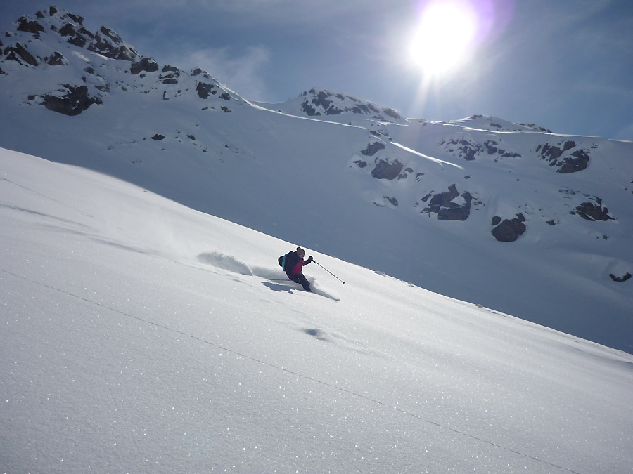 Tourenverhältnisse: endlich gab es mal wieder ein paar sehr gute Skitage am Stück mit viel unverspurtem Pulverschnee, Sonne und LWS 2.