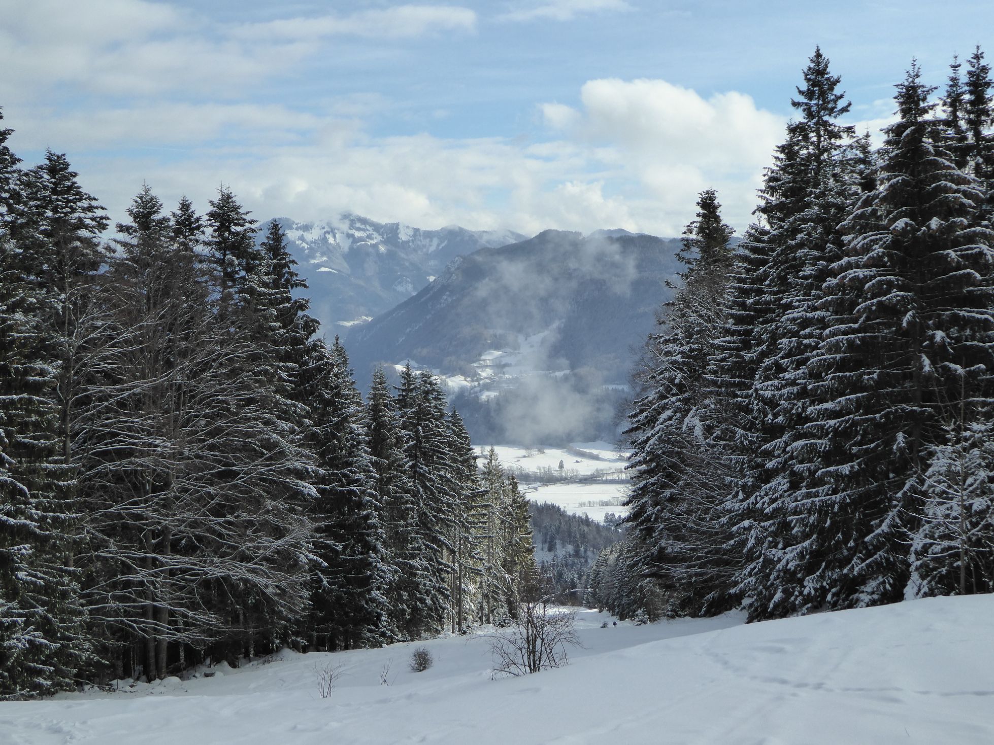 In der Früh konnten wir noch vom PP weg auf sehr dünner Schneedecke mit Fellen starten, ab 1000m dann genug Schnee in den Mulden.