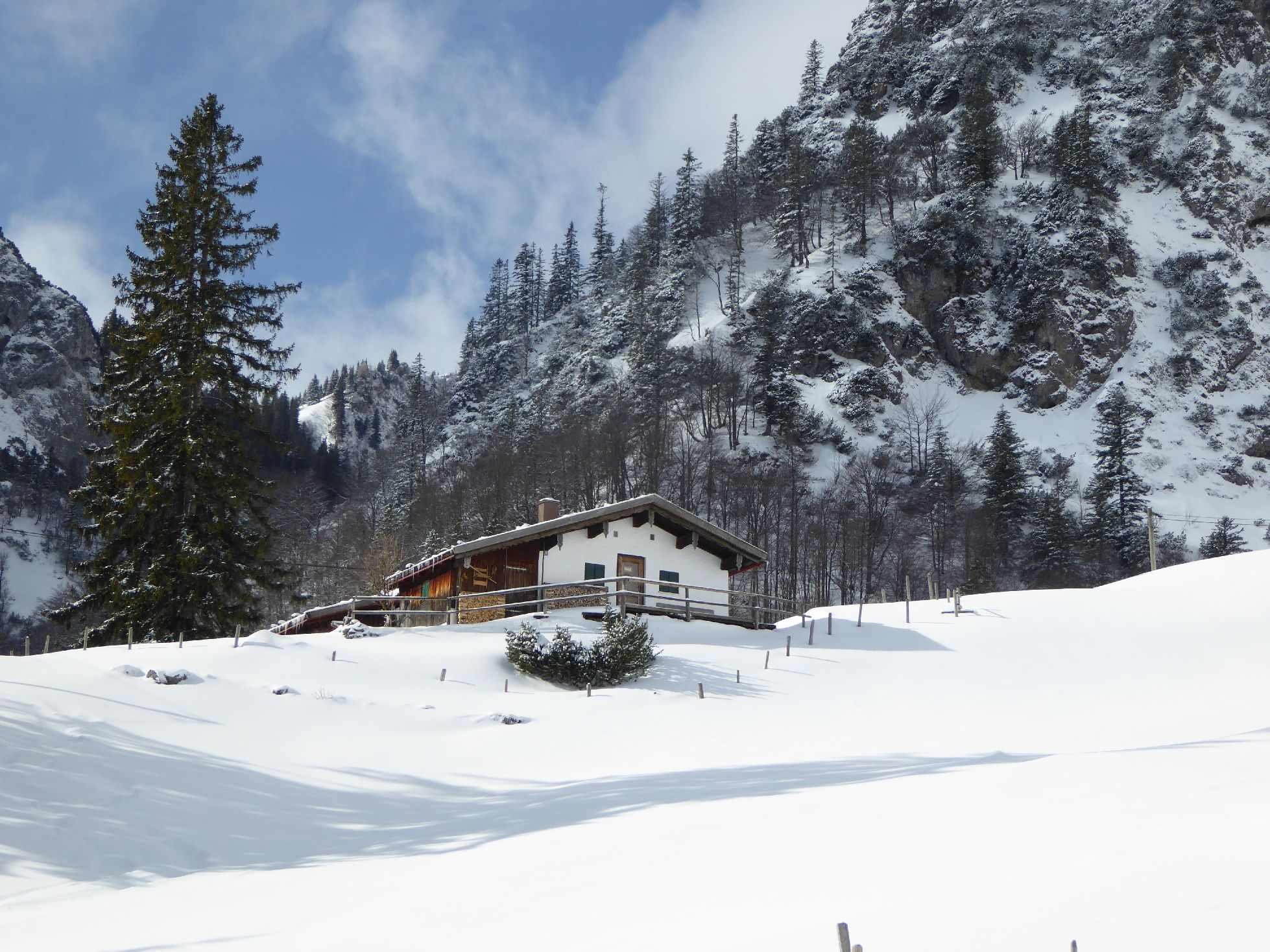 Gut angelegte Anstiegsspur ab der Wirtsalm, griffig, kein Harscheisen notwendig, die Latschen sind ganz ordentlich verschneit.