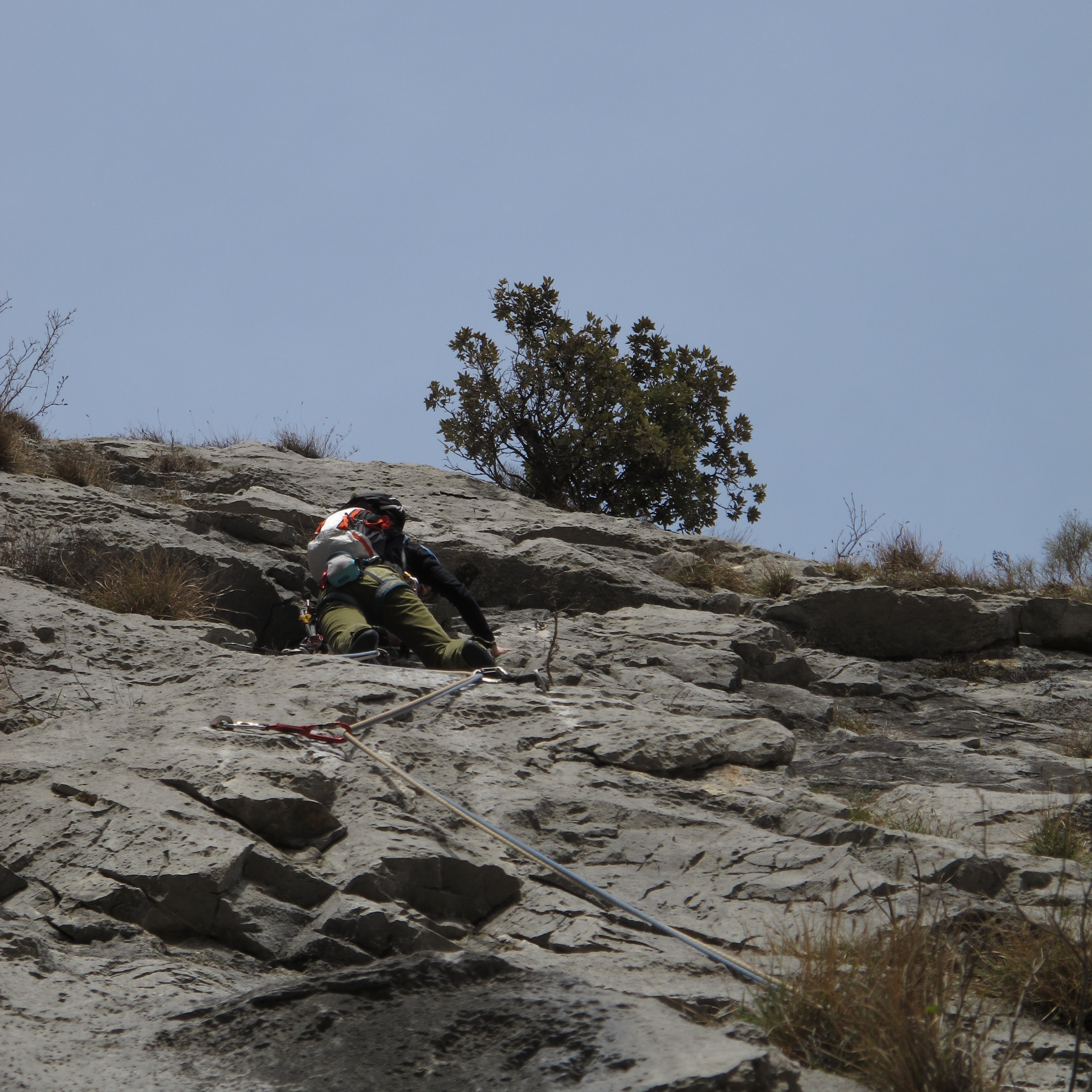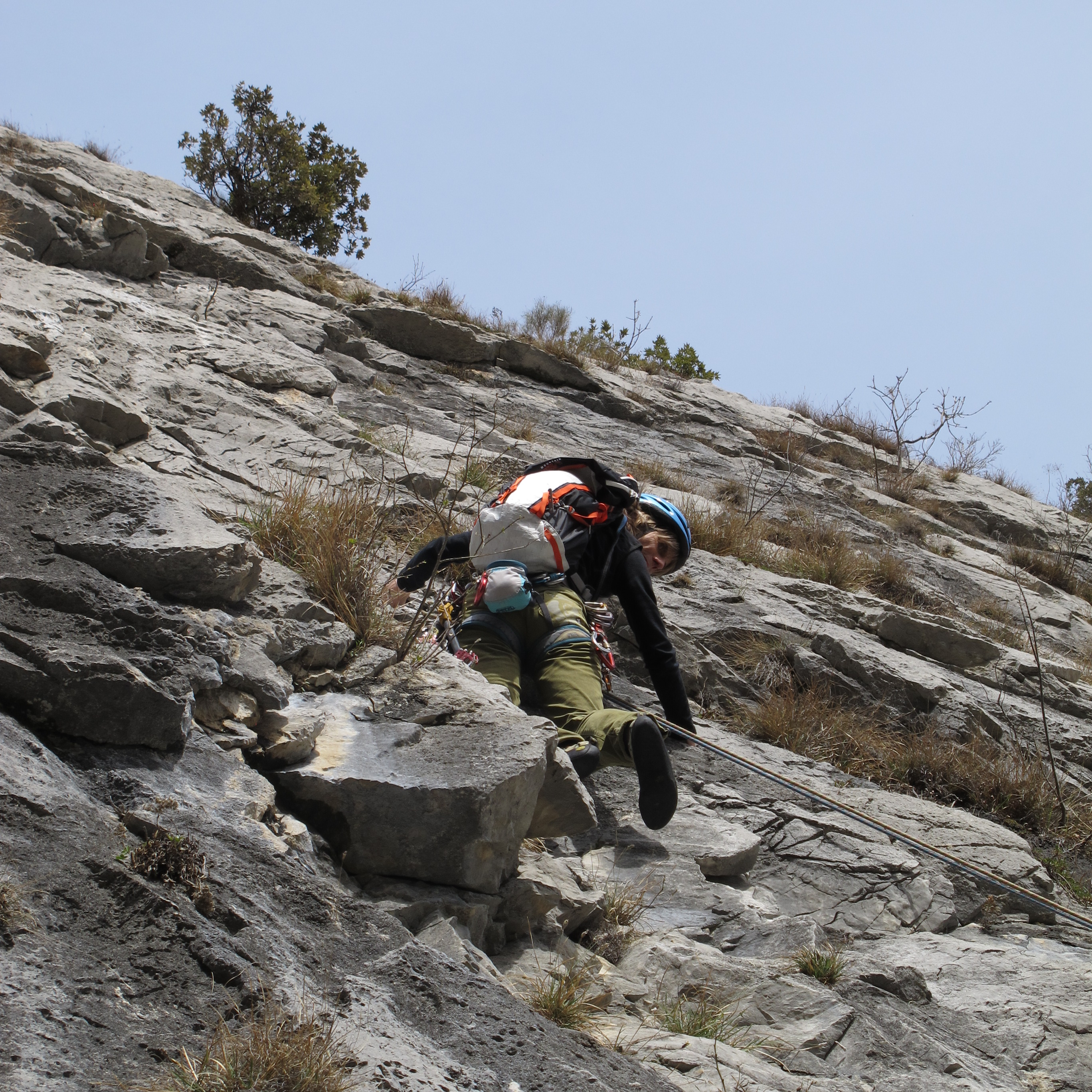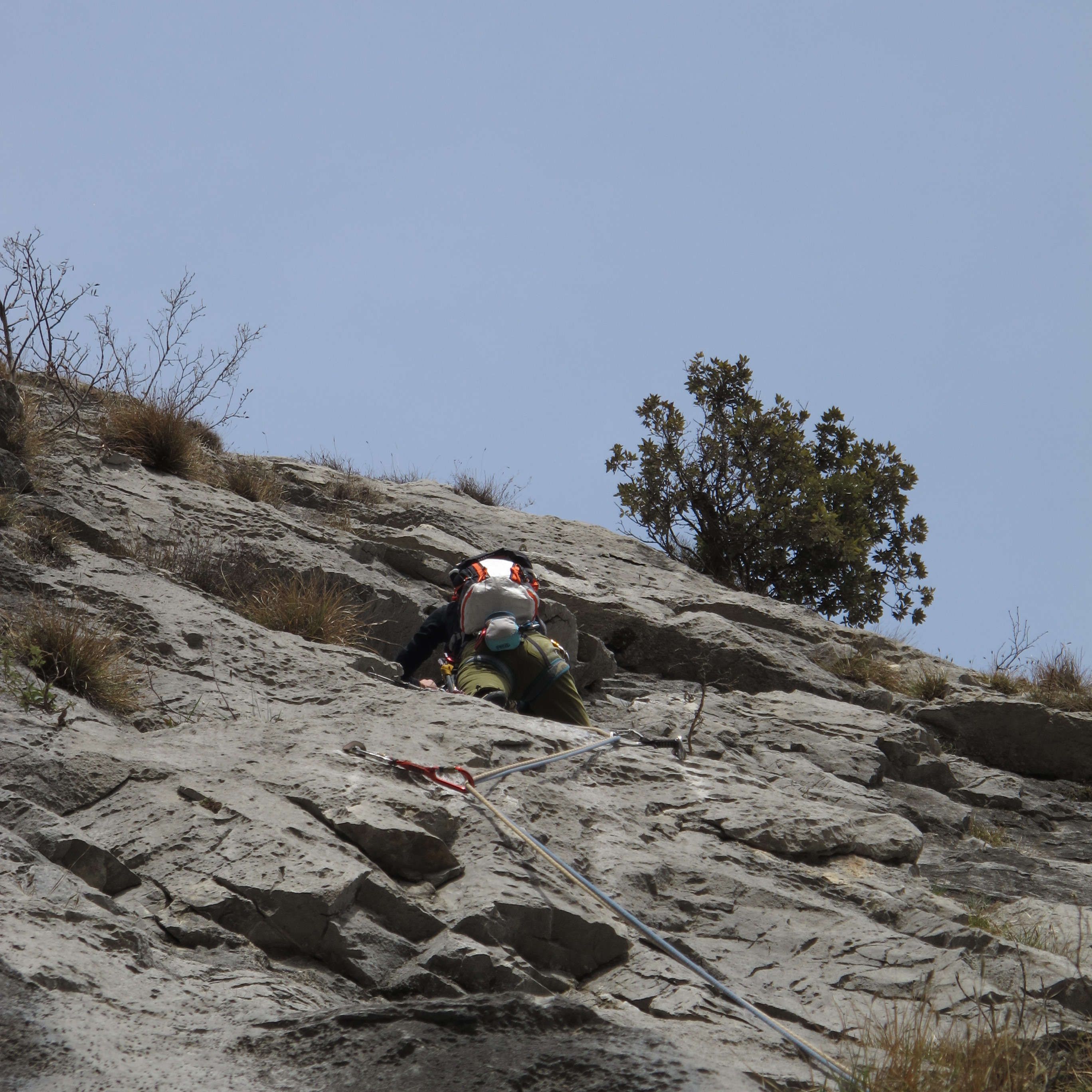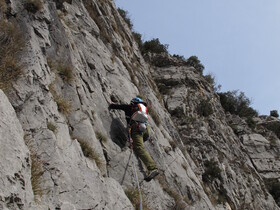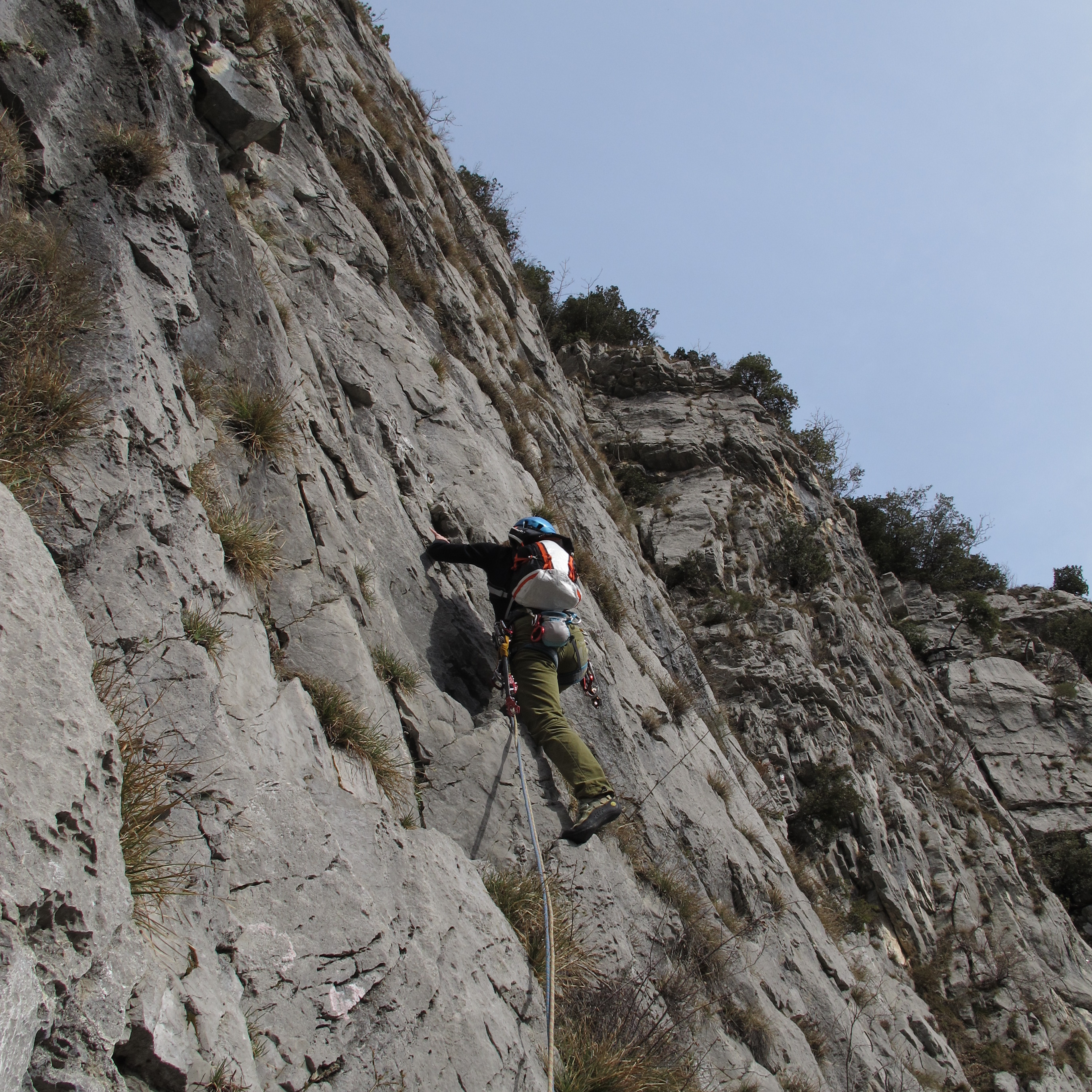 Gipfel und Höhe: Limarowand, A. Zanetti, 2005, Wandhöhe 250 m, 11Seillängen, VI, V+, gut gesicherte Tour,