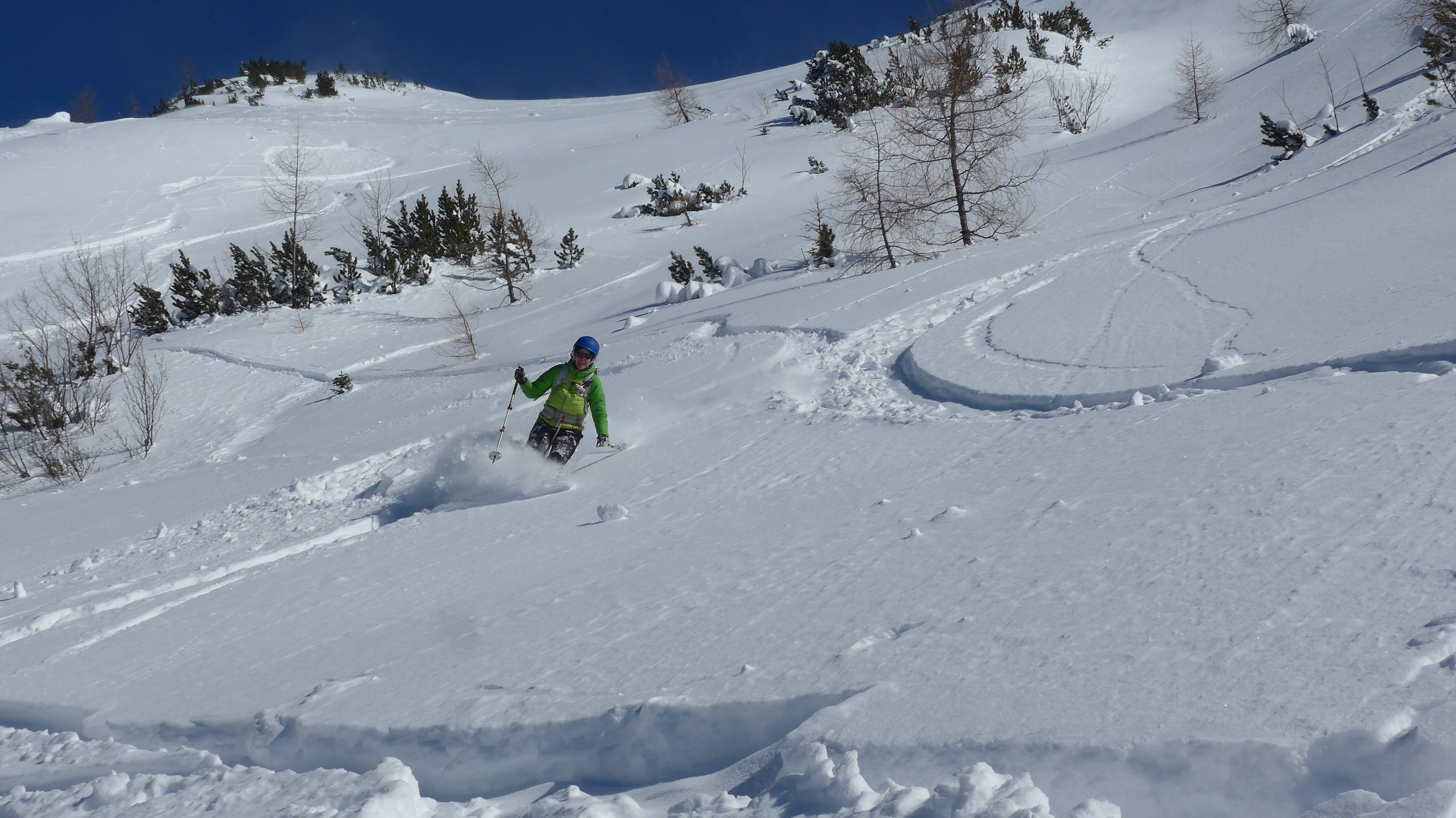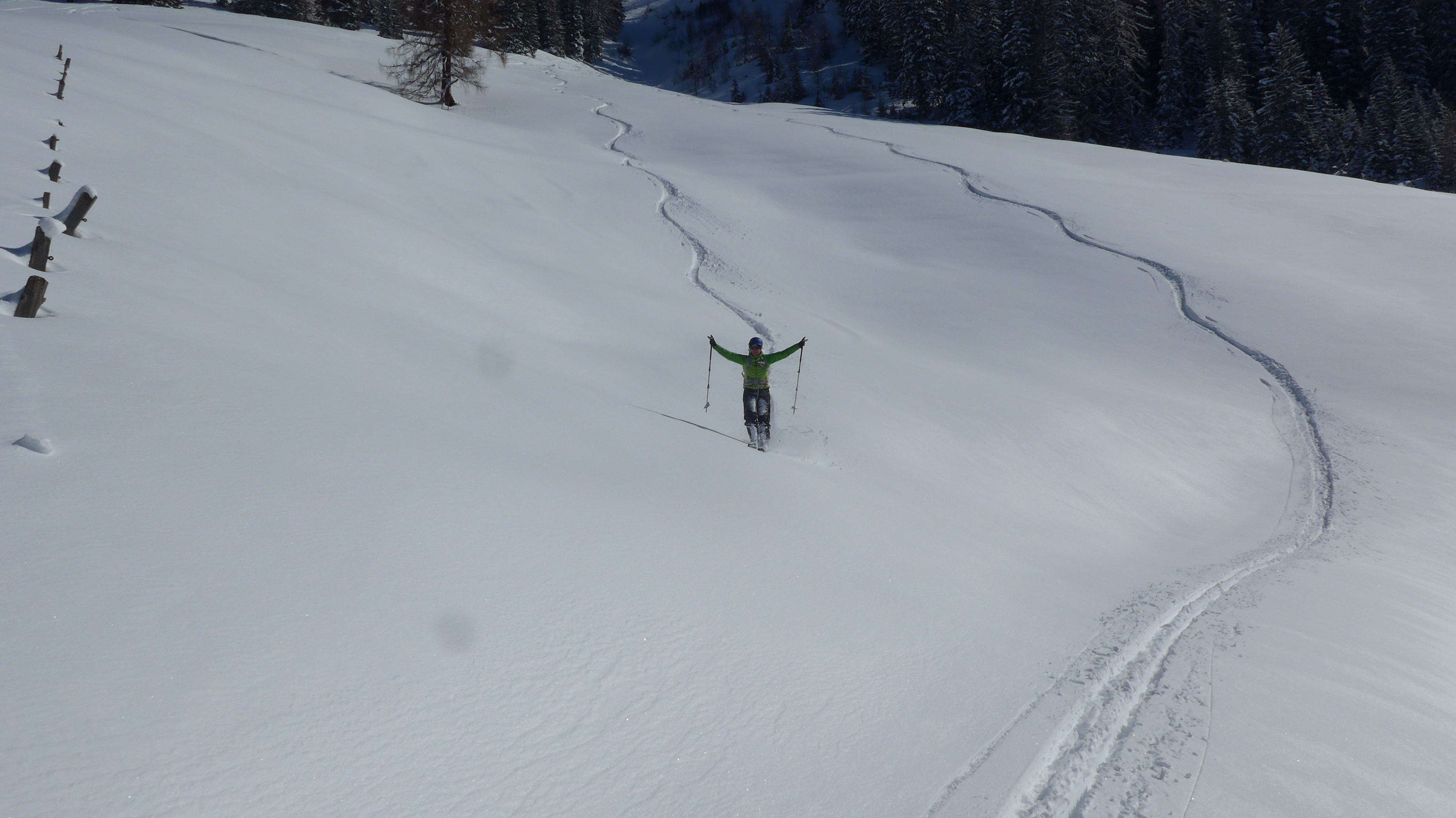 Pulverabfahrt in der Westschneise zur Bärenbadalm. Das gönnten wir uns gleich nochmal. Piste top.