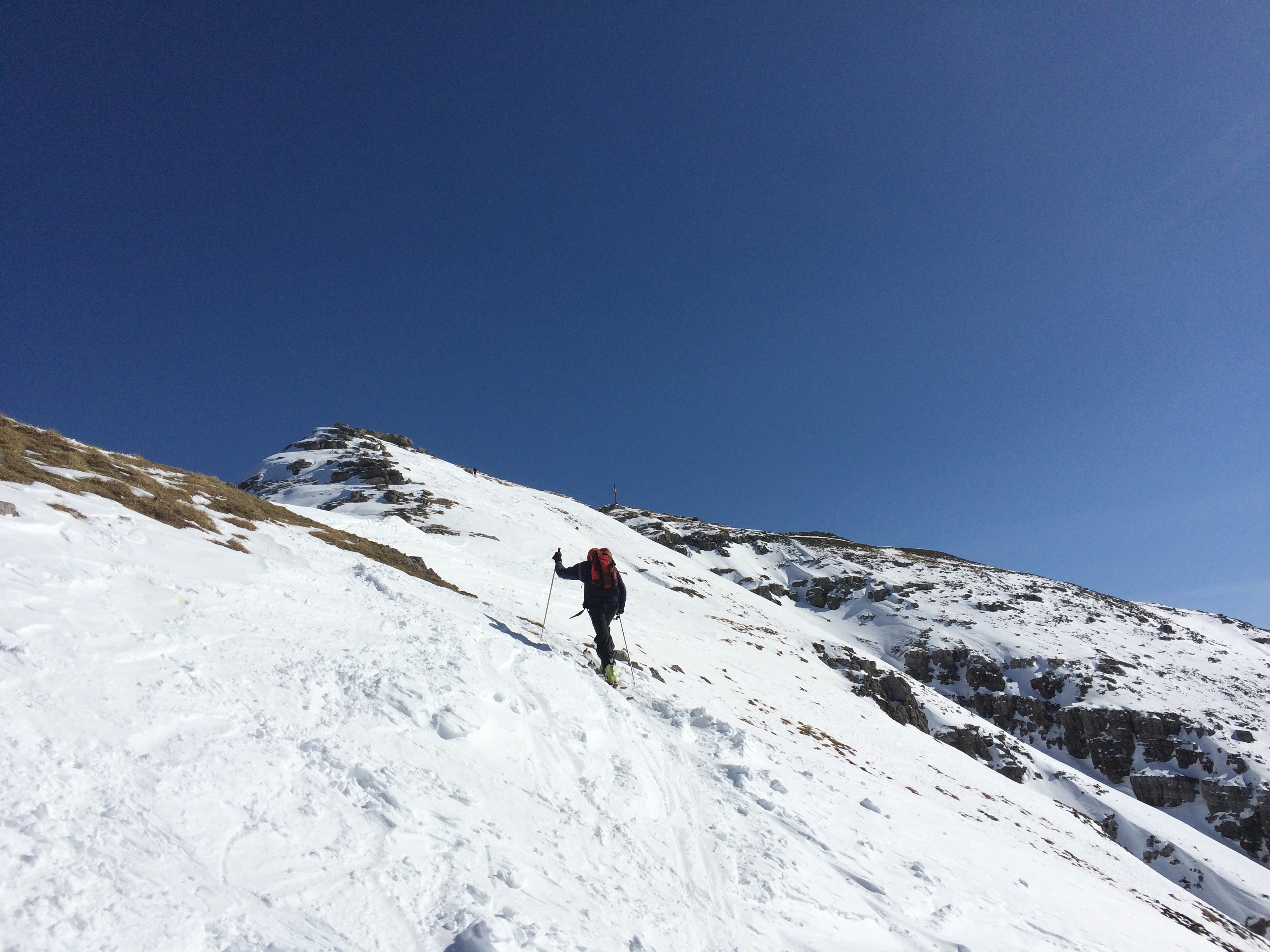 Gefahreneinschätzung: Schnee sehr gut gesetzt, auch in der steilen Rinne unter dem Rintljoch. Lawinenlage 2.