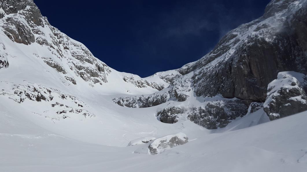 Tourenverhältnisse: Am Dienstag Nachmittag beim Zustieg zum Stahlhaus noch dichter Schneefall. Am Mittwoch dann fast Wolkenlosens Wetter und 50cm Neuschnee, leider stark Wind bearbeitet. Um 6 Uhr im Aufstieg zum Schneibstein sehr windig dafür aber griffig zu gehen. In der Schlumm dann windstill und angenehme Temperaturen. Beim letzten steilen Aufstieg zum Jägerbrunntrog leider total zugehangen mit Wolken. Um 10:30 Uhr Einfahrt in den Eisgraben. Im Eisgraben ganz gute Verhältnisse. Windgepresster Pulver. Untere Steilstufe im Eisgraben musste abgeklettert werden. Nachm Eisgraben viele unterschiedliche Schneearten. Da die Aufstiegspur beim Lehlingskopf endete und ich nicht bei starken Wind die Lange Gasse alleine spuren wollte beschloss ich auch hinunter zur Wasseralm zu fahren. Abfahrt zur Wasseralm war schöner Pulver der aber ab ca. 1500m schwerer zu fahren wurde. Um 12 Uhr war ich dann an der Wasseralm. Ich hatte das glück und der Hüttenwirt und noch einige andere sind gerade mitn Hubschrauber da gwesen und haben nachm rechtn gschaut. Somit war die Hütte schon schön warm. Bis zum Abend sind dann noch 8 weitere Skitourengeher gekommen. Am nächsten Tag dann fast Windstill. Aufstieg von der Wasseralm über den Sommerweg zur Blauen Lacke. Aufstieg in die Steinerne Grube zach aber auch sehr griffig zu gehn. Gipfelhang vom Funtenseetauern war ziemlich geladen, da ich alleine unterwegs war und die anderen Skitourengeher zur Scharte Richtung Ledererköpf aufstiegen bin ich dann auch auf die Scharte hoch. Alleine war mir der Gipfelhang vom Funtenseetauern zu riskant. Von der Scharte kurz abklettern ins Ledererkar. Im Ledererkar tükische Verhältnisse, Felsen unter lockeren Pulver. Im Wald dann wieder guter Pulver ohne Feindkontakte. Der Hüttenwirt vom Kärlingerhaus ist seit Mittwoch schon oben. Kärlingerhaus hat seit heute geöffnet. Laut Hüttenwirt ist der Seilergraben zurzeit nicht zu empfehlen. Weil ich aber auch keine große motivation hatte übern Trischübel und dann das komplette Wimbachgrieß die Ski am Buckel zu tragen beschloss ich über die Saugasse abzufahren. Die Saugasse hat ganz passable Verhältnisse. Wechselhaft windgepresster Pulver bis stellenweise Pulver mit leichter Harschkruste. Kurz oberhalb vom Schrainbachfall müssen dann die Ski die letzten 400 hm bis nach St. Bartholomä getragen werden. Insgesamt waren sehr wechselhafte Verhältnisse aber überall ausreichend Schnee.