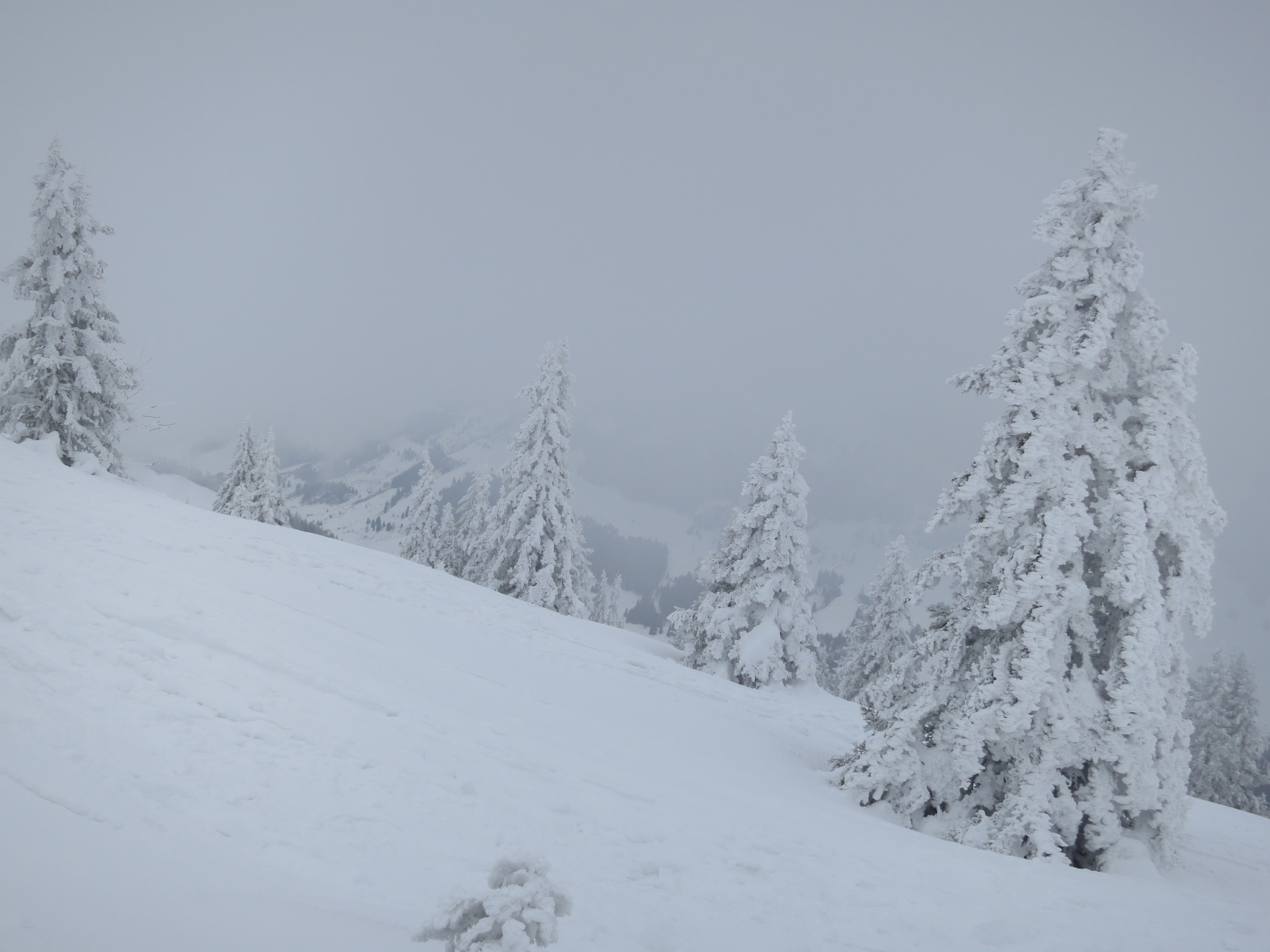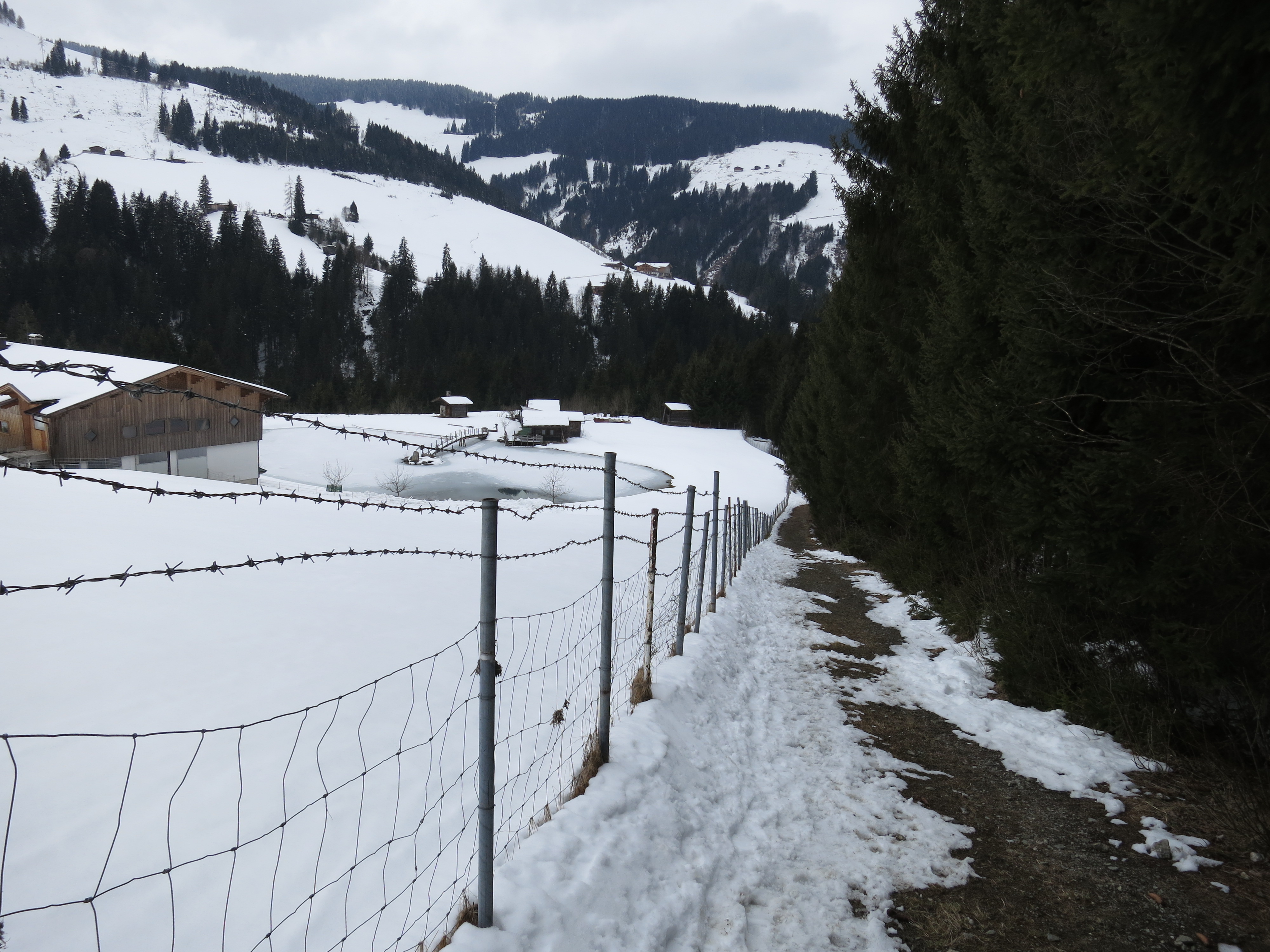 Tourenverhältnisse:Insgesamt lag mehr Schnee, als ich erwartet hatte. Abfahrt vom Gipfel bis zur Feldalm (Nordhang) im Pulverschnee, der im weiteren Verlauf schwerer wurde. Ab der Oberen Prädastenalm oft pistenartig eingefahren und leicht sulzig. Bis auf ein kurzes Stück am Ziehweg unterhalb des Prädastenhofs (Bild 4) Abfahrt zum Parkplatz problemlos möglich.
