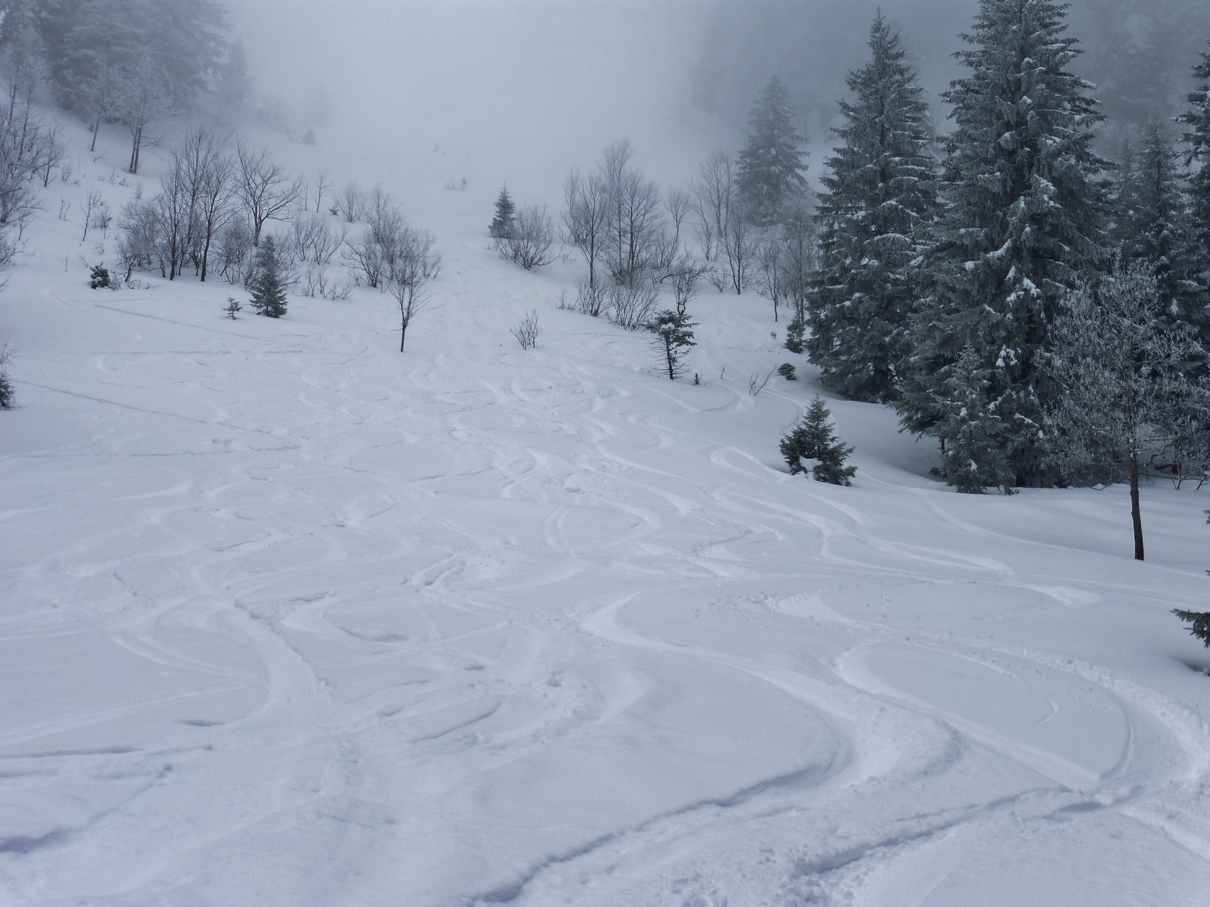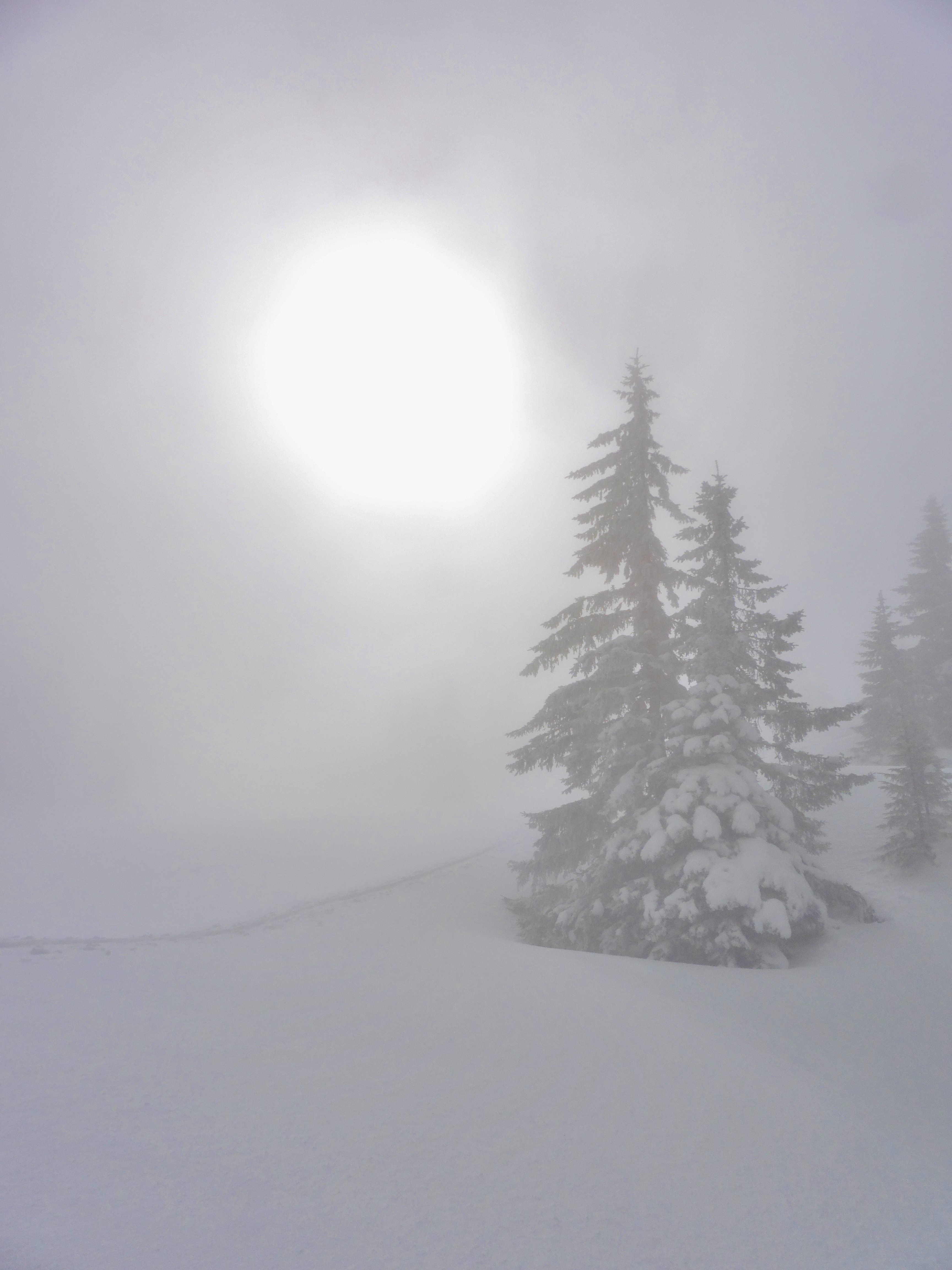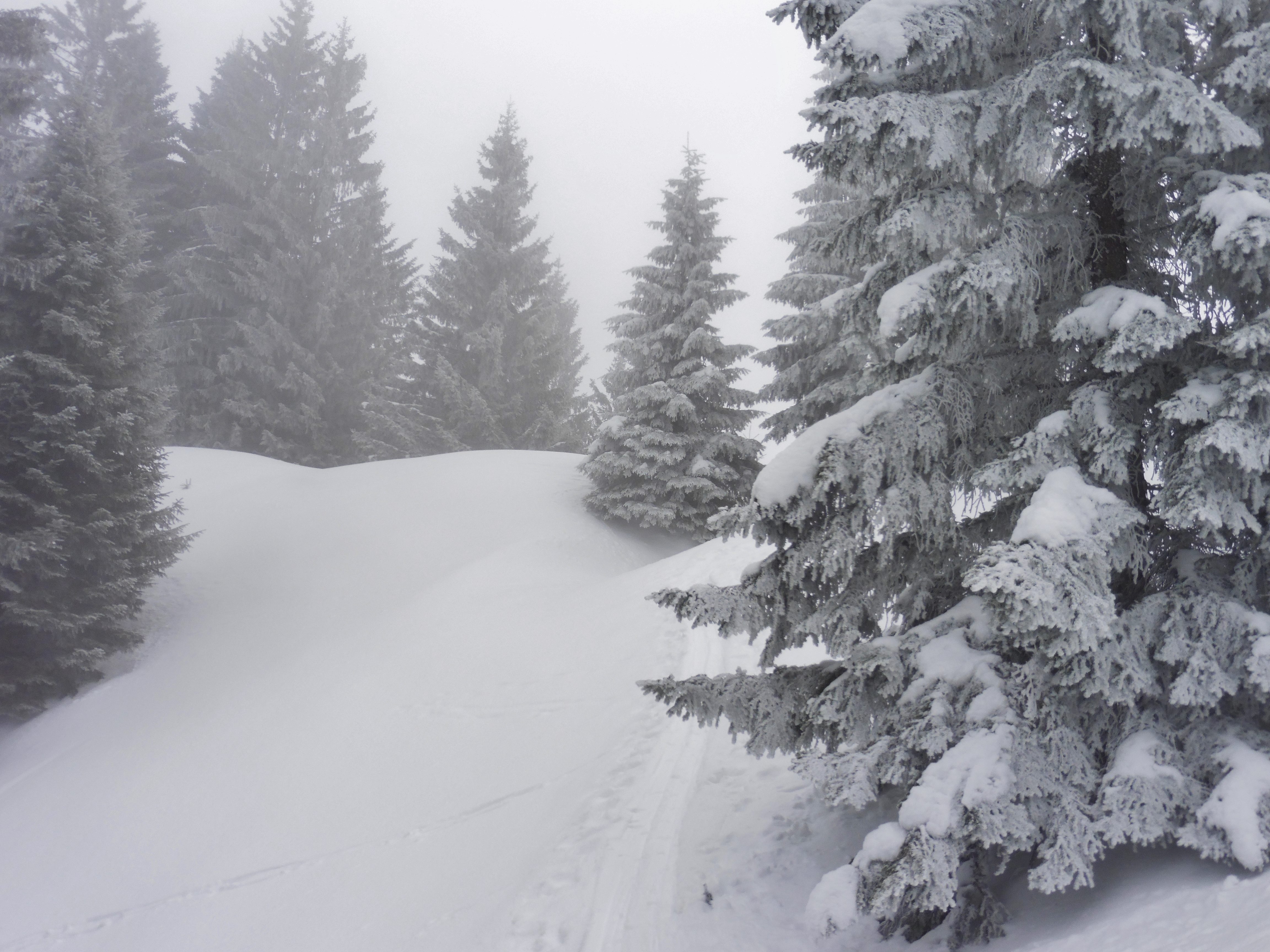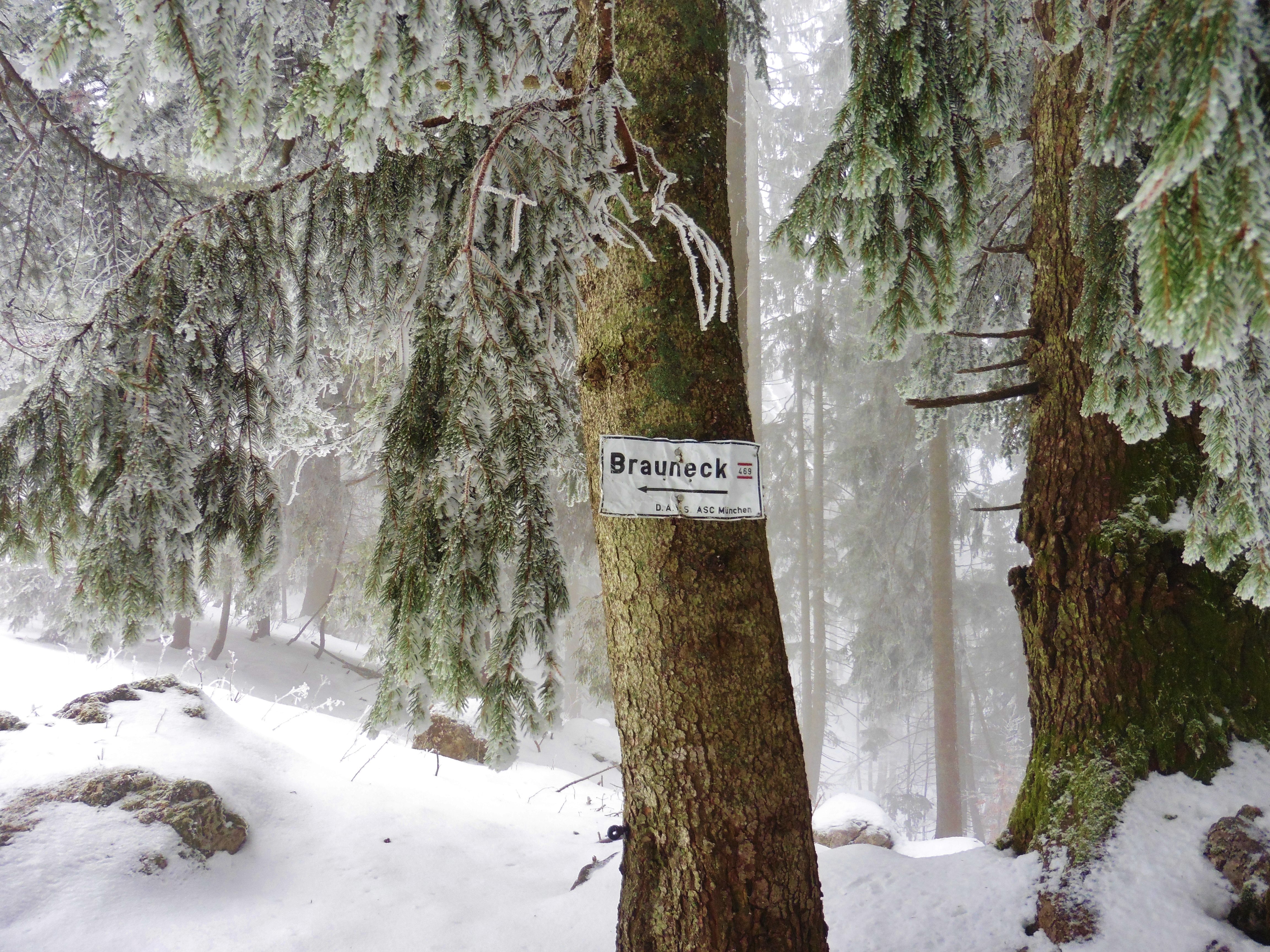 Sonstiges: vom Parkplatz auf dem Weltcuphang bis kurz vor der Reiseralm aufsteigen; die Piste nach rechts auf einen deutlich erkennbaren Forstweg ( gelbe Tafel: Längental) verlassen; dieser Weg umrundet etwas langatmig das ganze Massiv bis auf die Nordseite; da es viele Verzweigungen gibt, muss auf die Hinweistafeln "Brauneck" geachtet werden; durch den Branntweingraben zuerst durch lockeren Wald, später über einen freien Steilhang zur Logham Alm, resp. Tennen Alm hinauf; den Almkessel durchqueren und über einen weiteren kurzen Steilhang zum Grat - Schrödelstein / Stangeneck; bei dichtem Nebel - wie heute - ist die Orientierung nicht immer einfach; die Abfahrt erfolgt auf derselben Route; auf dem untersten Teil der Forststraße musste ich aufgrund der tageszeitlichen Erwärmung die Skier ca. 15 Minuten tragen;