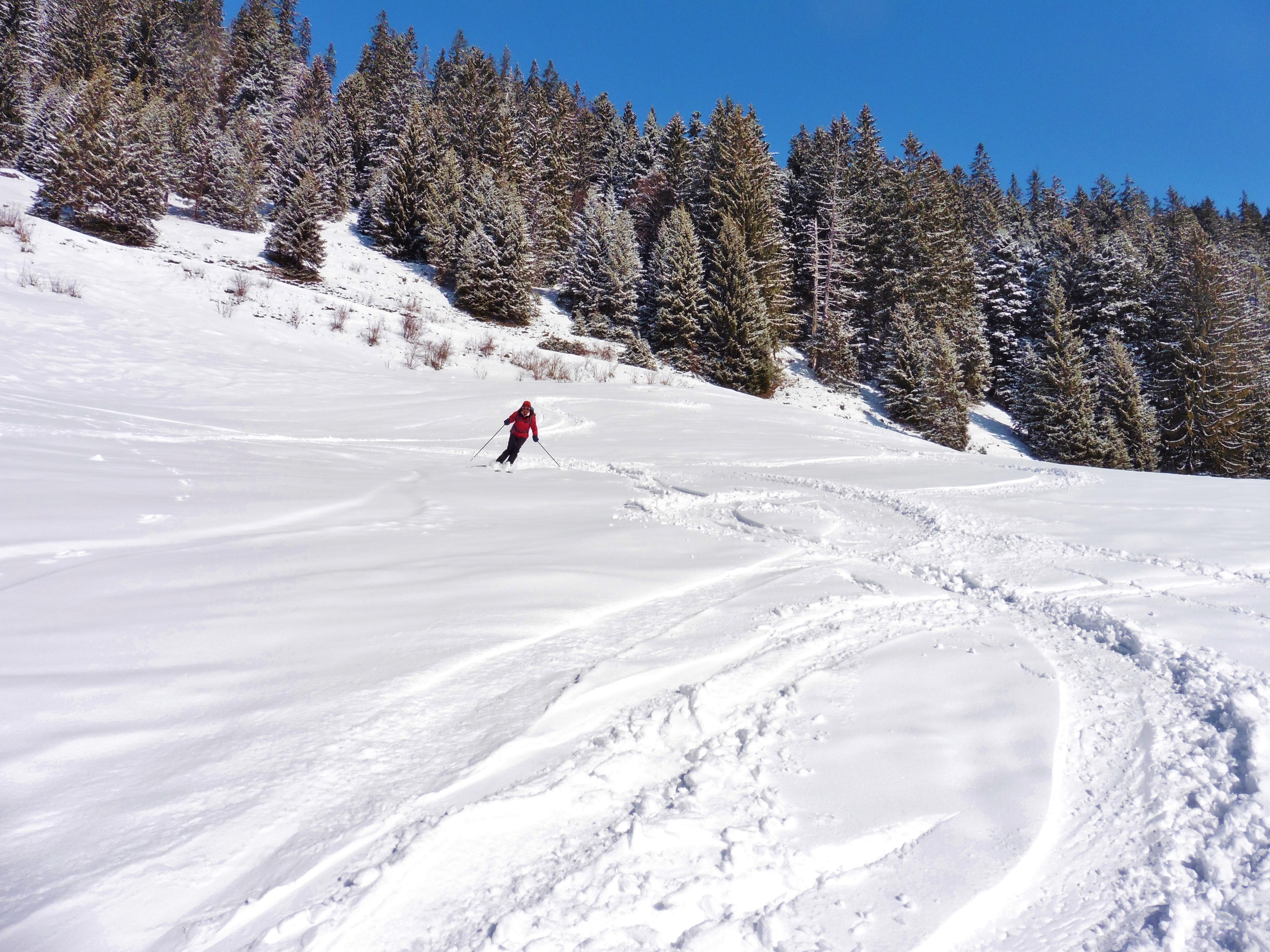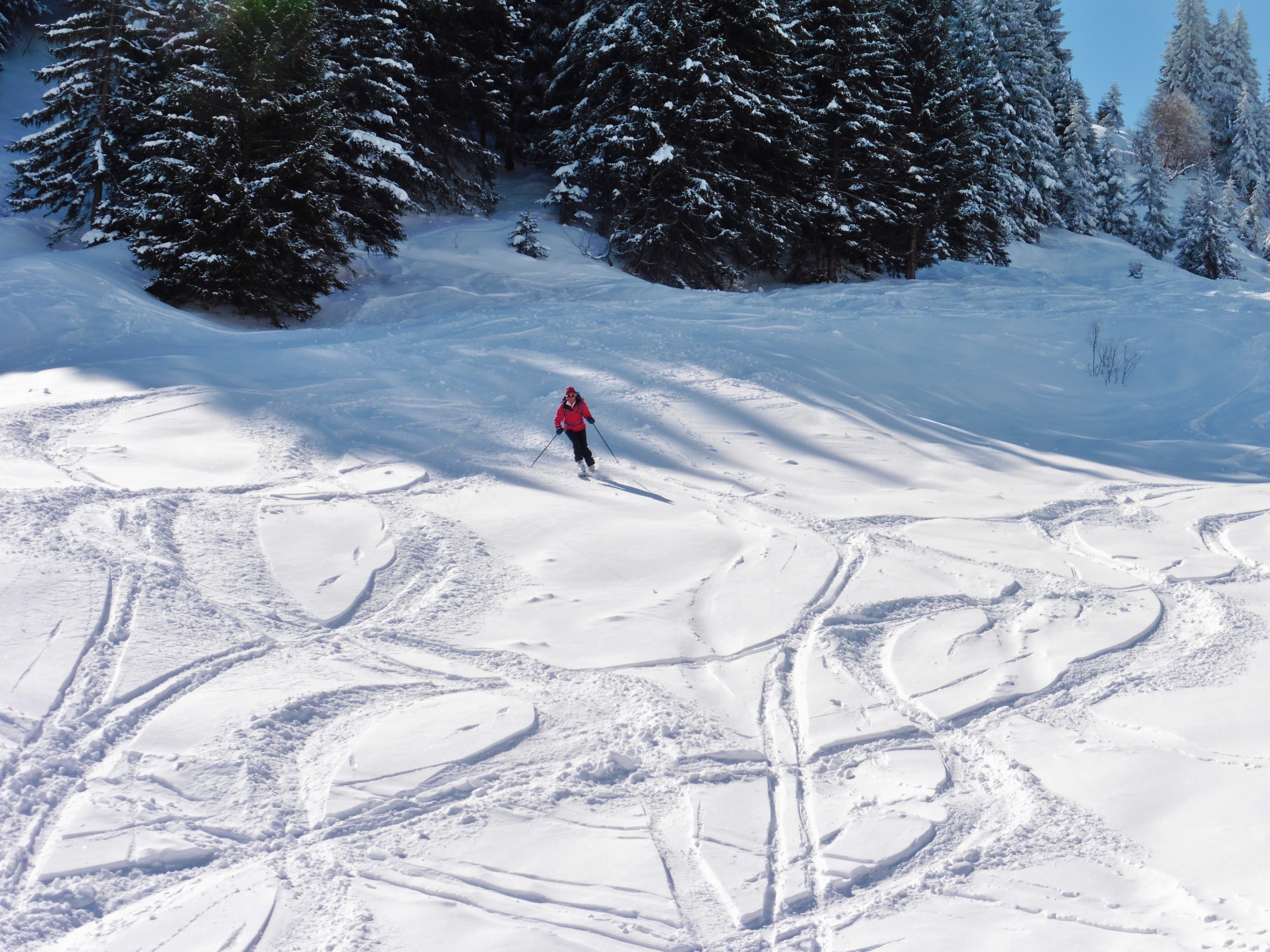 Tourenverhältnisse: frühmorgens und vormittags ausgezeichnet; ca. 10 cm Neuschnee, der in freien Lagen durch starken Wind verfrachtet wurde;