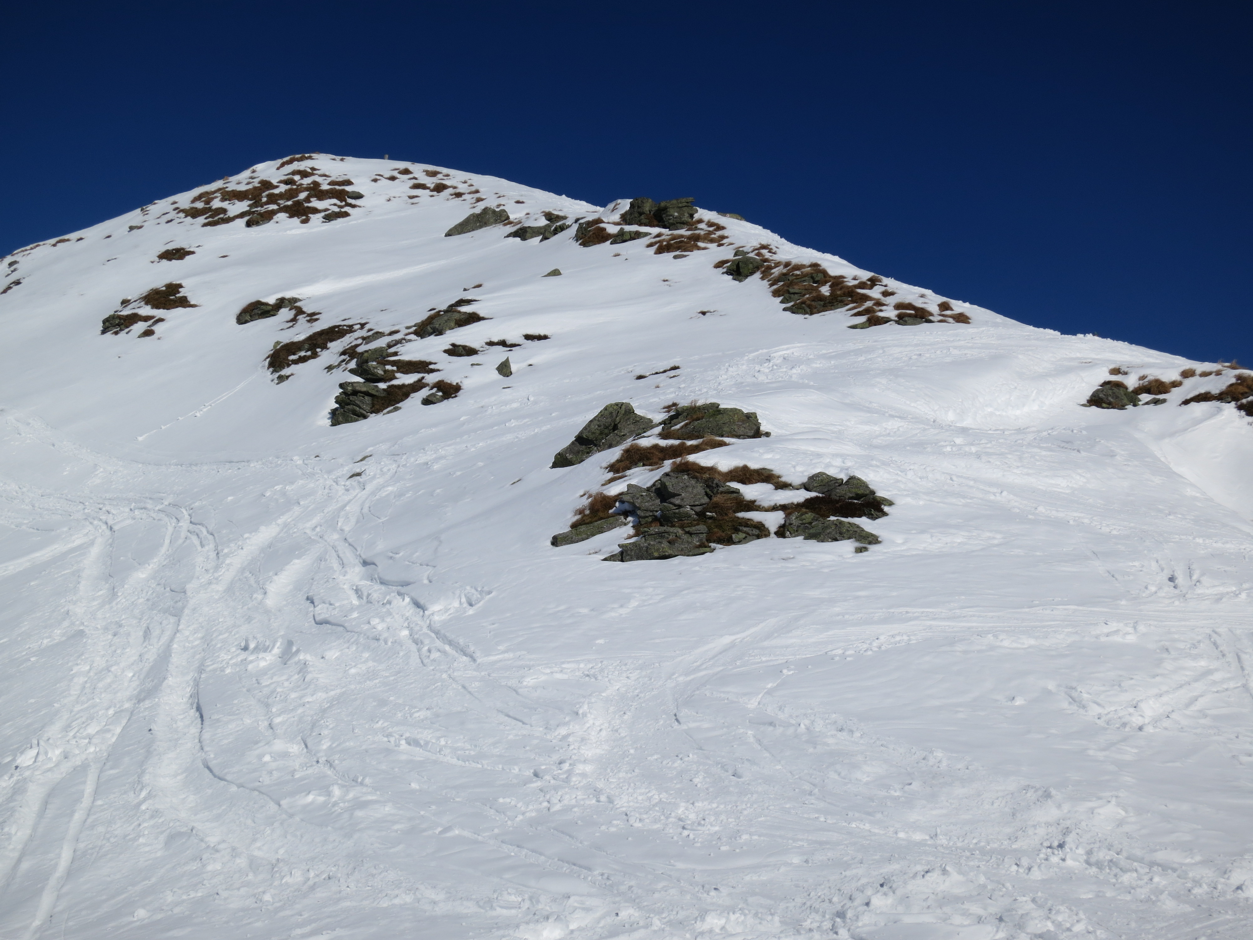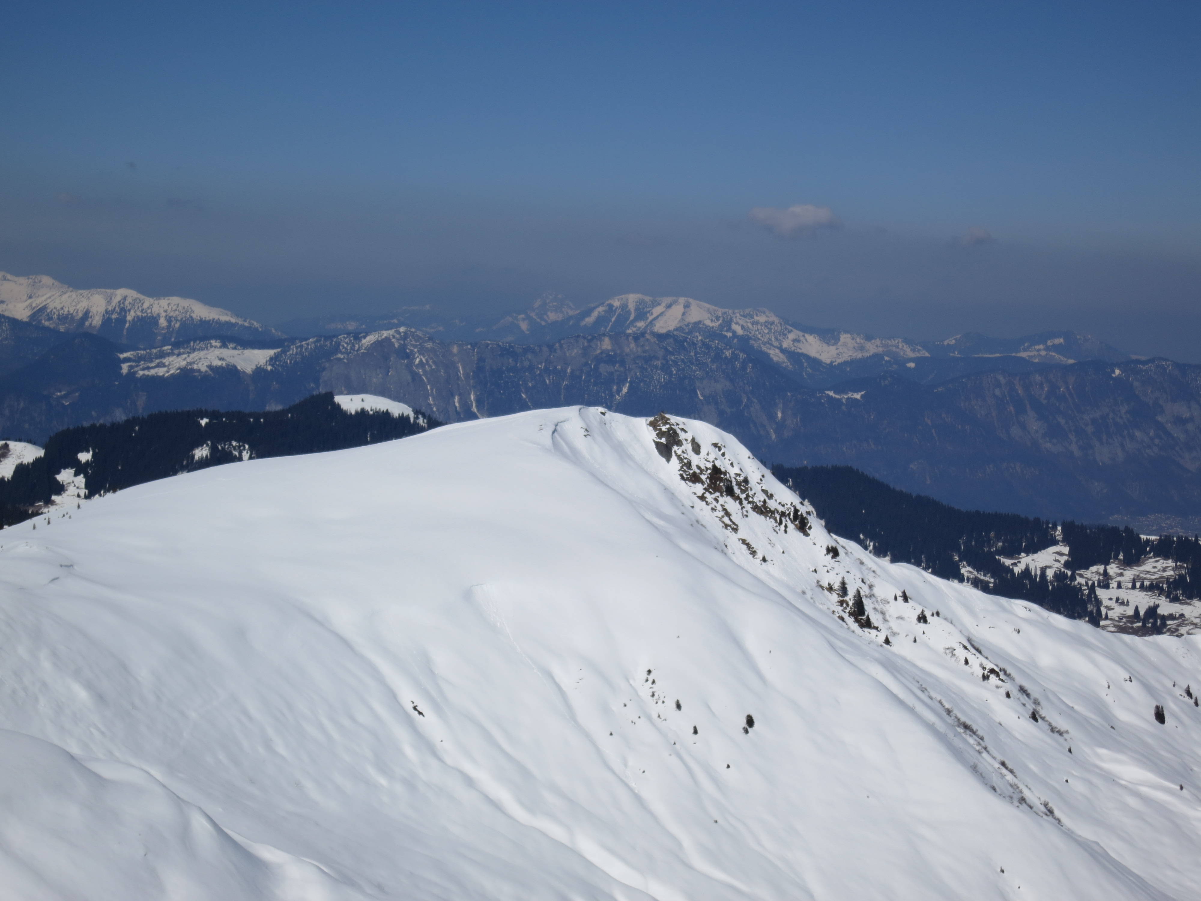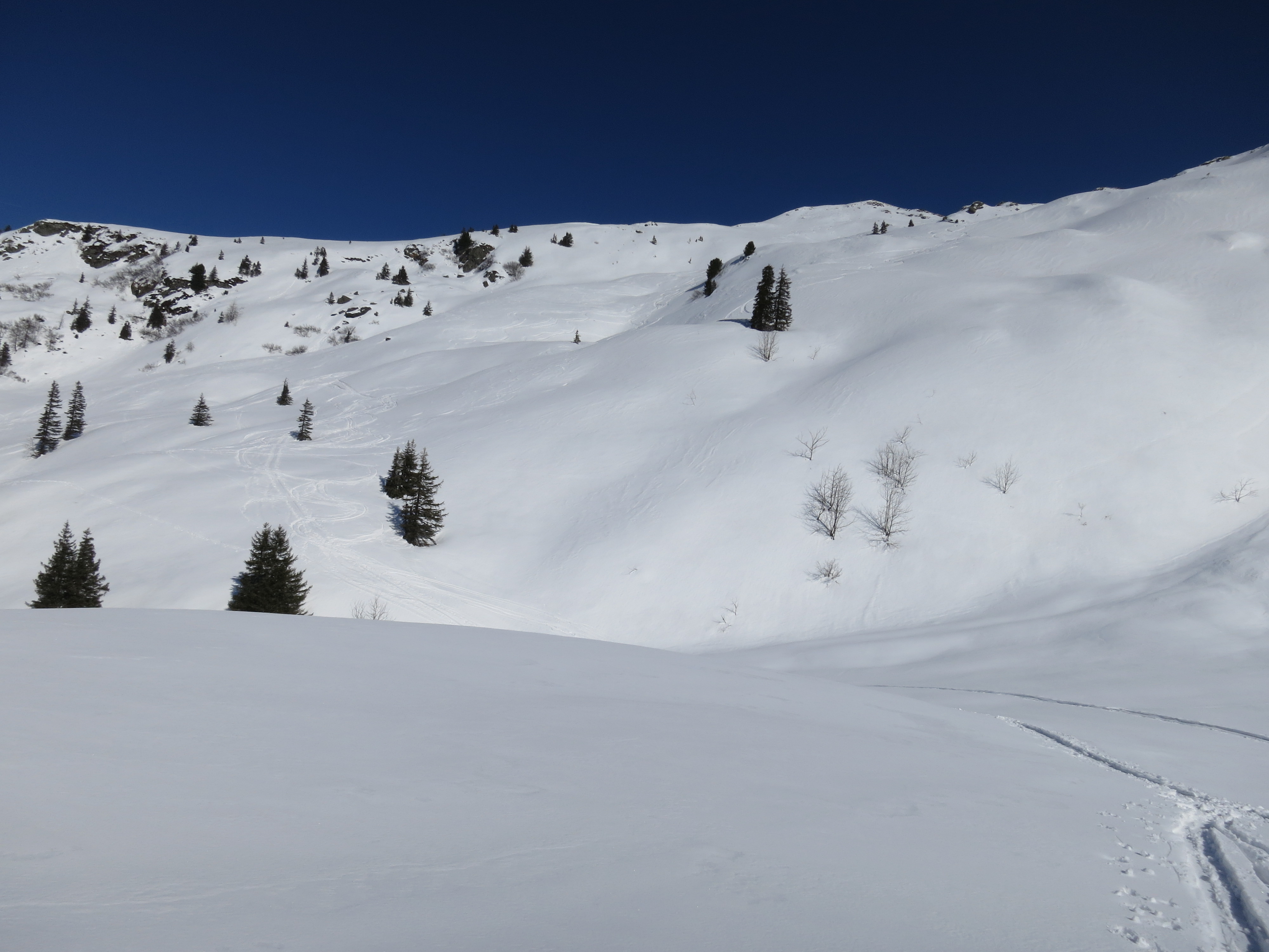 Tourenverhältnisse: recht gut. Von der Brücke über eine geräumte Fahrstraße und weiter durch den Wald zur Koberalm. Ab hier über freies Gelände zum Gipfel. Abfahrt in etwa der Aufstiegsspur folgend zur Kober Alm. Weitere Abfahrt dann aber nicht in Richtung Wald, sondern nach Westen über baumfreie Hänge und kurzen Forststraßenabschnitten bis zueiner Furt am Parkplatz beim Weiher (den sollte man gleich für den Aufstieg vorsehen). Nun ca. 1 km zum Parkplatz an der Brücke. Schneeverhältnisse: eigentlich alles außer Bruchharsch (den hatte die Sonne schon aufgeweicht)