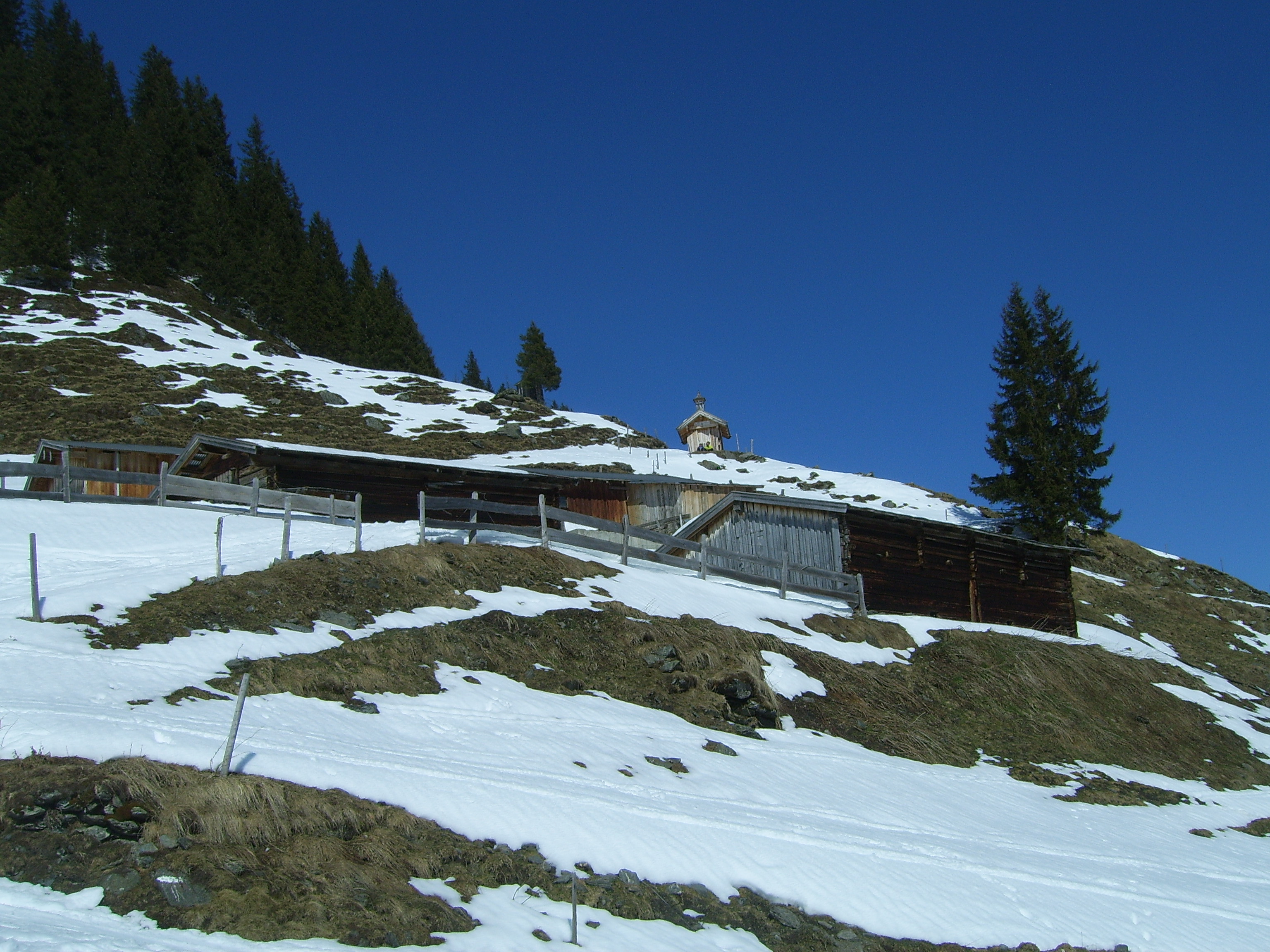 Sonstiges: bei der Zufahrt zur Erla-Hütte ist schon viel schneefrei; jedoch ist auch noch einiges an eisigen Spurrillen vorhanden