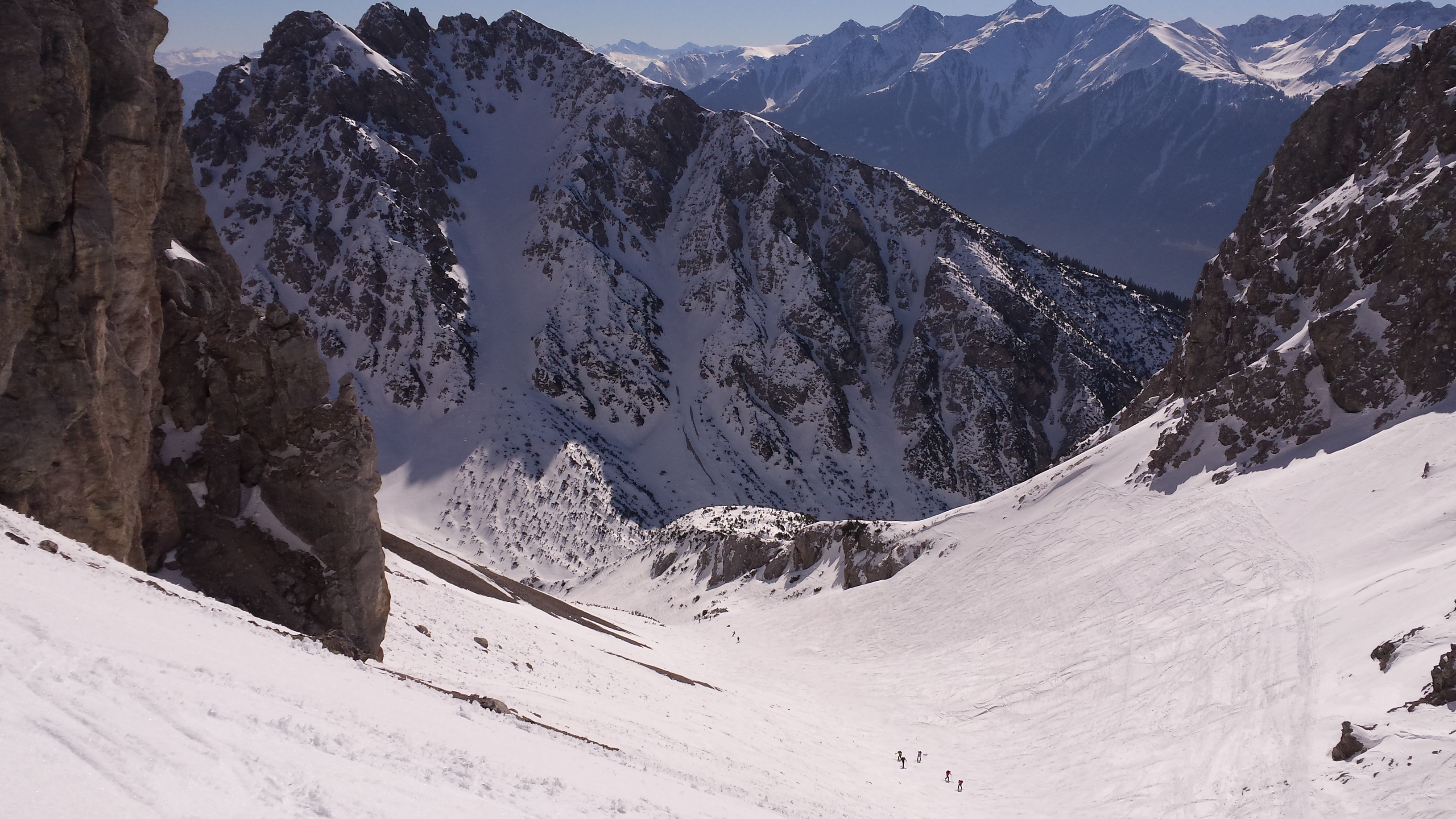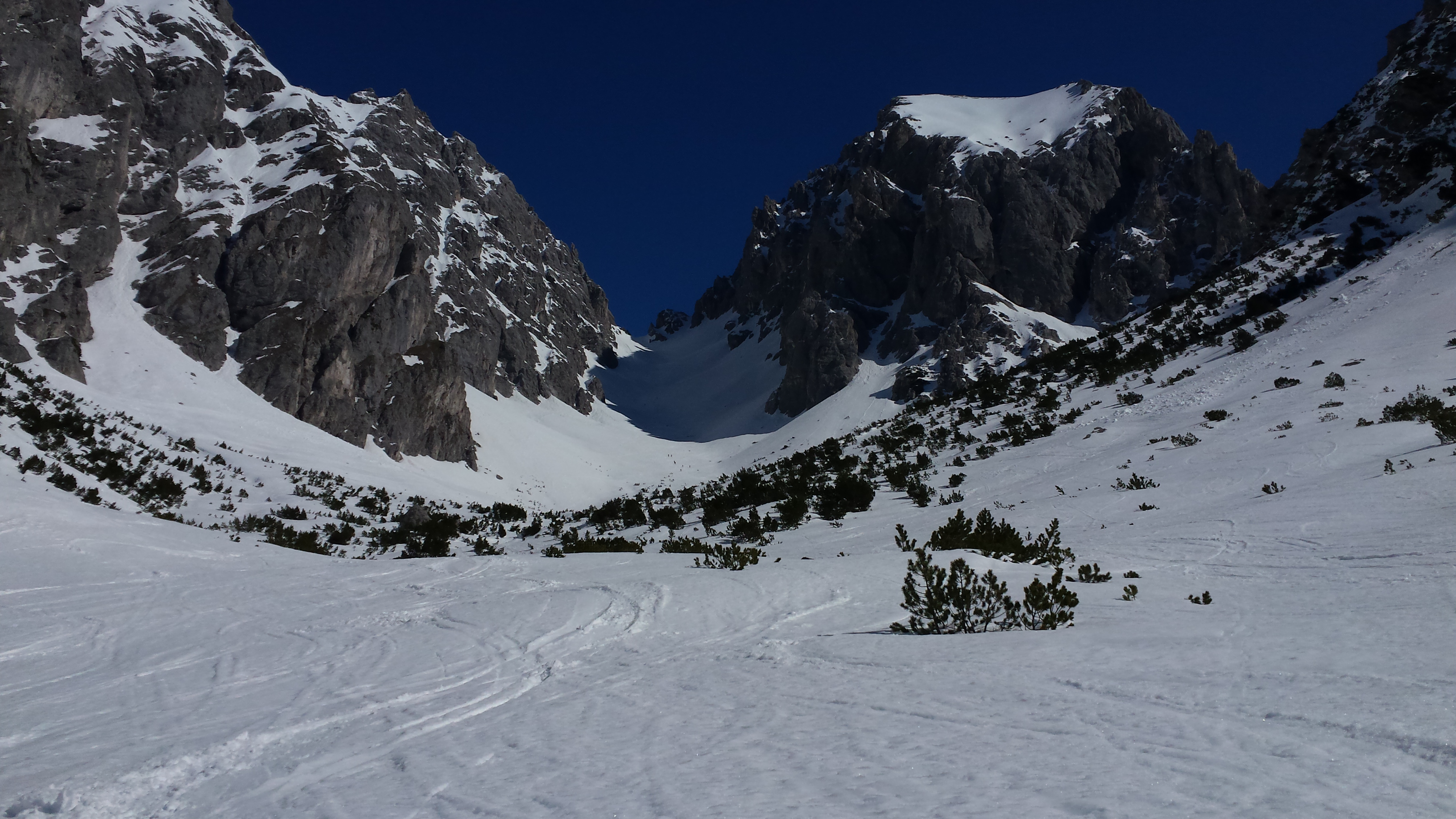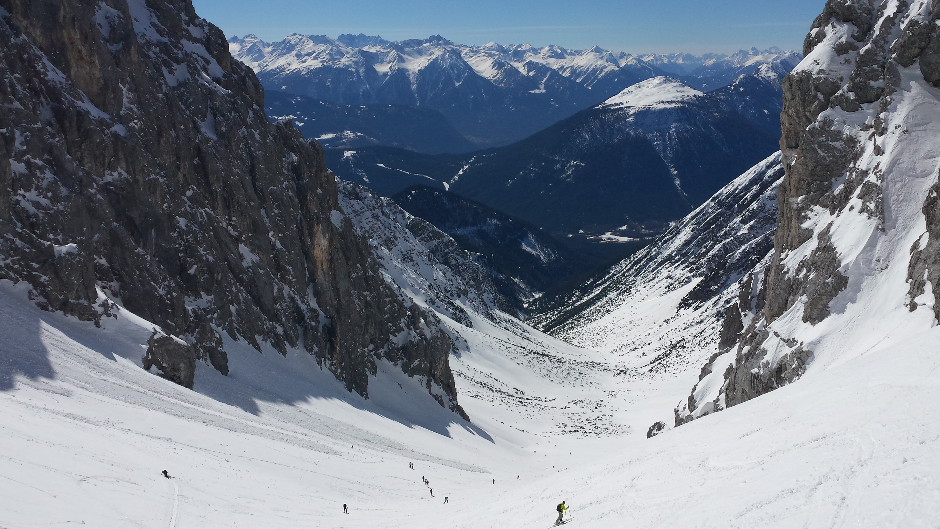Tourenverhältnisse:Mit dem Lift ins Marienbergjoch und weiter bis zur Hölle. Südseitige Abfahrt bei super Firn. Unbedingt noch weiter in Richtung Obsteig fahren und nicht gleich nach Links zur Höllreise queren. Es lohnt sich bei entsprechendem Firn. Aufstieg zur Grünsteinscharte und Abfahrt zum Drachensee. hier leider schon sehr viele Spuren und der Schnee ist zwar noch pulvrig aber etwas windbeinflusst. Letzter Aufstieg ins Tajatörl. Abfahrt wie vorher, etwas windbeinflusst und schon viele Spuren. Besser in die nächste Scharte in Richtung V.Tajakopf gehen und dort abfahren. Nun im Abfahrtssinn rechts runter. Zwischen den Lärchen hat es noch lockeren Pulver. Den Rest über die Piste nach Ehrwald. Zurück mit dem Skibus.