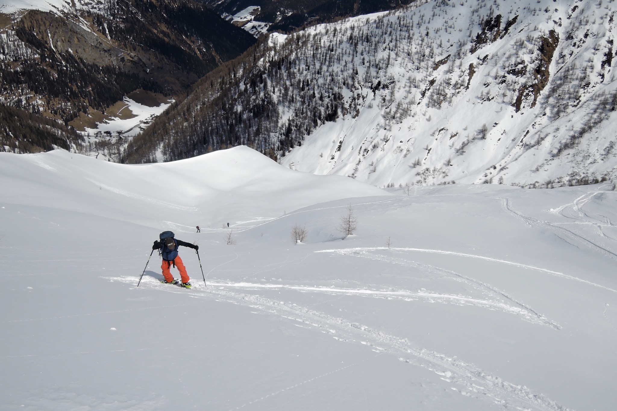 Tourenverhältnisse: Nachts bis zu 20cm Neuschnee, oft pulvrig, in exponierten Lagen leicht windgepresst, unten zum Alfenbach hin sulzig