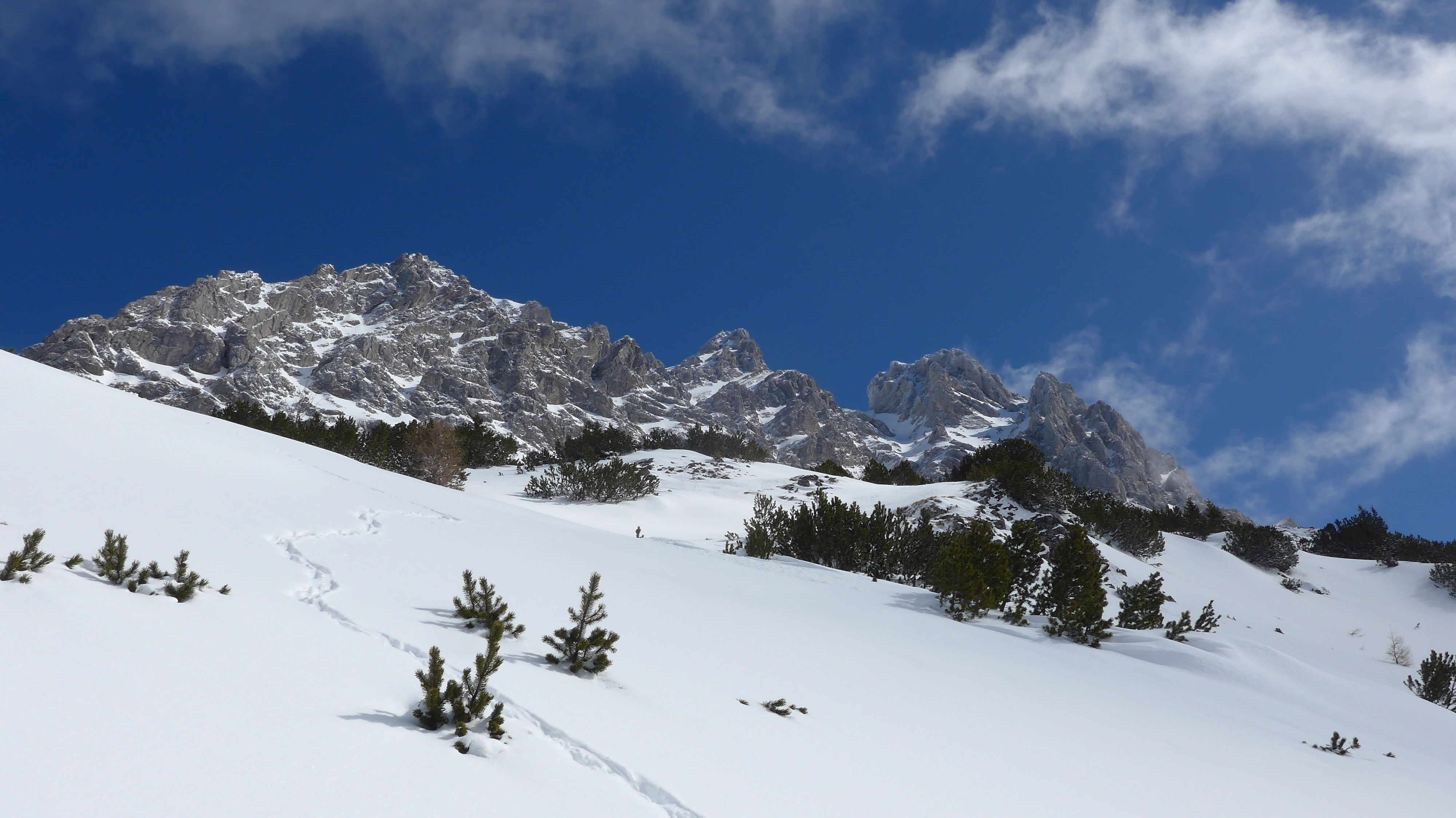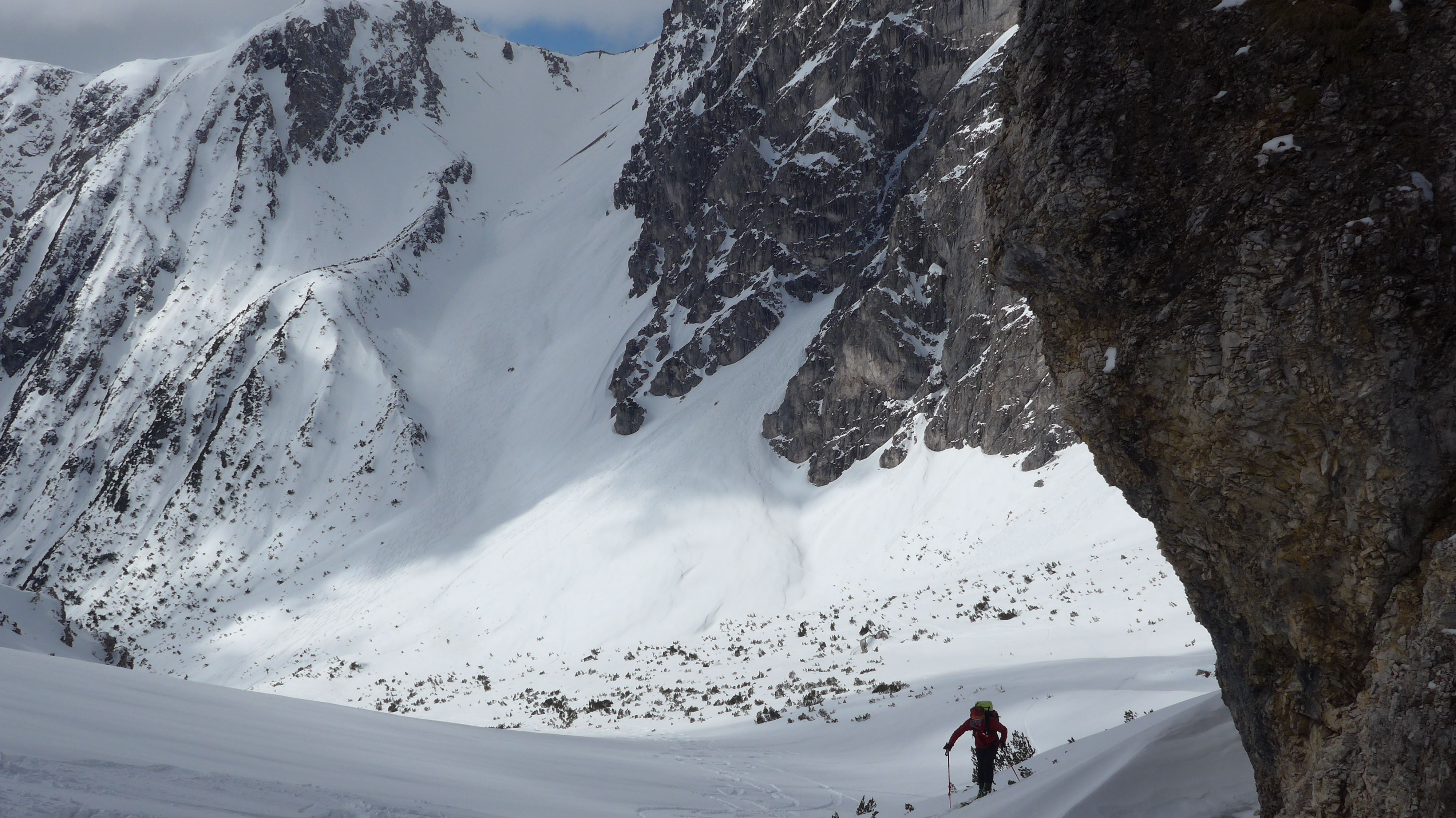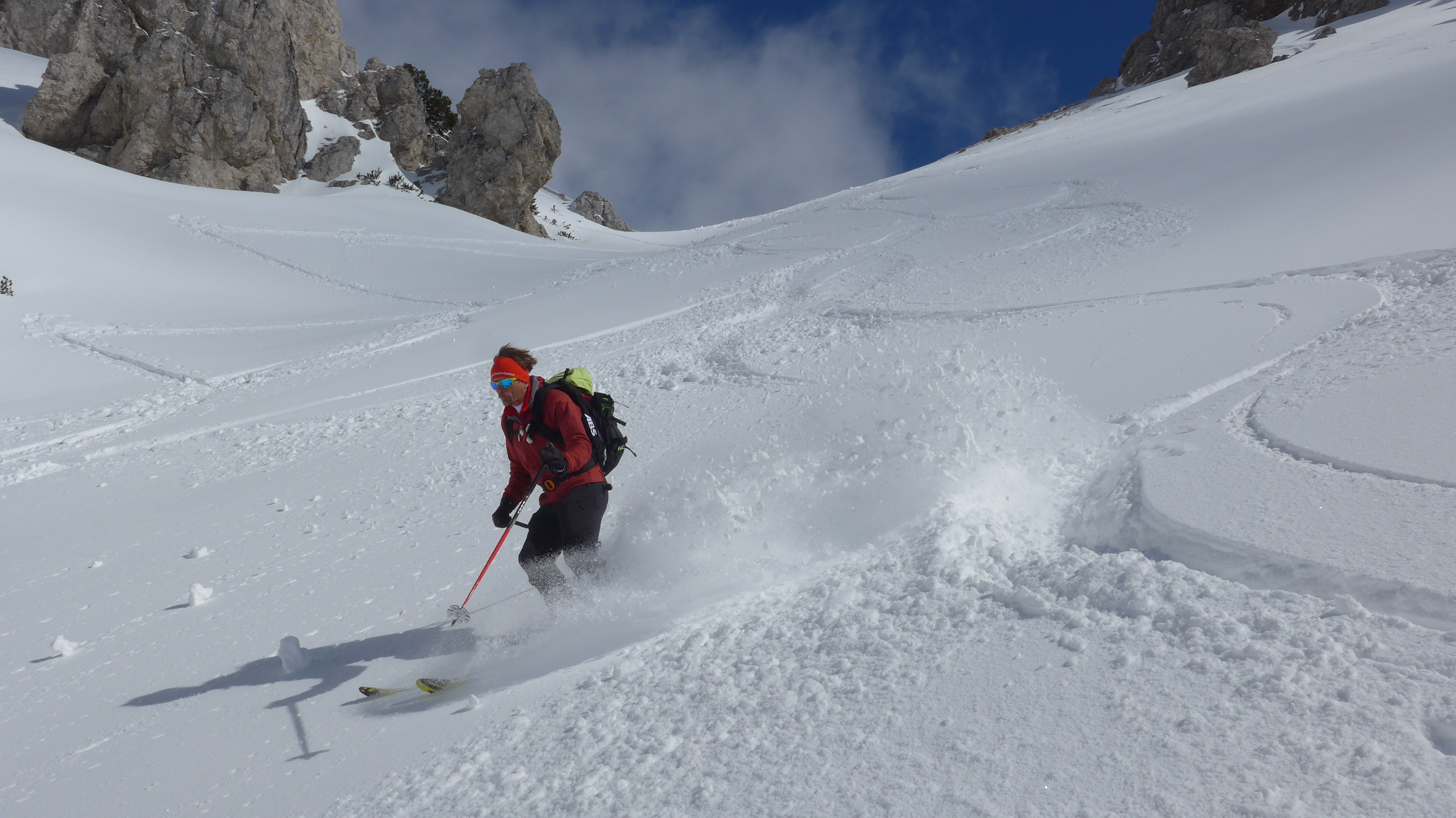 Aufstieg Höllreise wie im Backofen - windstill. An der Grünsteinscharte sehr starker Wind kalter Wind bis zum hint. Tajatörl. Kurze Abfahrt im Pulver.