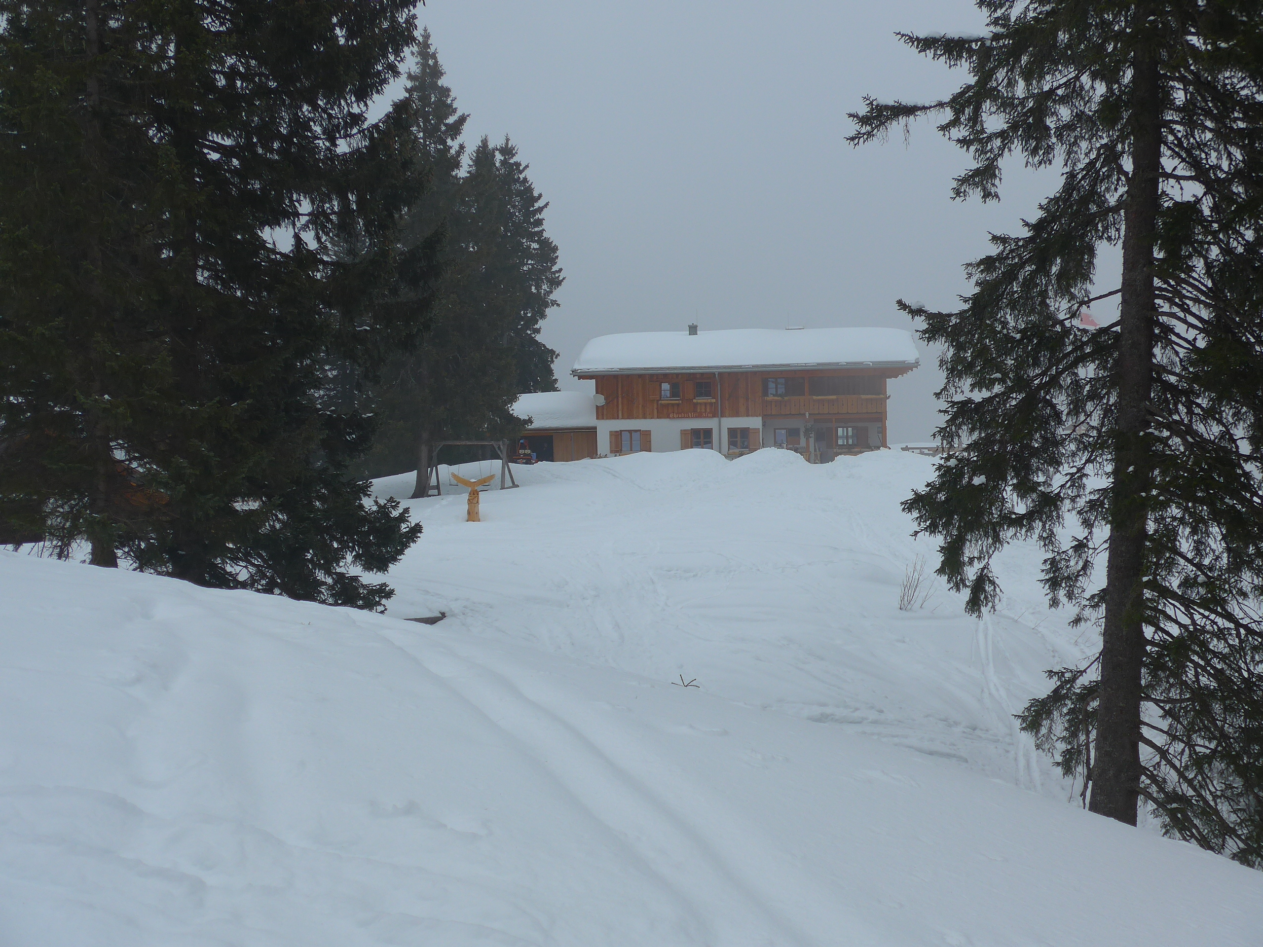 Tourenverhältnisse: Forstweg gut gangbar, genug Schneeauflage durch Waldschneisen. Ab Ehenbichler Alm viel Nebel, Sicht teilw. 10m. Abfahrt auf teilw. Pulver und härterem Schnee, aber noch ganz gut bis Ehenbichler Alm. Durch Schneisen teilw. abgefahren.