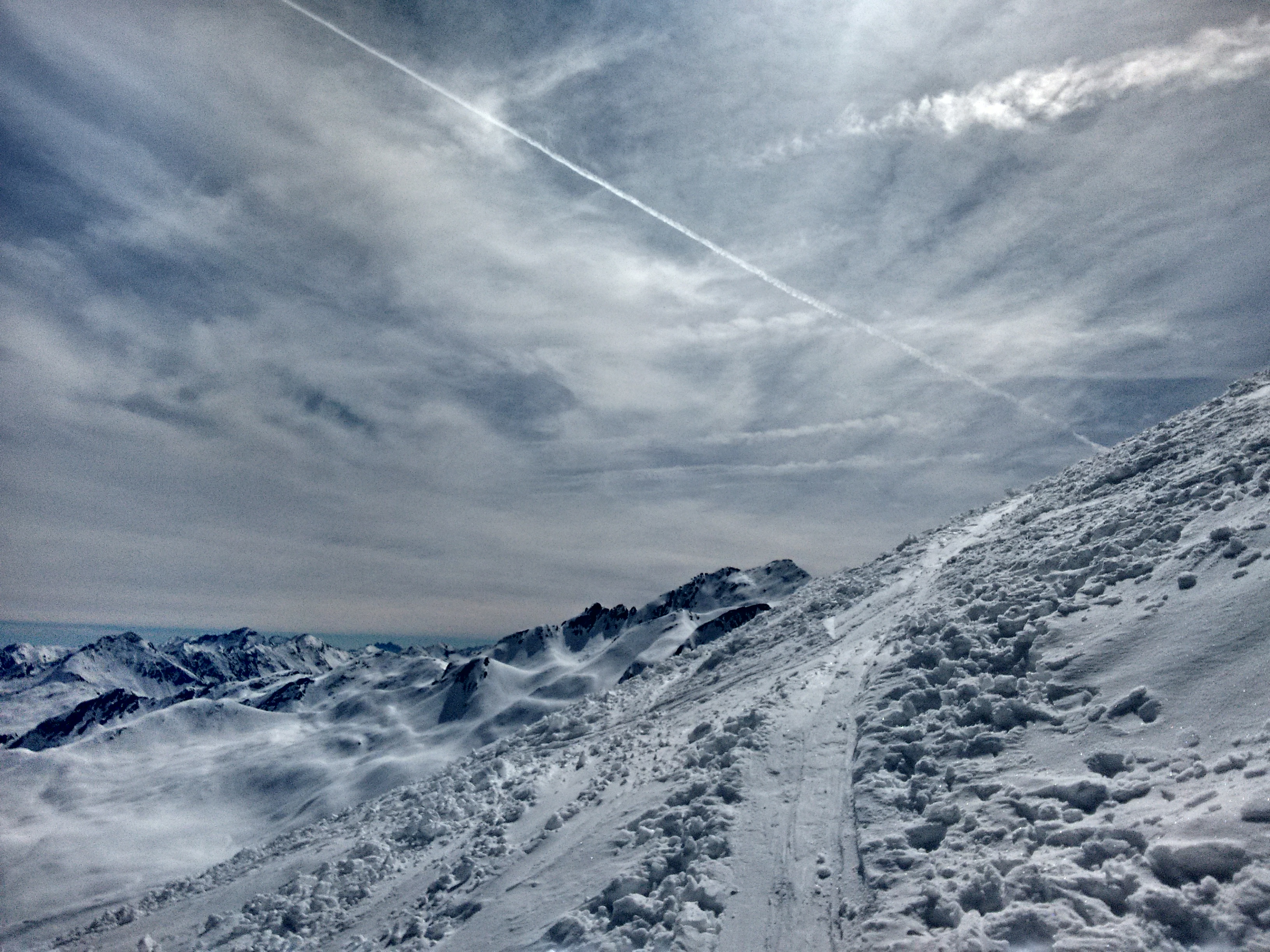 Tourenverhältnisse: vom Schnee her, sehr gut, Wetter für die ersten drei, starker Wind. Für die Hohe Kreuzspitze super Wetter und Schnee