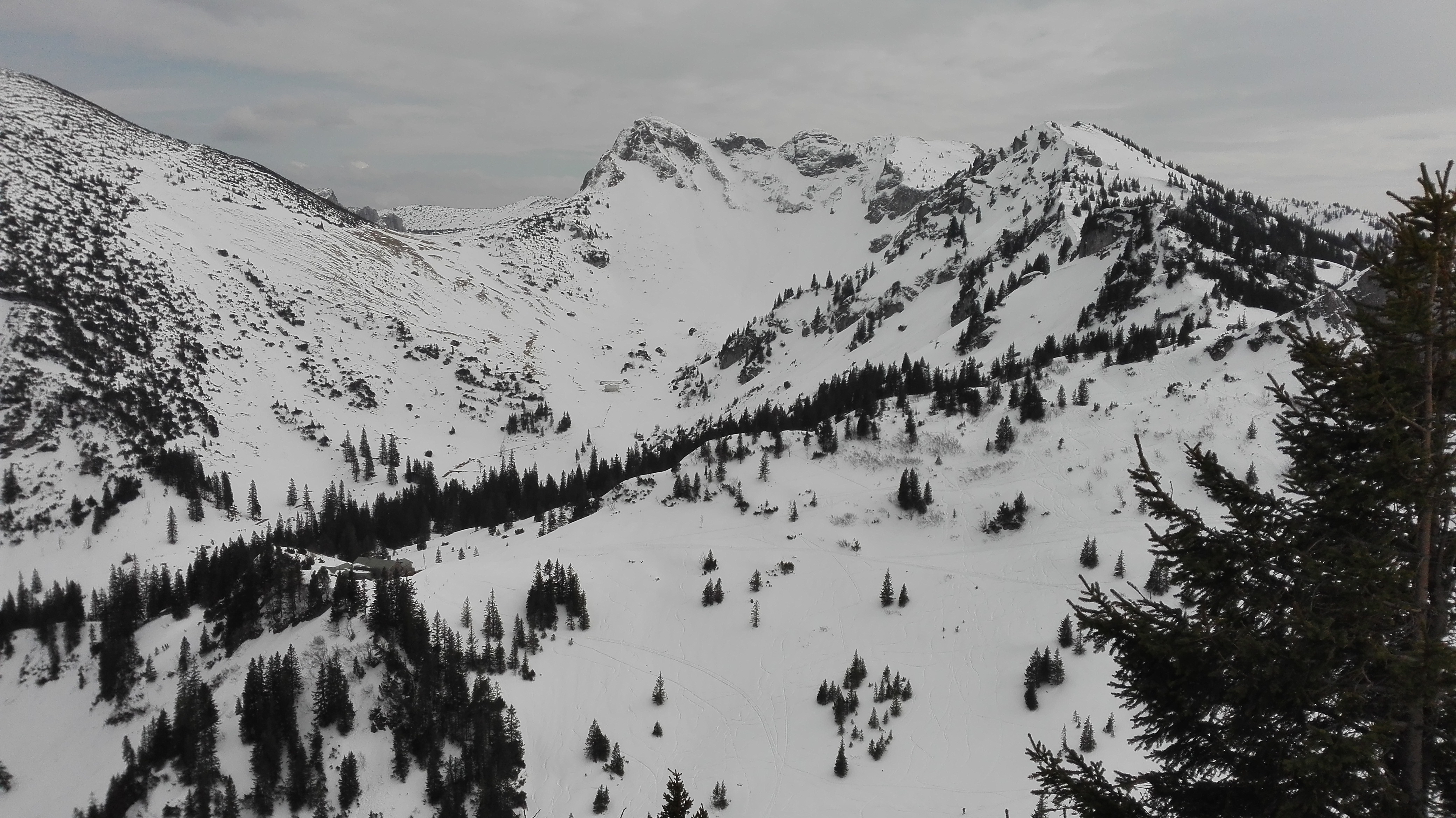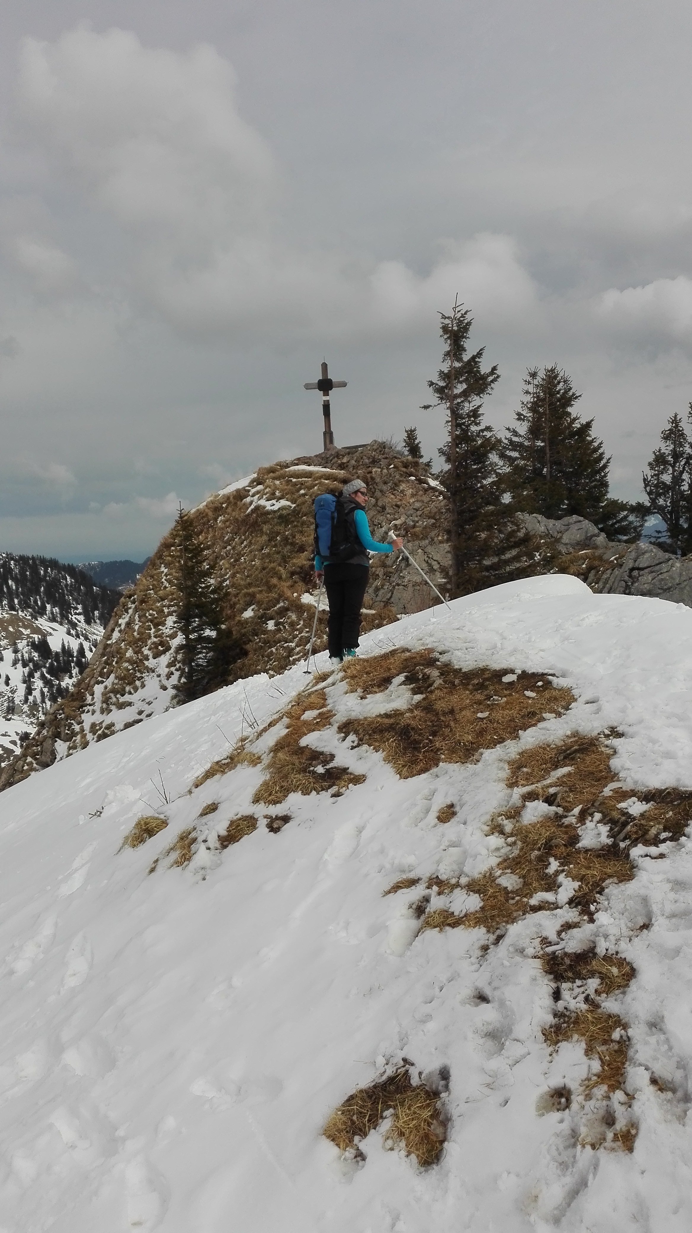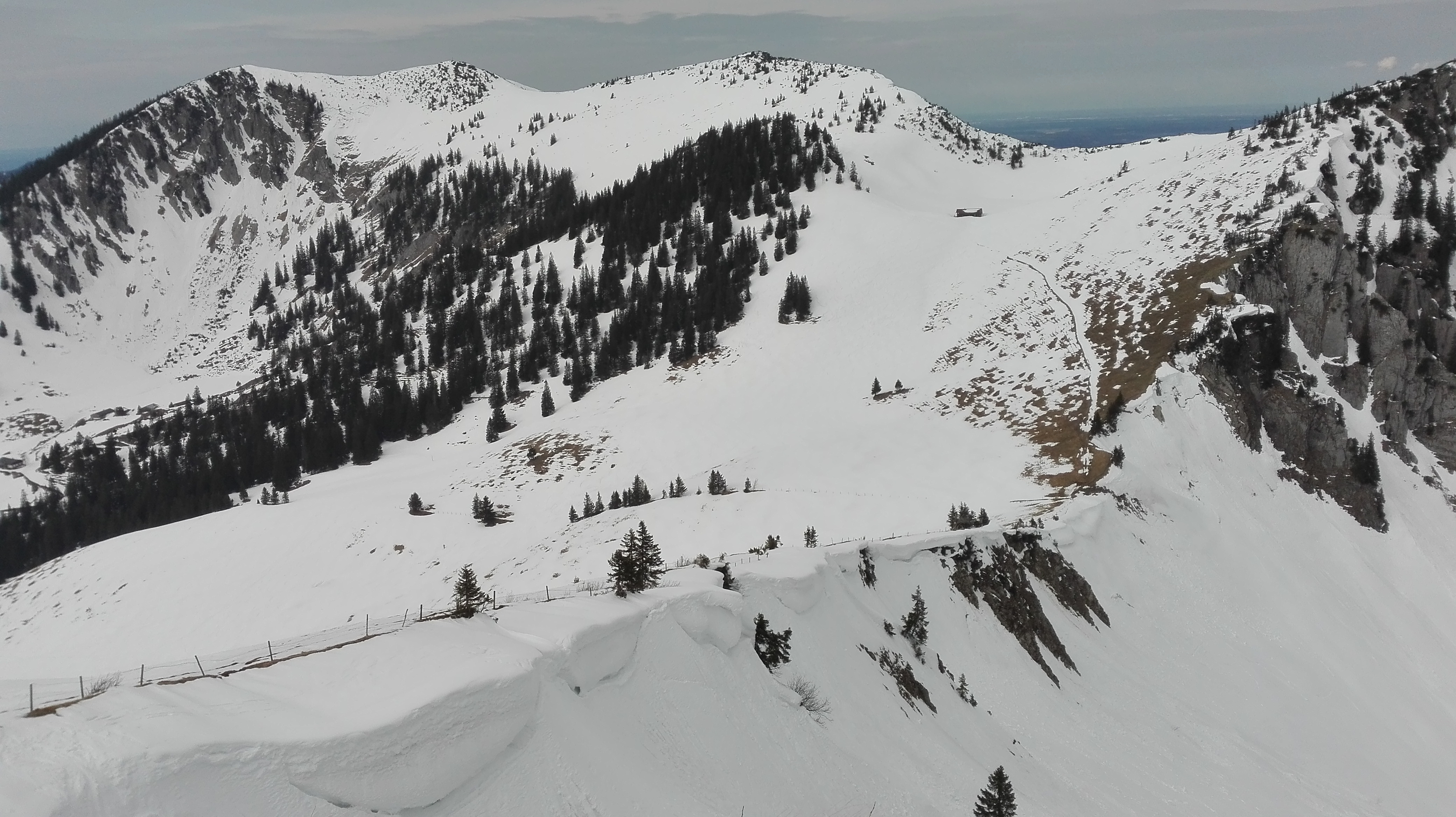Tourenverhältnisse: Vom Parkplatz durch den Unteren Lochgraben und über den NW-Hang des Rauhkopfes zum Gipfel. Der Schnee im NW-Hang war schwer und stumpf. Im Unteren Lochgraben nachmittags Sulz und ganz gut fahrbar. Es liegt nach wie vor überall ausreichend Schnee.
