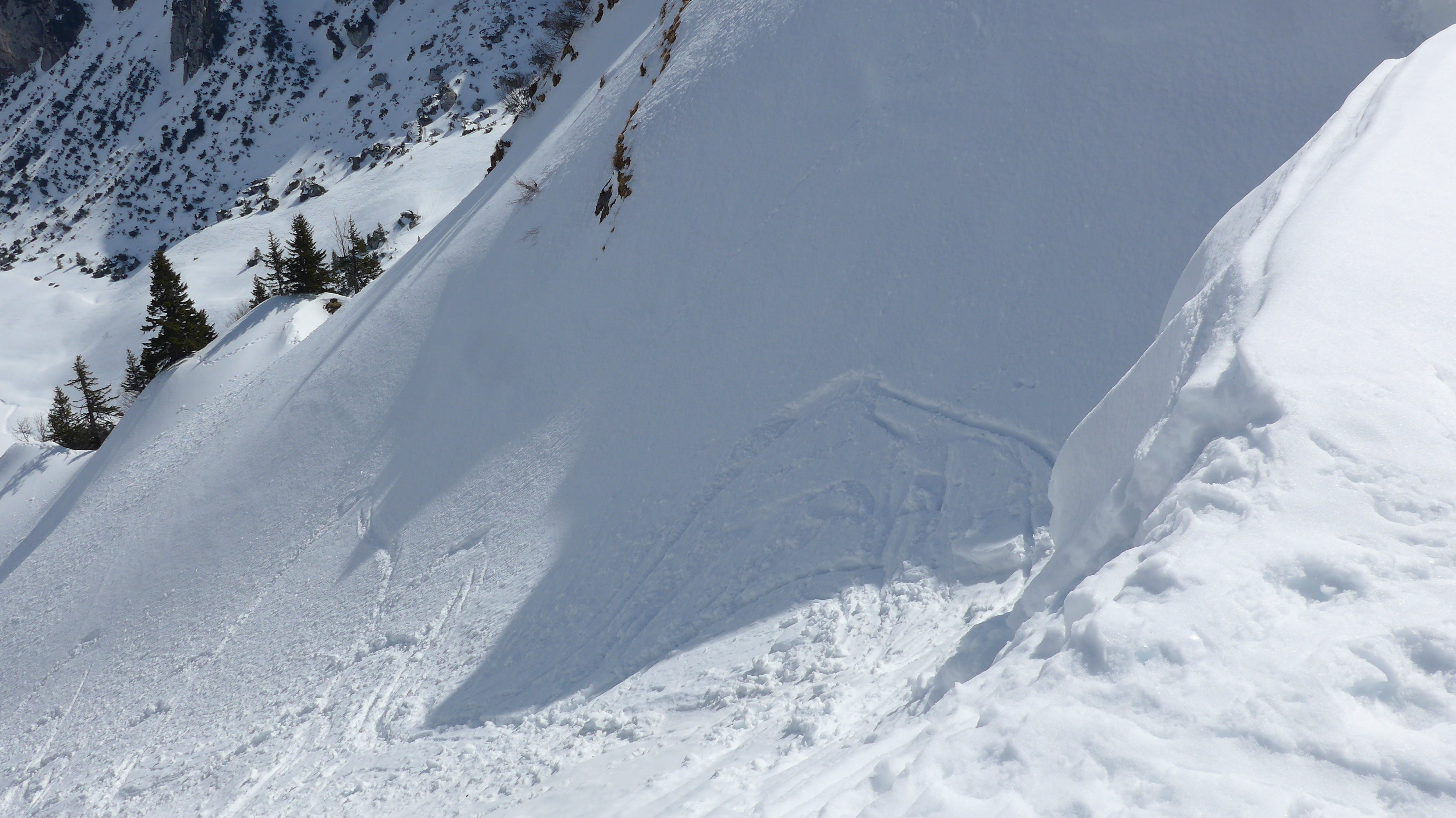Aus + neben den Nordrinnen sind Lockerschnee + Schneebrettlawinen abgegangen - älter.