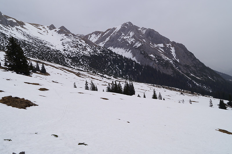 Die südseitige Abfahrt "Am Brand" hinunter ins Gaistal ging heute Mittag erstaunlicherweise gut, dafür war das Wannigkar am Morgen skifahrerisch nicht gerade der Hit.