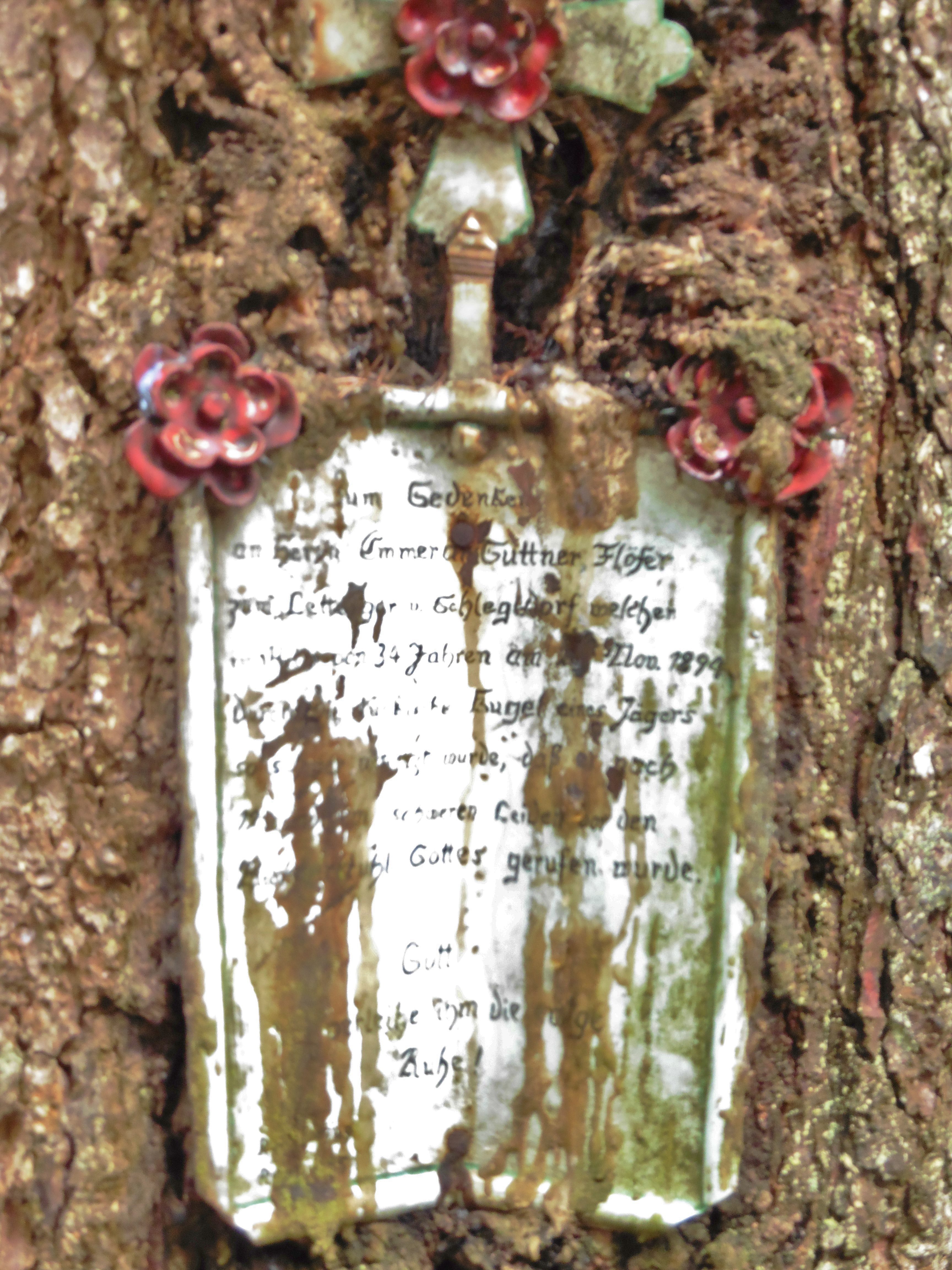 zu Bild 1: Marterl im Tiefental; Erinnerung an einen von einem Jäger im Jahre 1899 erschossenen Mann;