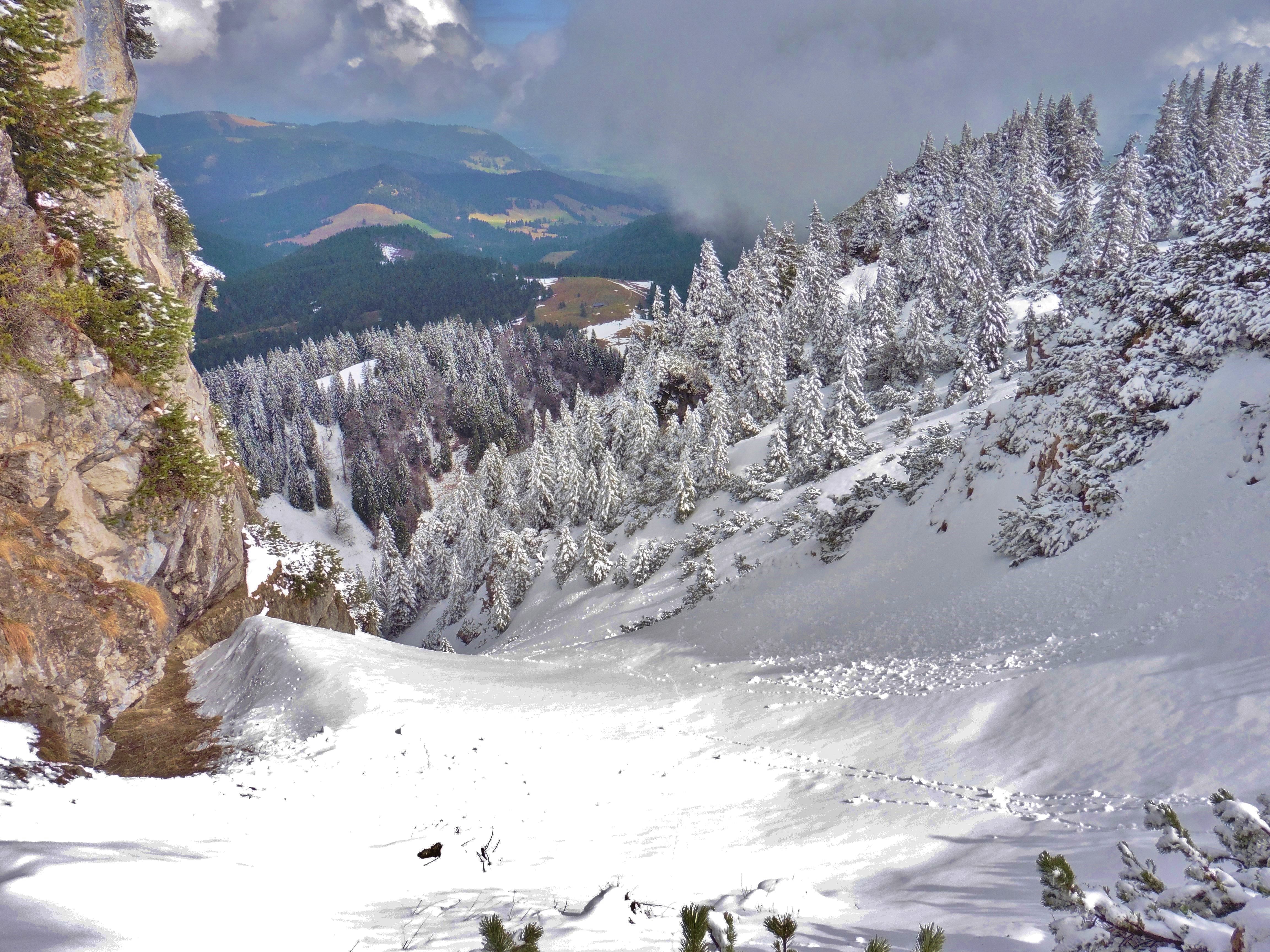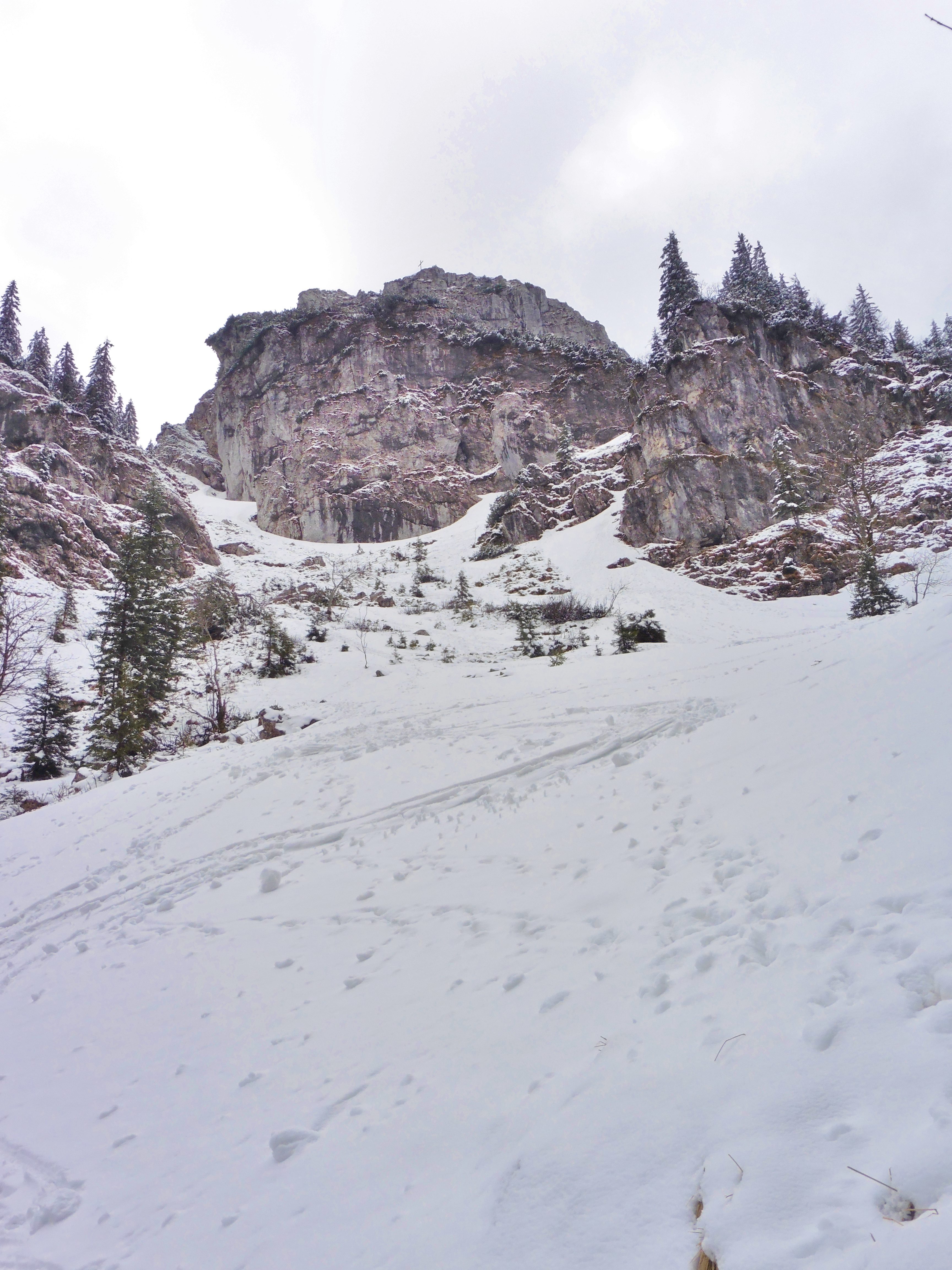 zu Bild 7: aufgenommen im März 2016; ganz links oben der Hennenkopf, links davon die Abfahrtsrinne;