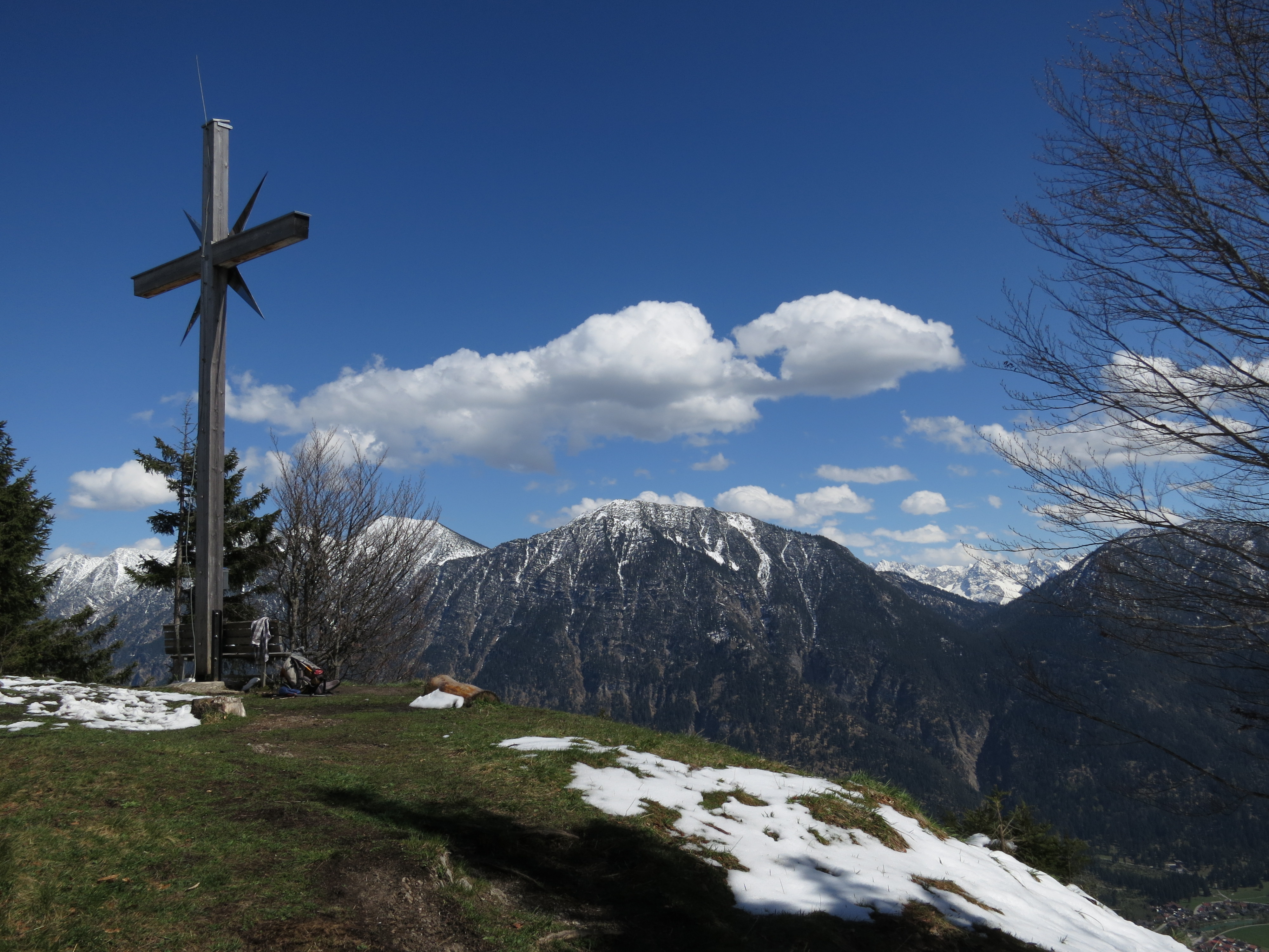 Tourenverhältnisse: perfekte Frühjahrswanderbedingungen. Der Aufstieg am markierten Weg hat nur im letzten 1/4 hindernislose Schneereste und insgesamt fast kein Batz; die steile Querung unterhalb des Gipfels war vollkommen trocken. Der unmarkierte Abstieg nach SW war auch problemlos zu gehen (seit dem letzten Schneefall ist da noch niemand gegangen). Man kommt dabei beim Giessenbach Wasserl an dem Verbindungsweg zur Notkarspitze raus und geht über Hint. und Vord. Ladstatt zum vom Aufstieg her bekannten Weg.