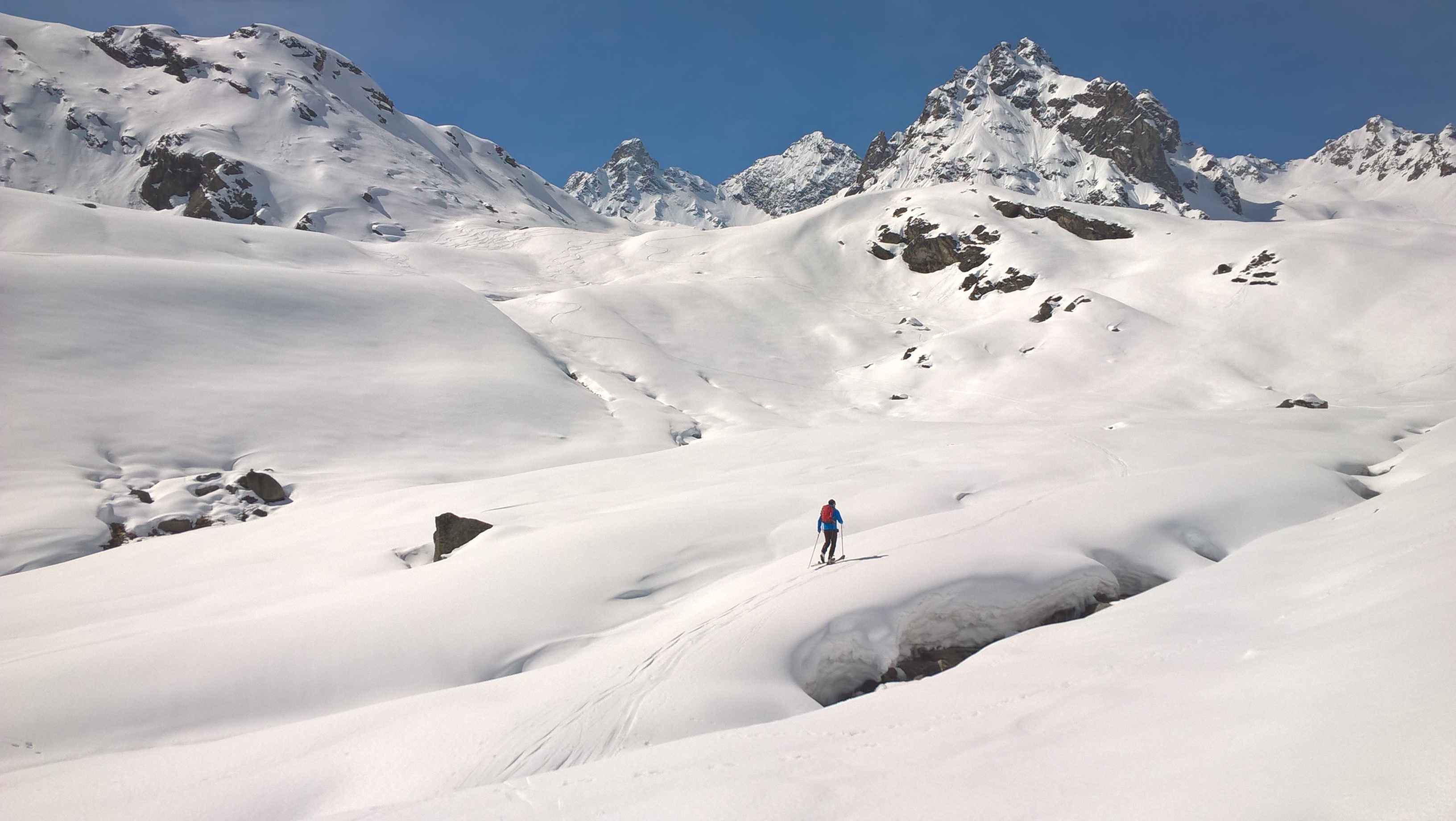 Erst im unteren Drittel dann fauler bremsender Schnee. Fazit: Tolle Tourenregion mit unglaublich vielen Möglichkeiten und dazu nicht überlaufen!