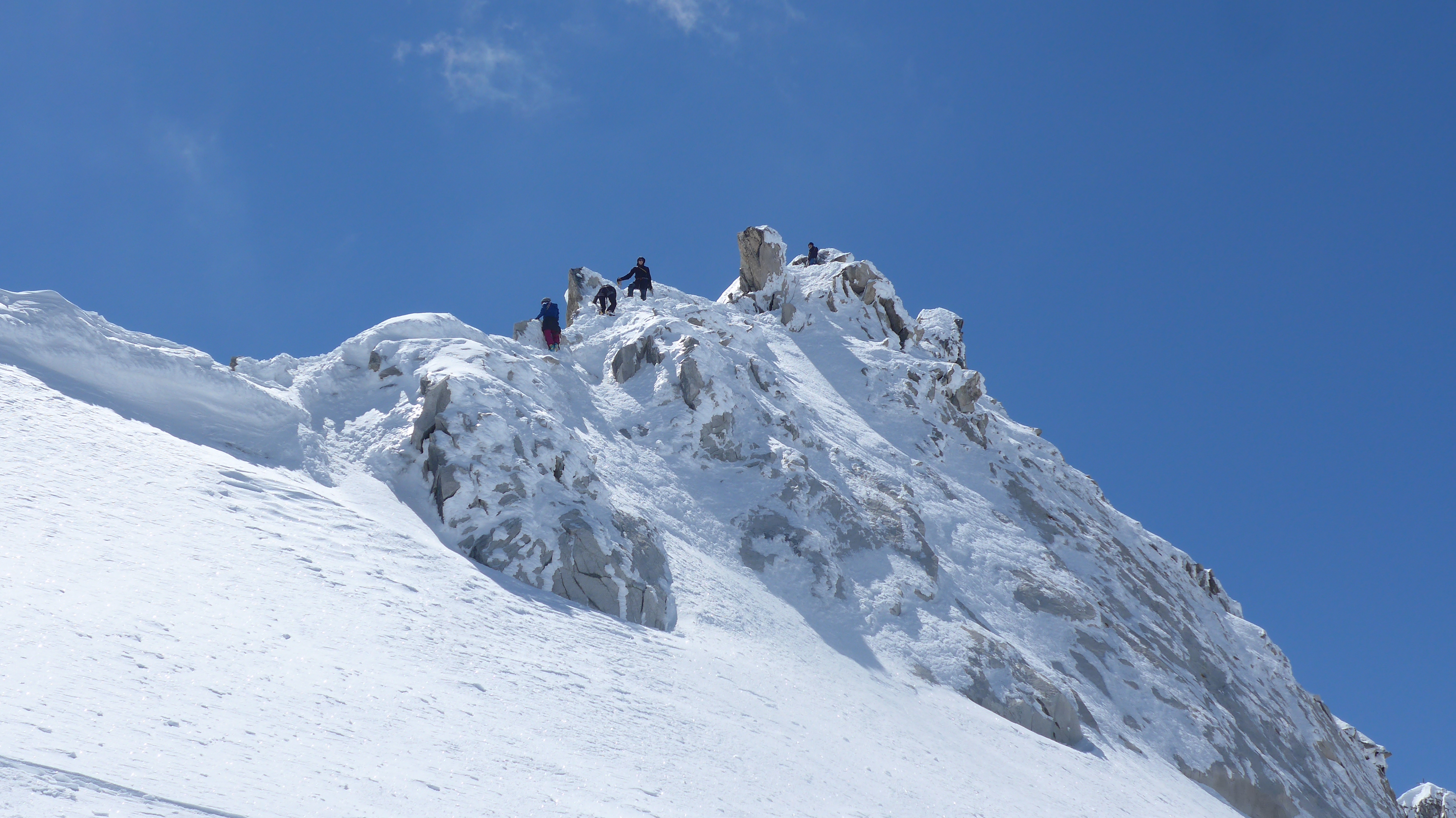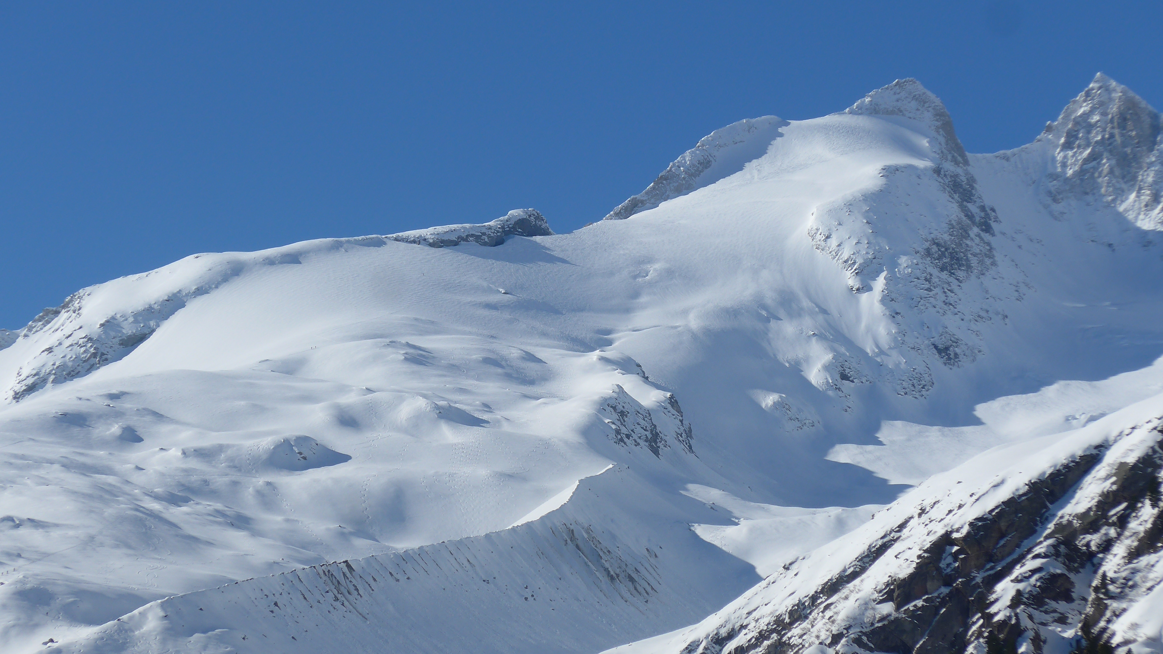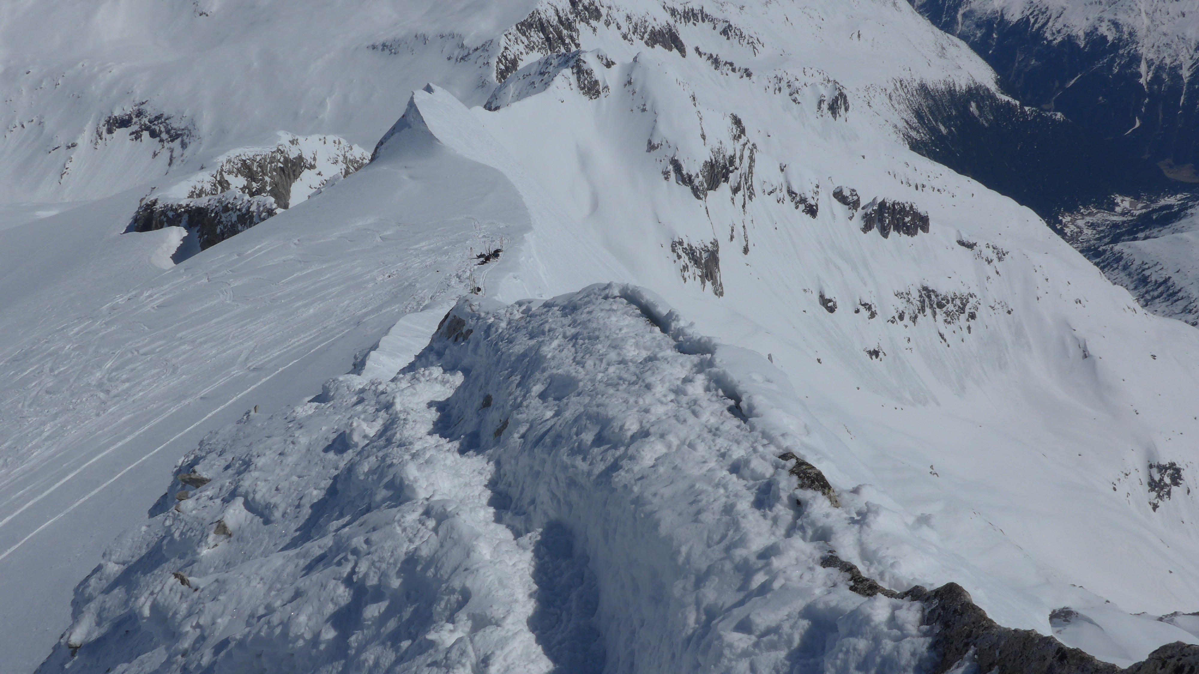Wie in Tourentipp beschrieben gegangen. Windig. Spalten WIRKTEN ziemlich zugeschneit. Unangeseilt gegangen. Der schmale ausgesetzte Grat war eingespurt. 30 Hm unter dem Gipfel drehten wir um (Steigeisen + Pickel). Heikles Gelände!