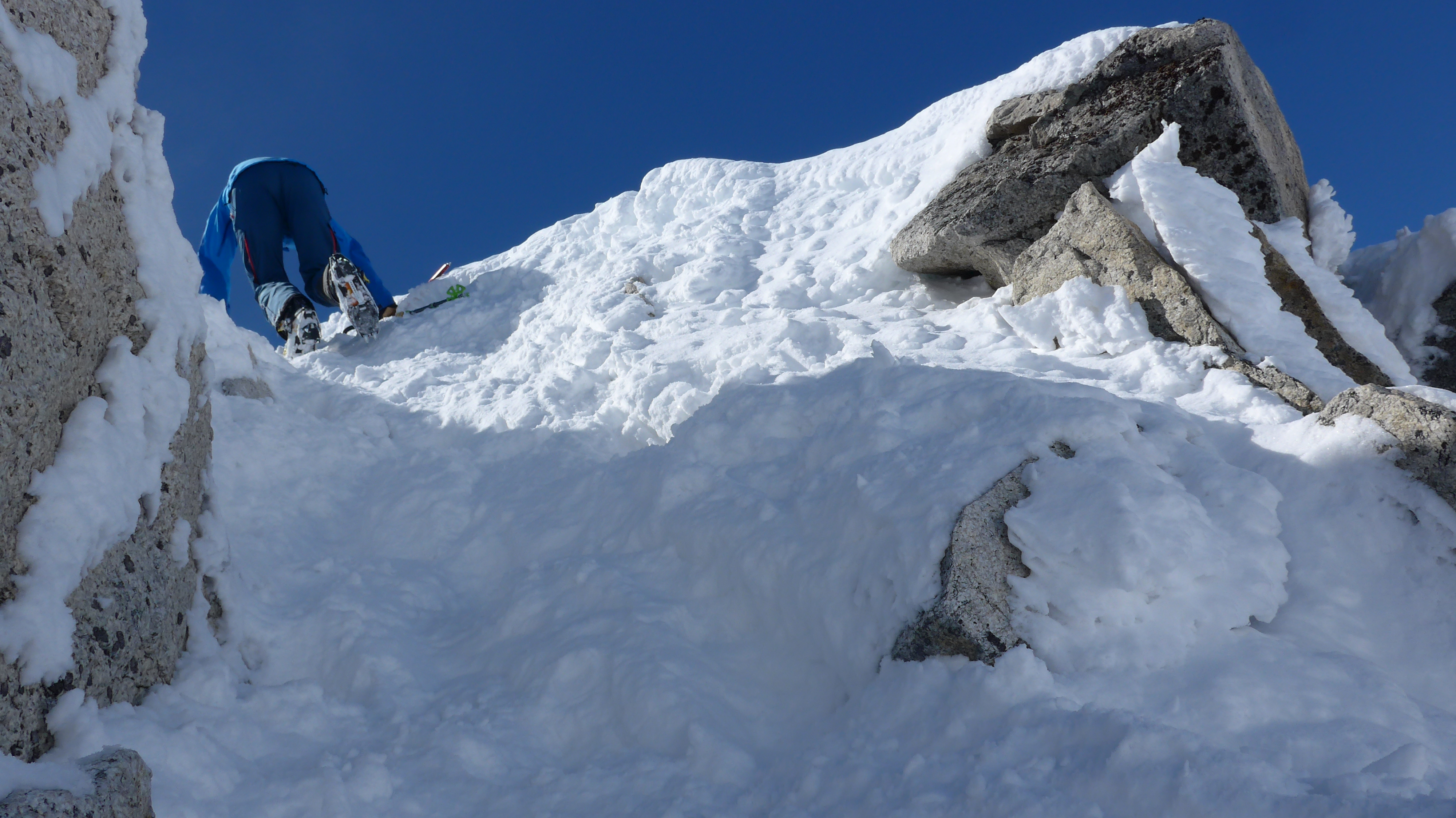 Prognose: Geht noch lange. Bei weniger Schnee Anseilen neu beurteilen.