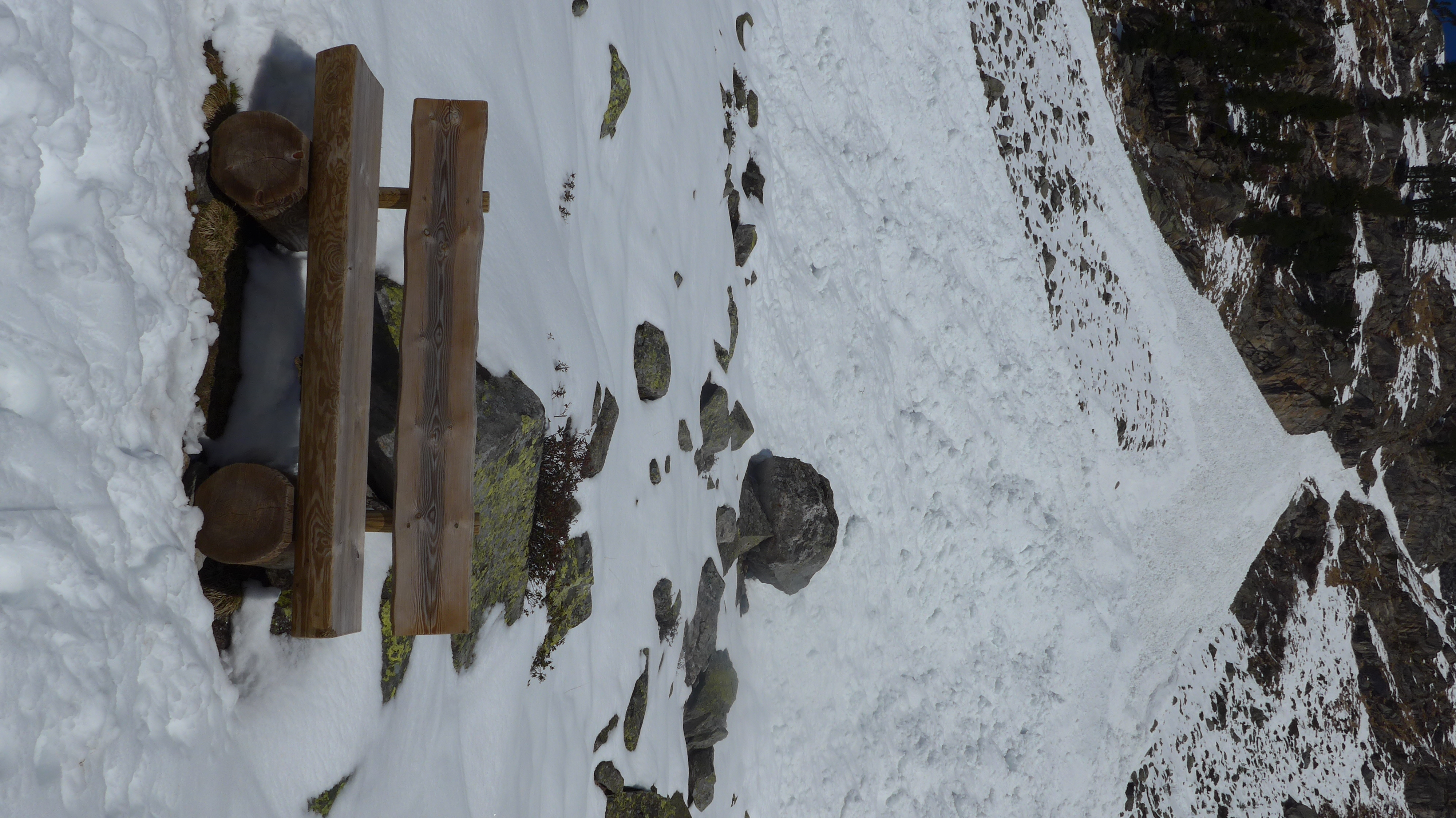 Tourenverhältnisse: Ski bis kurz hinter die Trisslalm getragen (bis hierhin wechselnd Schnee + aper - 30 min.). Mit dem Bike bis hierher vermutlich erst nach dem Wochenende lohnend. Nächstes Wochenende dürfte ein weiterer Teil der Forststraße zur Materialseilbahn (Zittauer Hütte) befahrbar sein.
