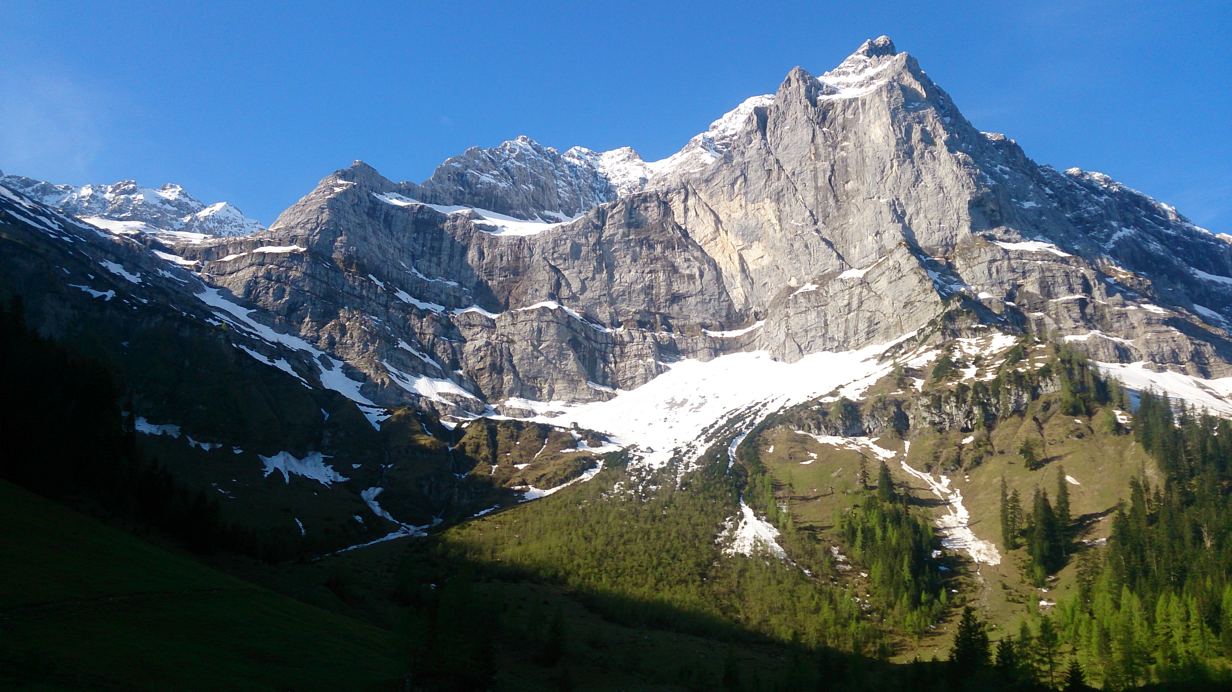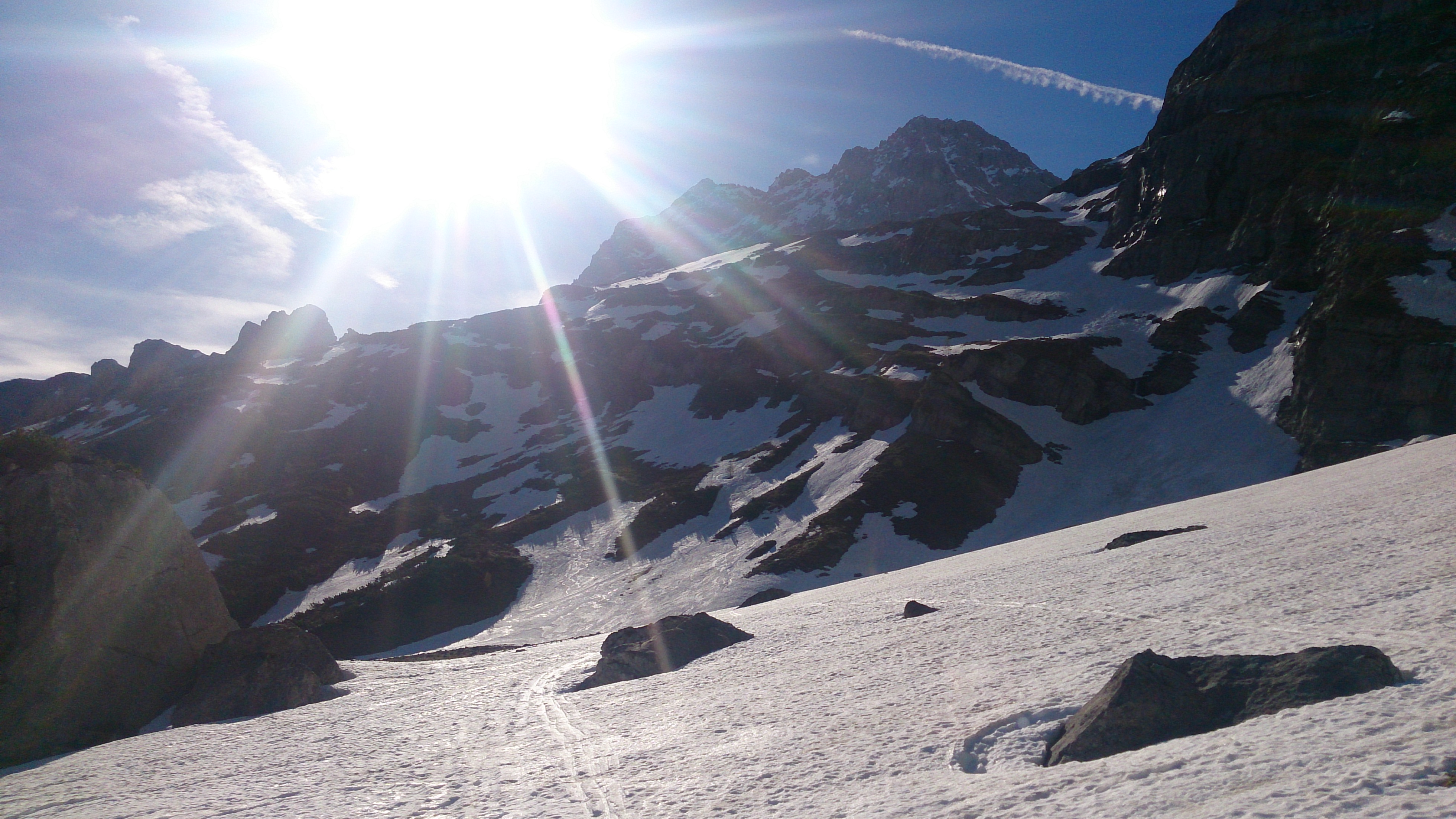 Vor fast genau 10 Jahren war ich das letzte Mal im Hochglückkar, damals am 11. Juni fast genauso viel / wenig Schnee wie heute. Man merkt halt die geringe Ausgangsschneelage heuer, trotz des Nachschubs im Mai, der mich heute aus Sicherheitsgründen umkehren ließ.