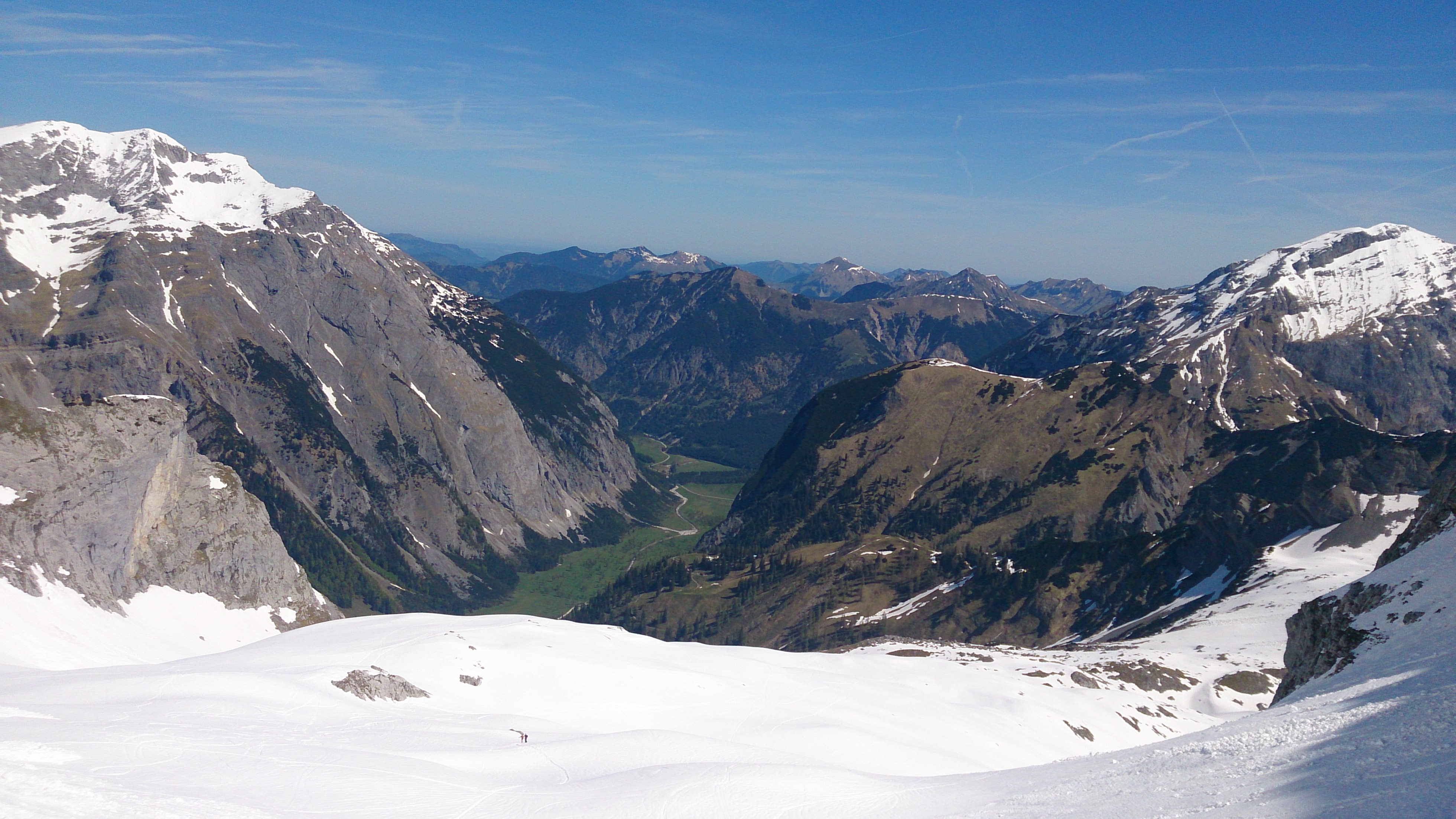 Der Blick hinunter in die grüne Eng - dort heute Ausflusg-Hochbetrieb: