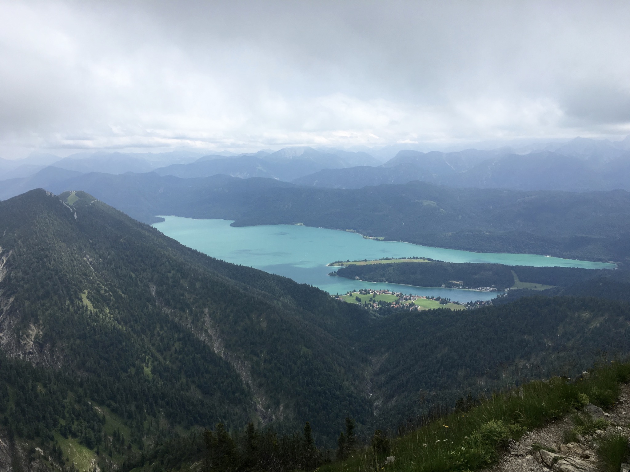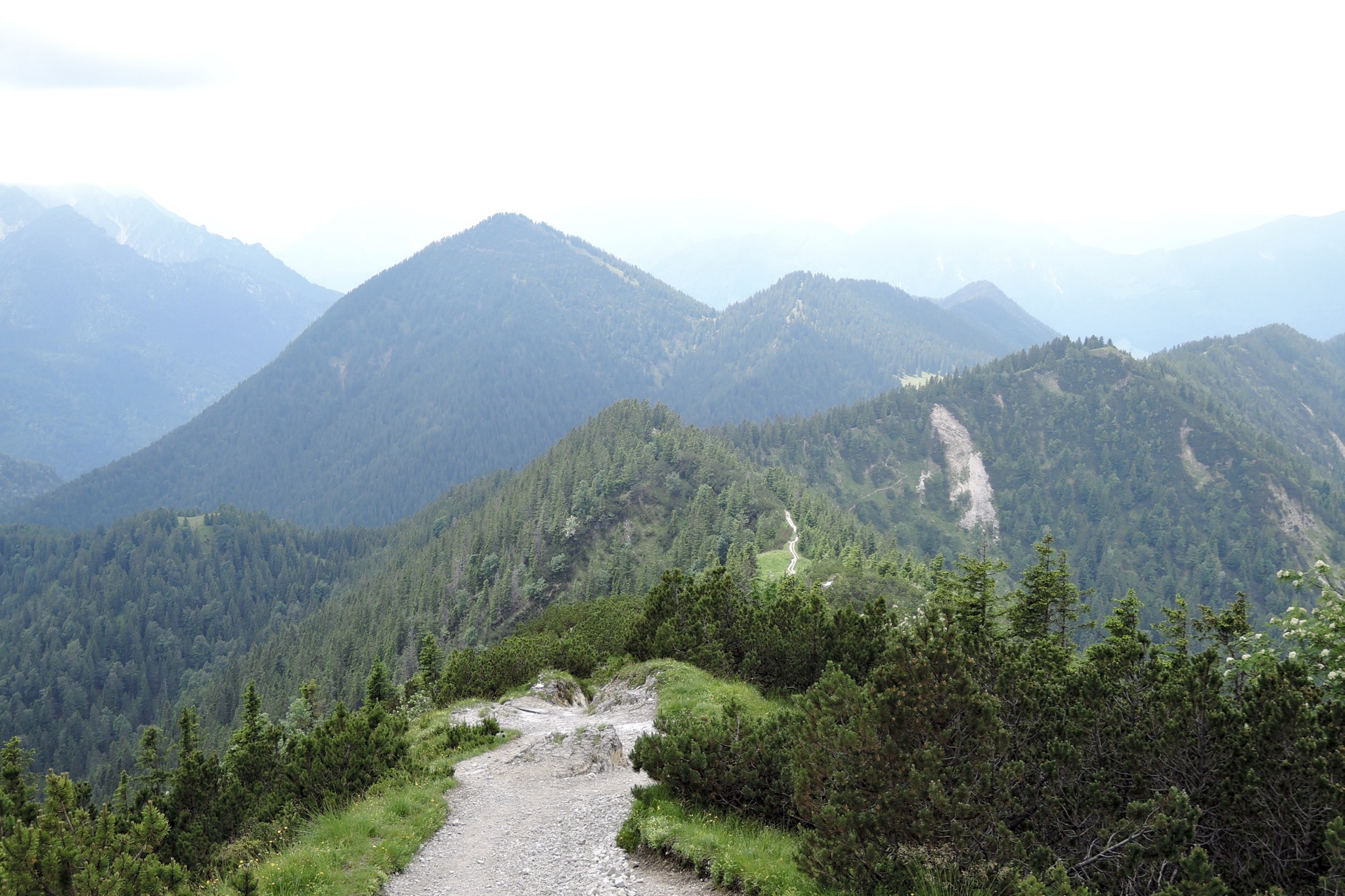 Sonstiges: vom Schwimmbad in Ohlstadt (650m) zur Kirche in Ohlstadt zum kleinen Supermarkt. Von dort zum Tennis Club und dort links Richtung SW auf den Boschetrundweg. Nach der Boschetkapelle rechts Richtung N nach Ohlstadt. Richtung NW zur Heubergstrasse, dort links Richtung SW und auf der Forststrasse an der Loisach entlang nach Eschenlohe. Dort unmittelbar nach der Brücke links auf den Damm und zur Walchenseestrasse. Auf dieser links Richtung Heimgarten. Am Abzweig nicht zur Eschenlaine hinab, sondern weiter auf der Strasse. Bei Wengwies geradeaus auf den kurz steilen, aber heuer instand gesetzten, Forstweg. Auf 820m den Abzweig rechts Richtung O hinauf. Nach einer kurzen Abfahrt mündet der Weg auf der Schotterstrasse. Hier nach links und ab jetzt meist bergauf Richtung Heimgarten. An der Wankhütte (1370m) den Abzweig rechts Richtung “Heimgarten”. Dem schmalen Fahrweg folgt man Richtung O in meist mäßiger Steigung bis auf ca. 1480m. An einem markanten Baum steilt sich der Weg zusehends auf und so geht es Richtung ONO bis auf 1700m teils sehr steil und betoniert den Grat entlang hinauf. Nun dreht der Weg auf Richtung SSO und nurmehr mäßig steil hat man die Heimgartenhütte(1780m) schnell erreicht. Auf den Heimgarten (1790m) sind es jetzt nur noch einige Schritte. Die Aussicht ist genial!