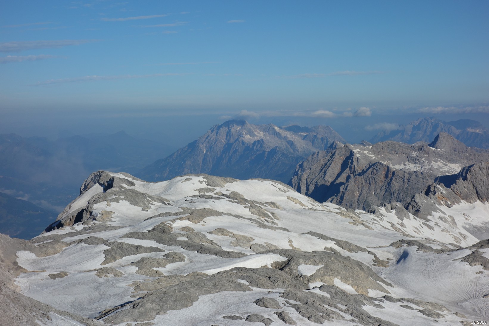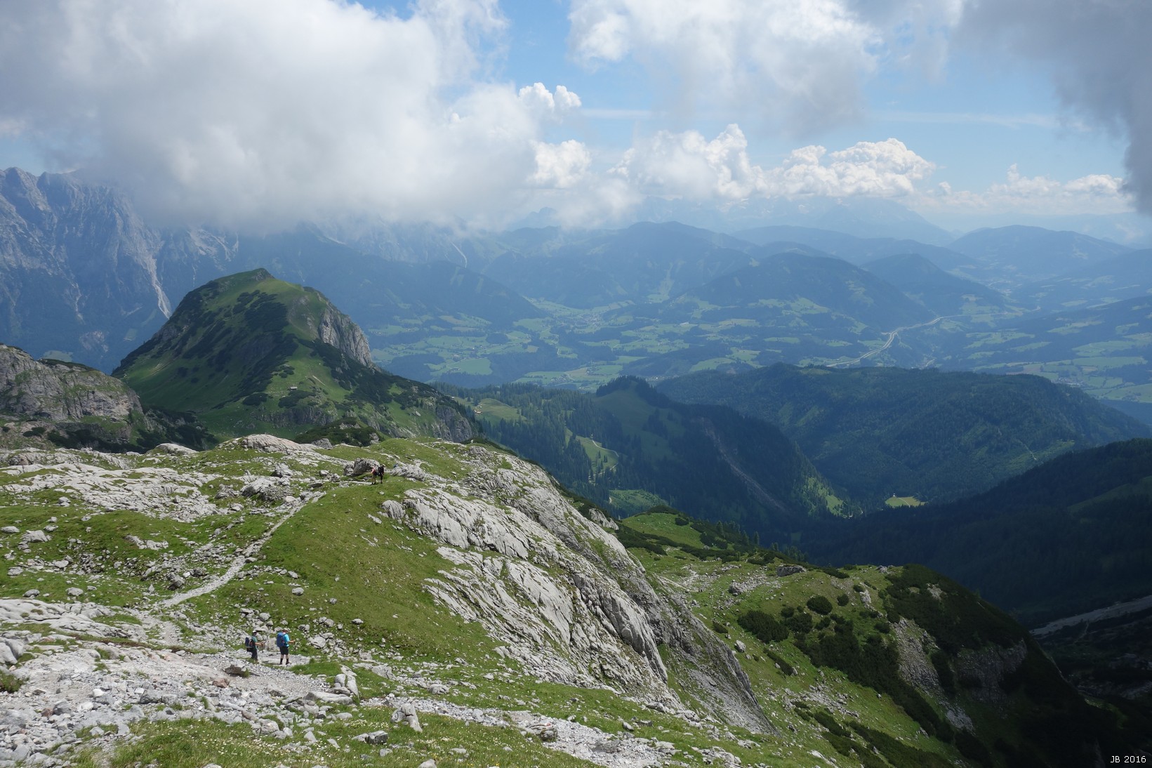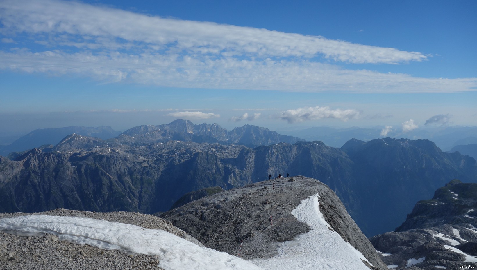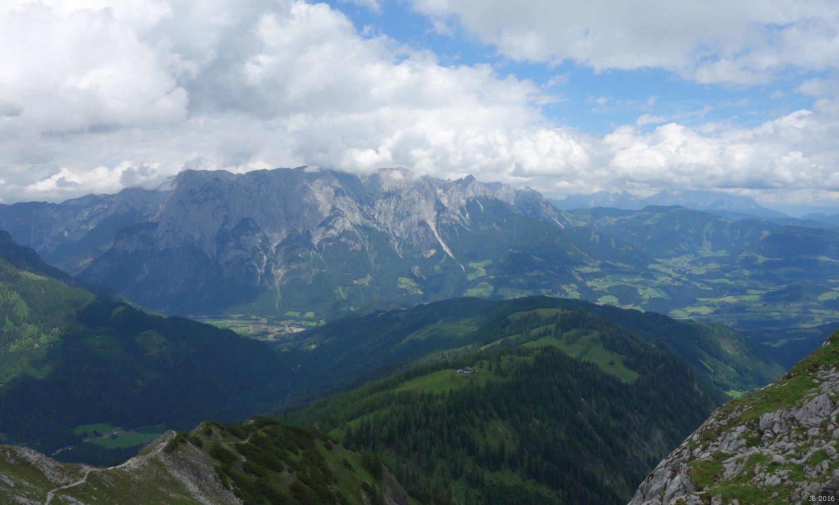 Im W links der Hochseiler, in der Mitte das Birnhorn, recht das Steinerne Meer