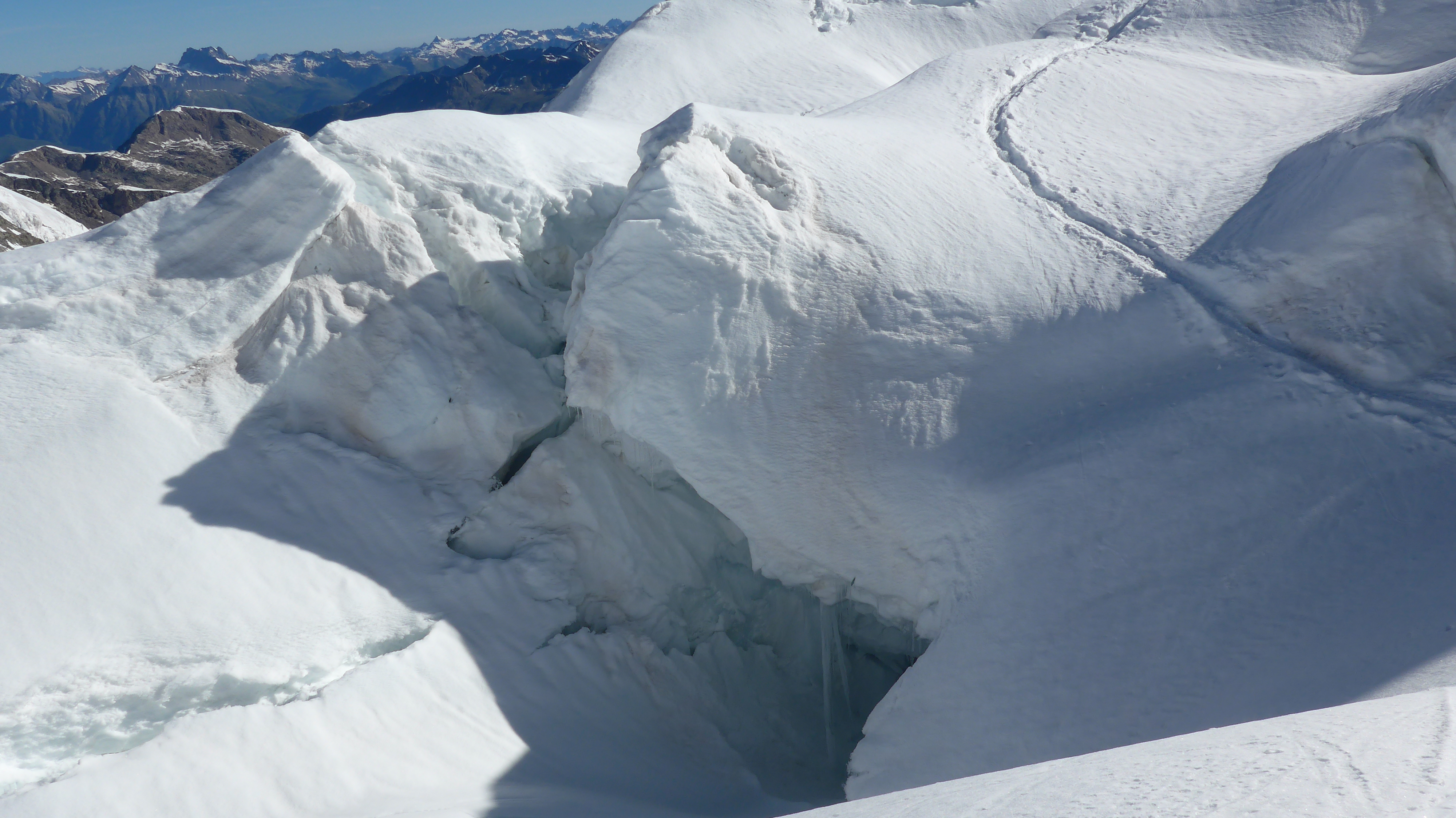 Hier ist die Orientierung einfach. 2 sehr steile Firnrampen.