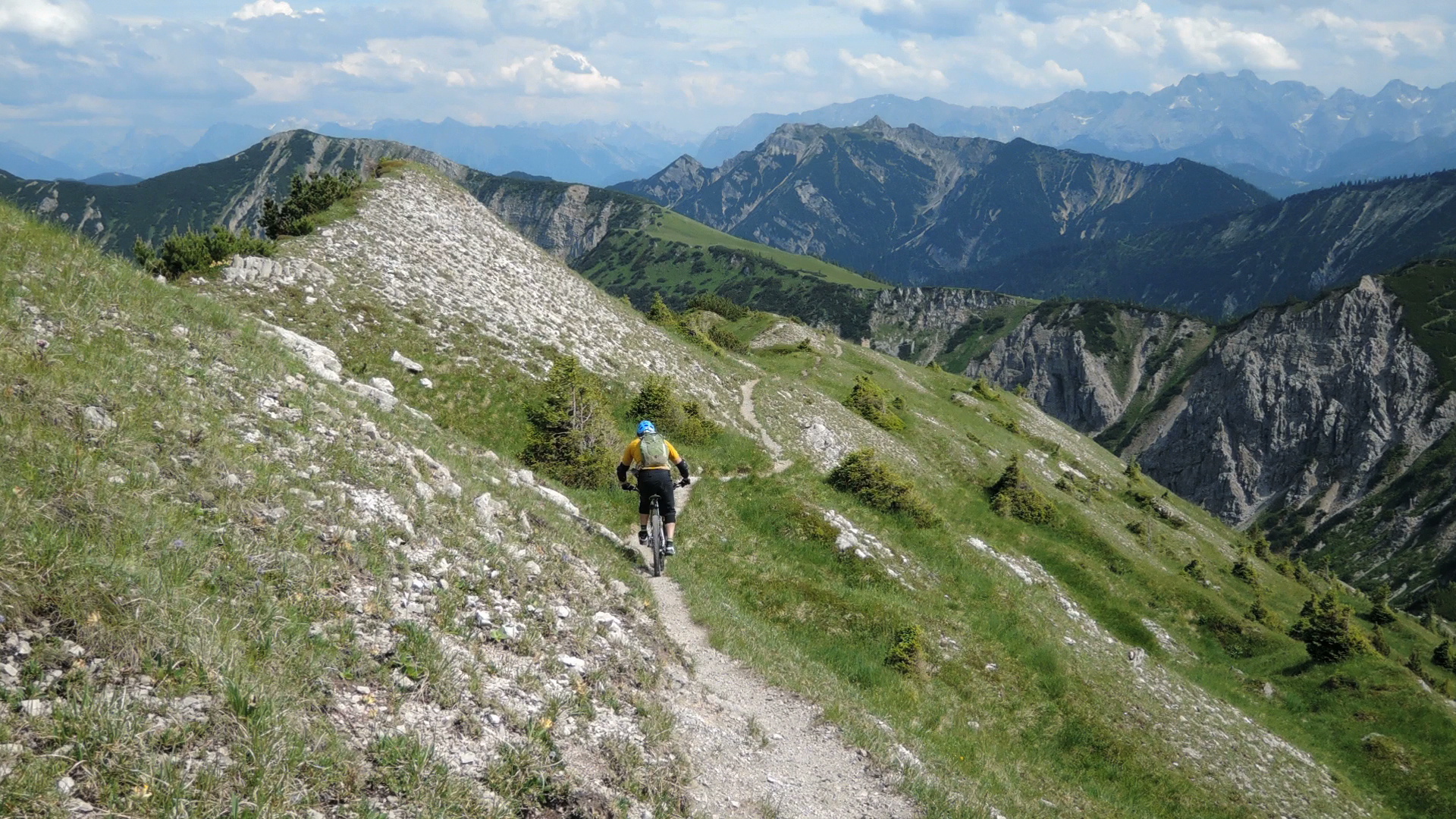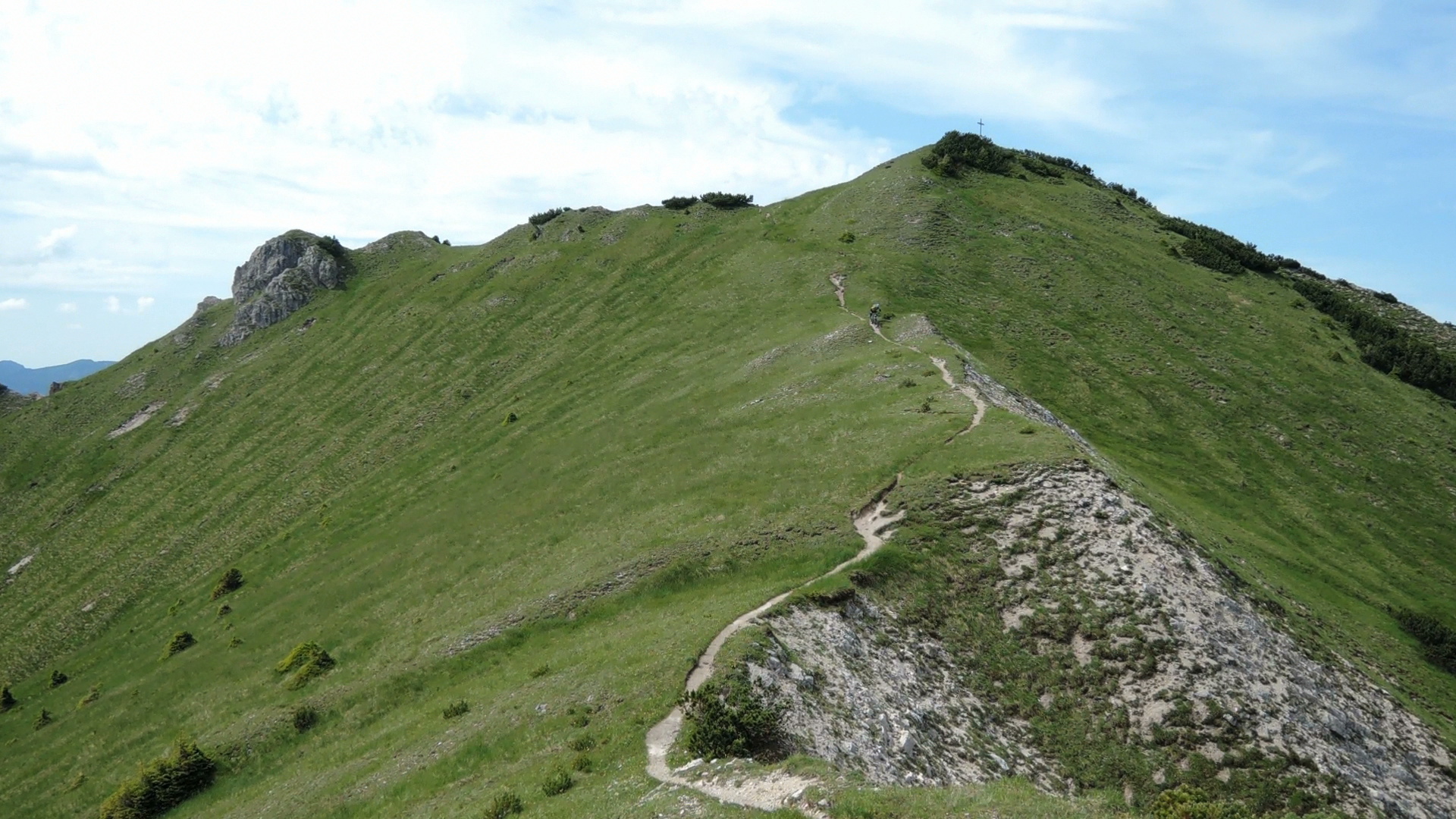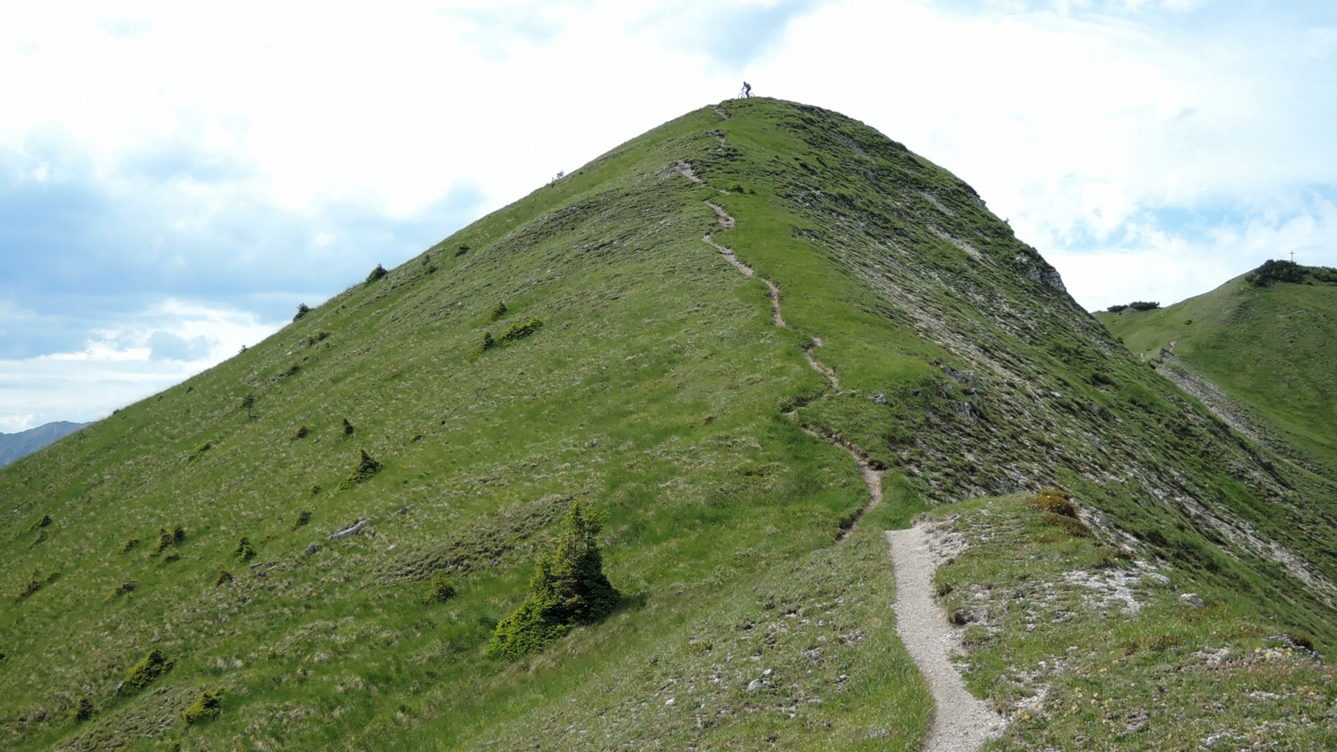 Runter wie rauf, partiell sogar schön zu fahren, wobei Henni es sich nicht nehmen lässt, den Grat vom Gipfel bis zum Sattel zu fahren .