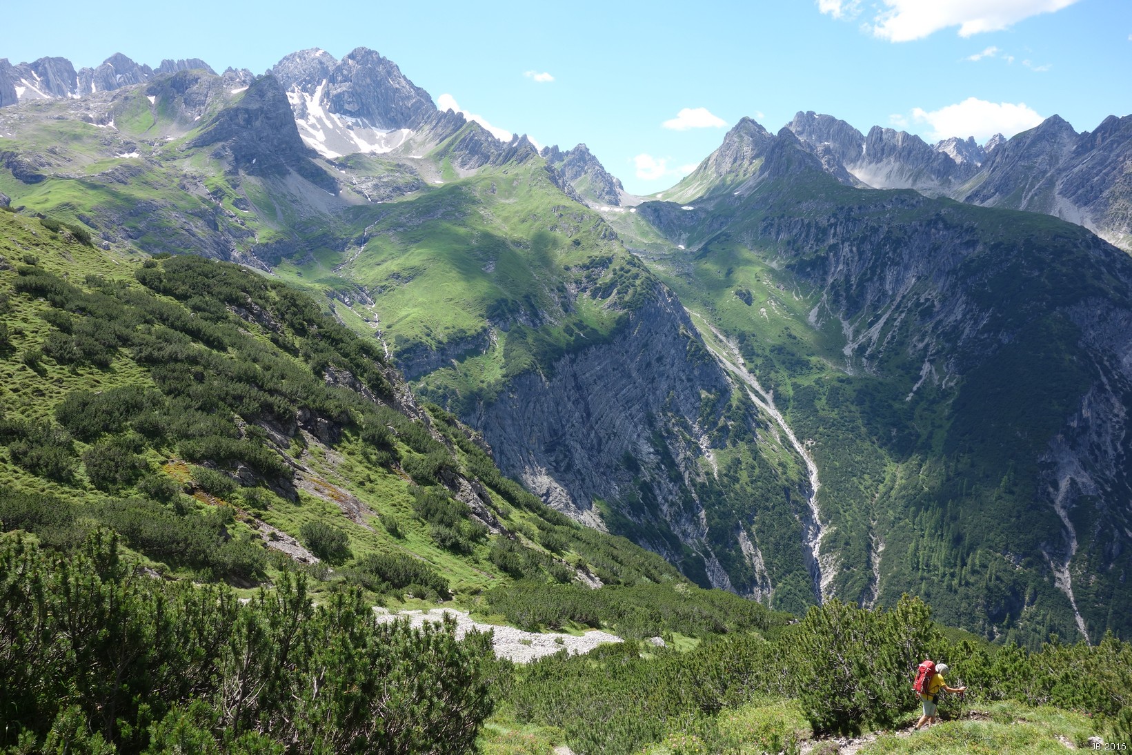 Der Weg über das Sattele ist spärlich markiert und mühsam zu gehen. Teilweise stark vermurt oder von hohem Gras überwuchert. Großartige Lechtaler Berglandschaft !