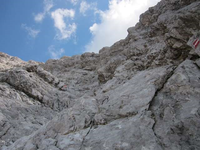 Gefahreneinschätzung: Steinschlag - Helm? Bei Nebel im Felsteil sicherlich kein Spaß.