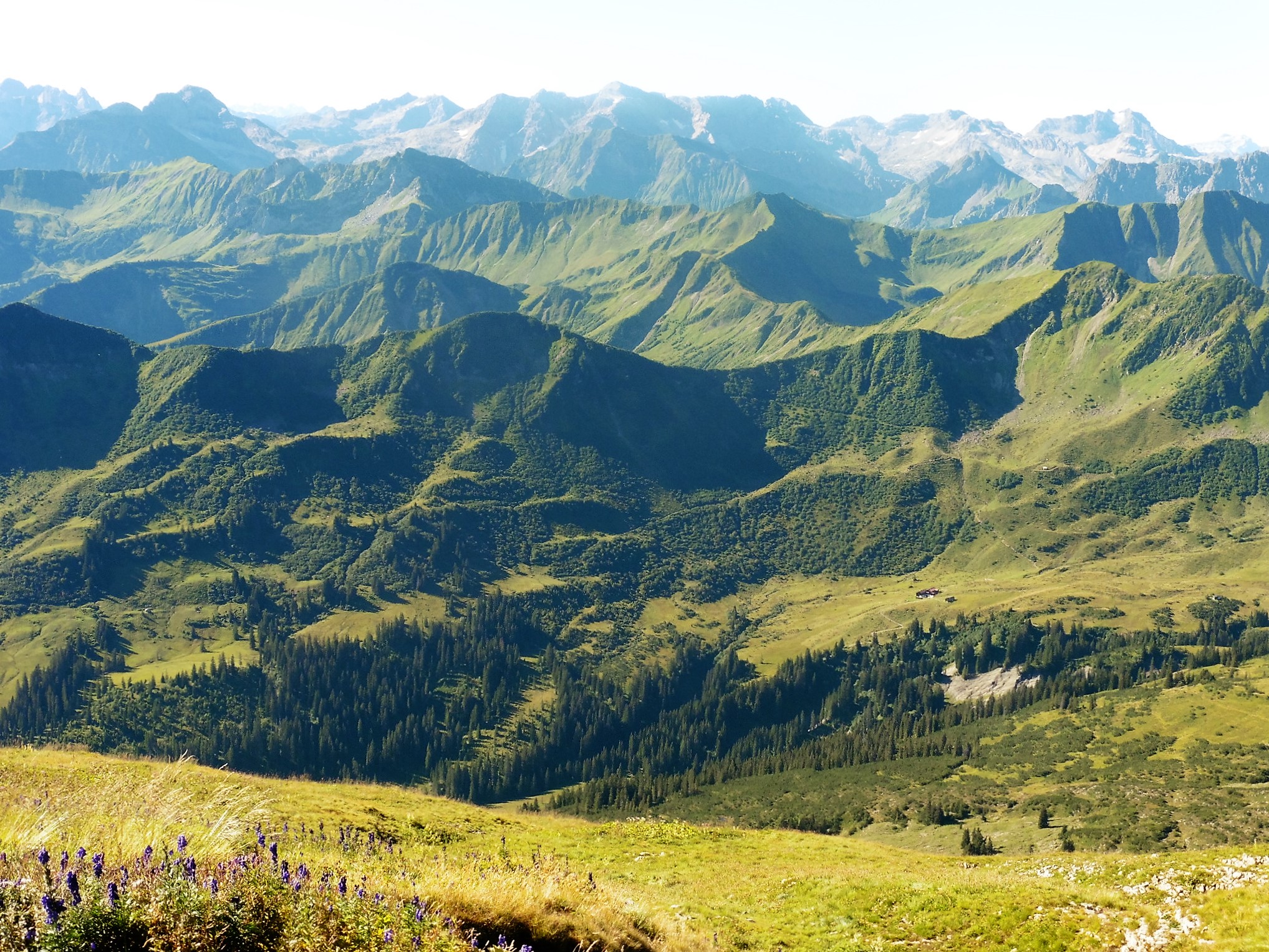 zu Bild 4: Blick in den Bregenzer Wald; links der Diedamskopf, rechts - Säntis und Altmann;