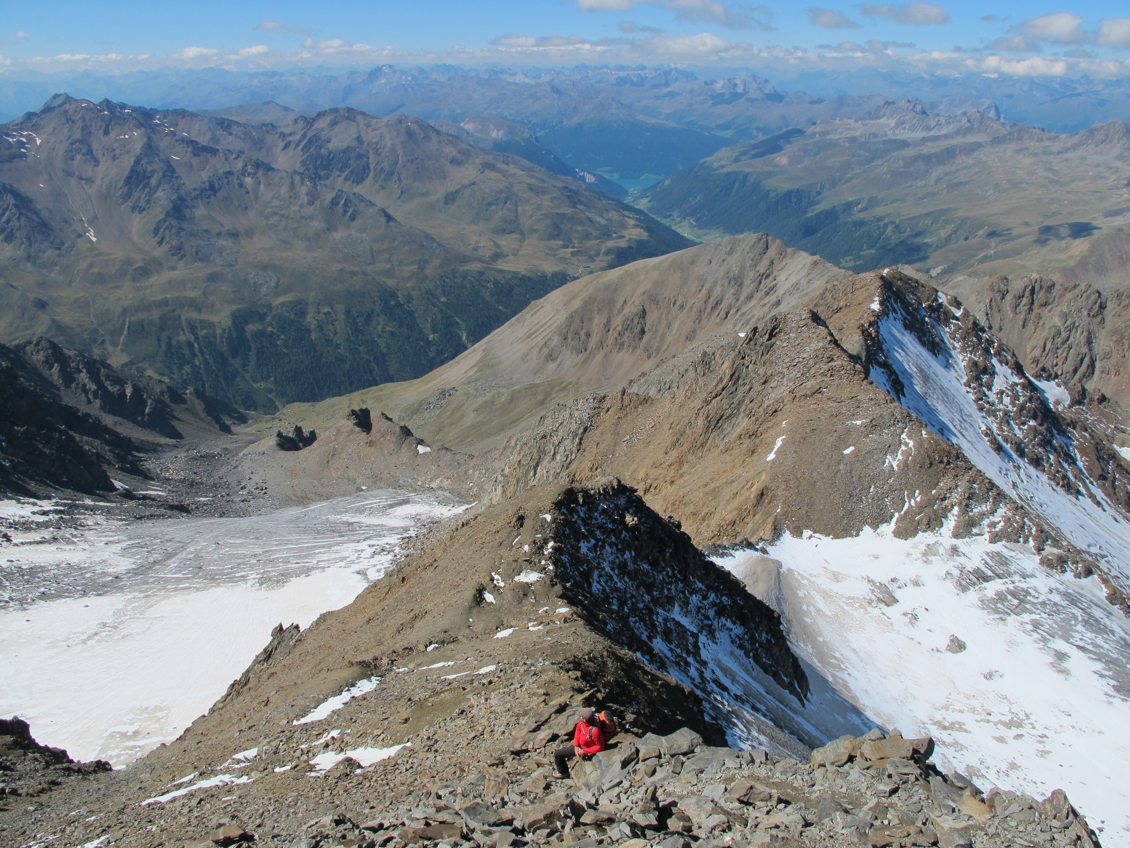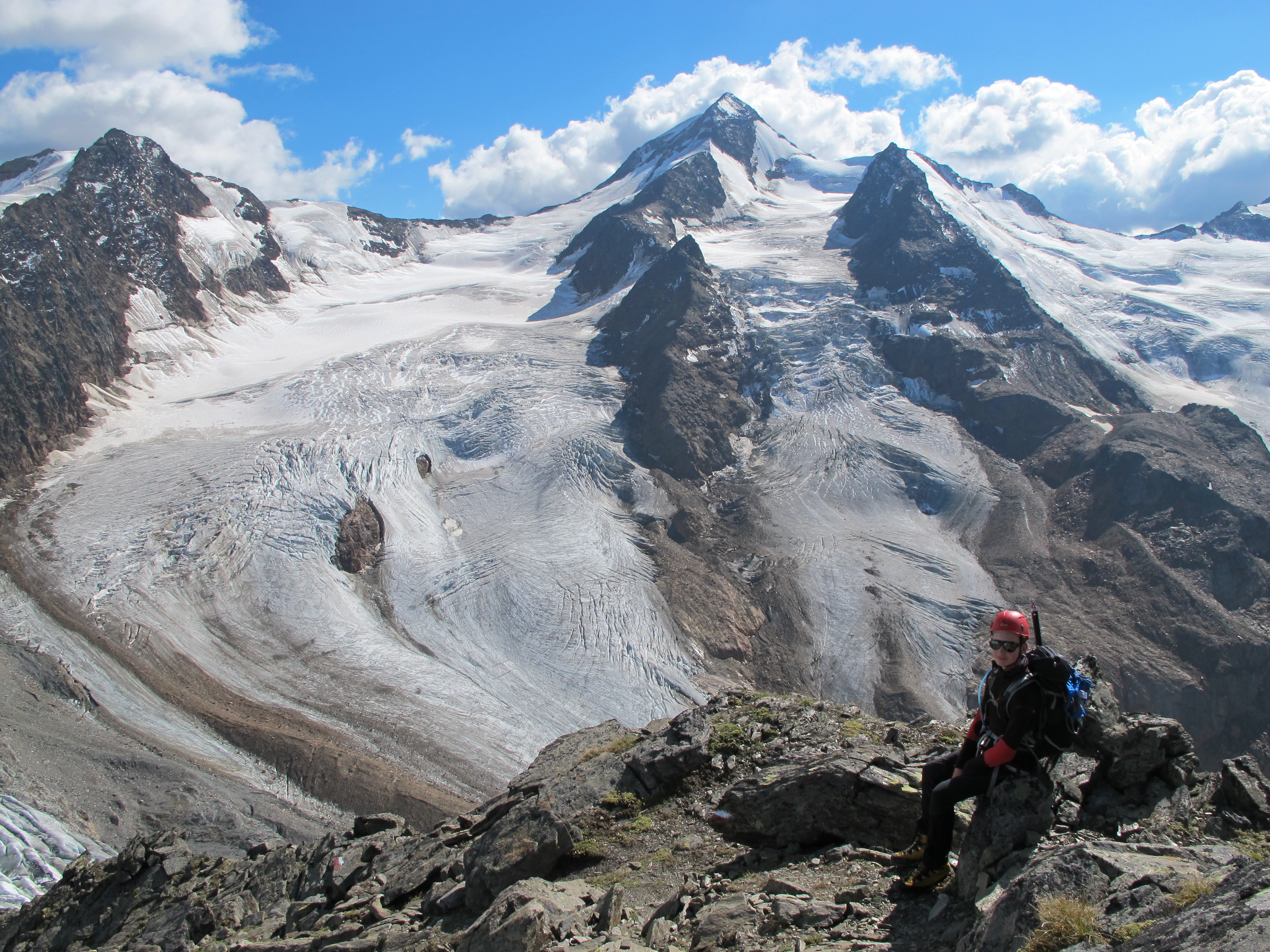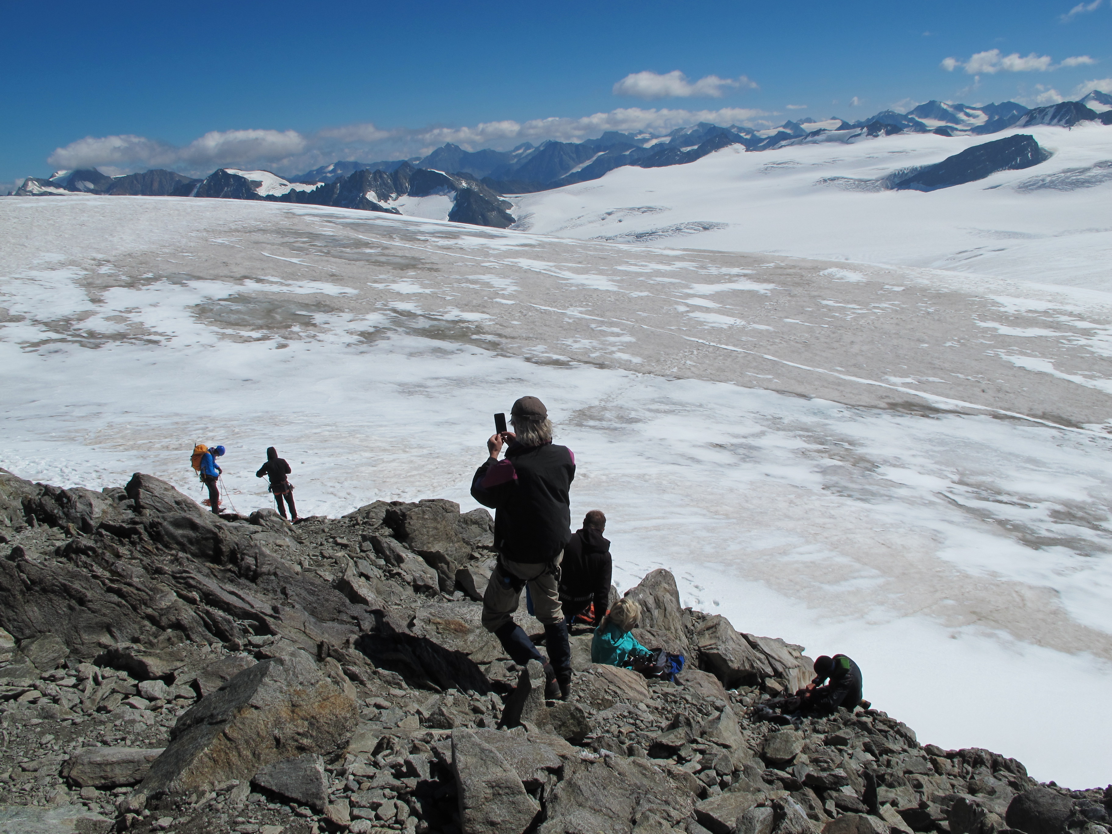 Tourenverhältnisse: Der spaltenreiche Gepatschferner ist aufgrund der Wärme und der (im oberen Bereich) leichten Schneeauflage eher gefährlich. Wir haben daher versucht - so gut es geht - den Gletscher zu meiden und sind über die Grate (Aufstieg über Westgrat). Dennoch auf dem Weg vom Gipfel zum Grat 2 mal am Gletscher eingebrochen. Also hier keine Idealzustände. Letzte Woche muss es aber noch schlimmer gewesen sein. Da gab es reihenweise Stürze (so der Hüttenwirt) und auch einen Spaltenunfall an der Weißkugel. Ansonsten beste Verhältnisse - top Wetter!