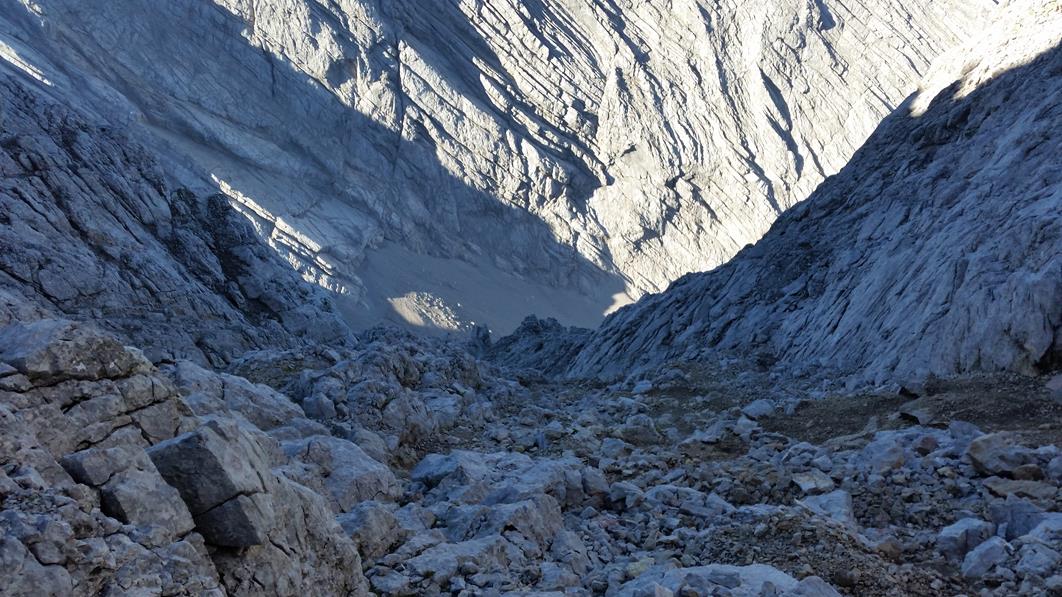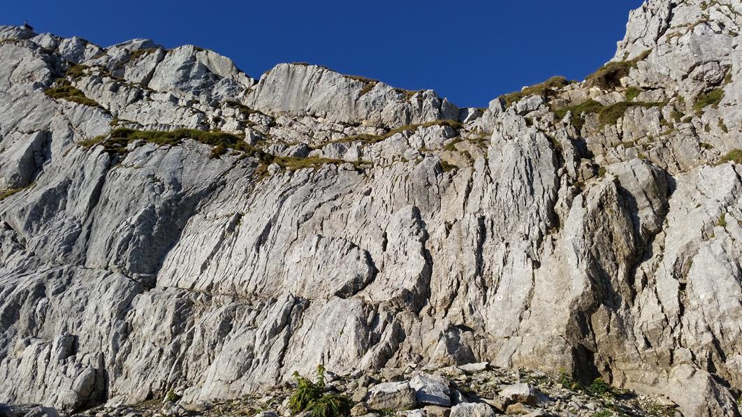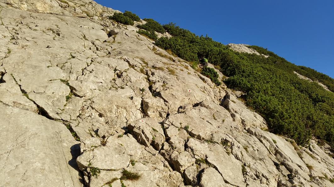 Gefahreneinschätzung: Steinschlaggefahr beim Abstieg ins Ofental.